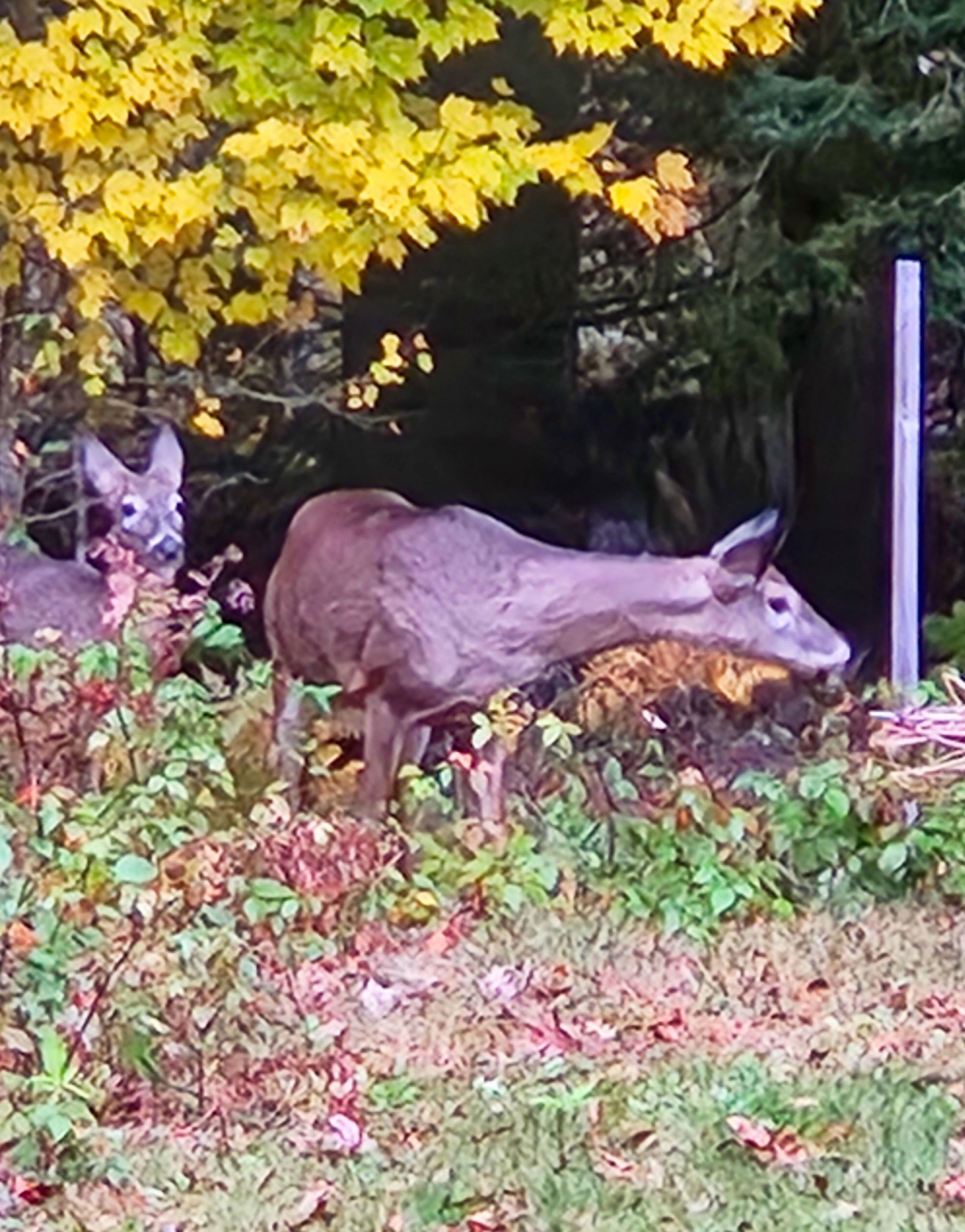We gave the deer the okay to feed on any remnants of tomatoes, squash, or other plants that had sprung to life near our chicken pen. So they came right up and feasted. (C) 1inawesomewonder.com 2023.