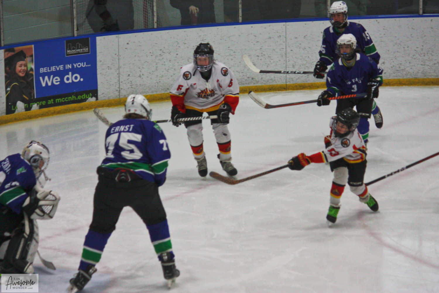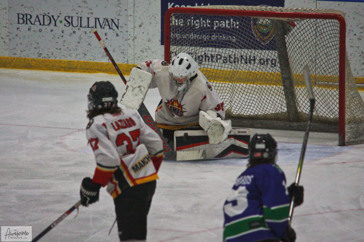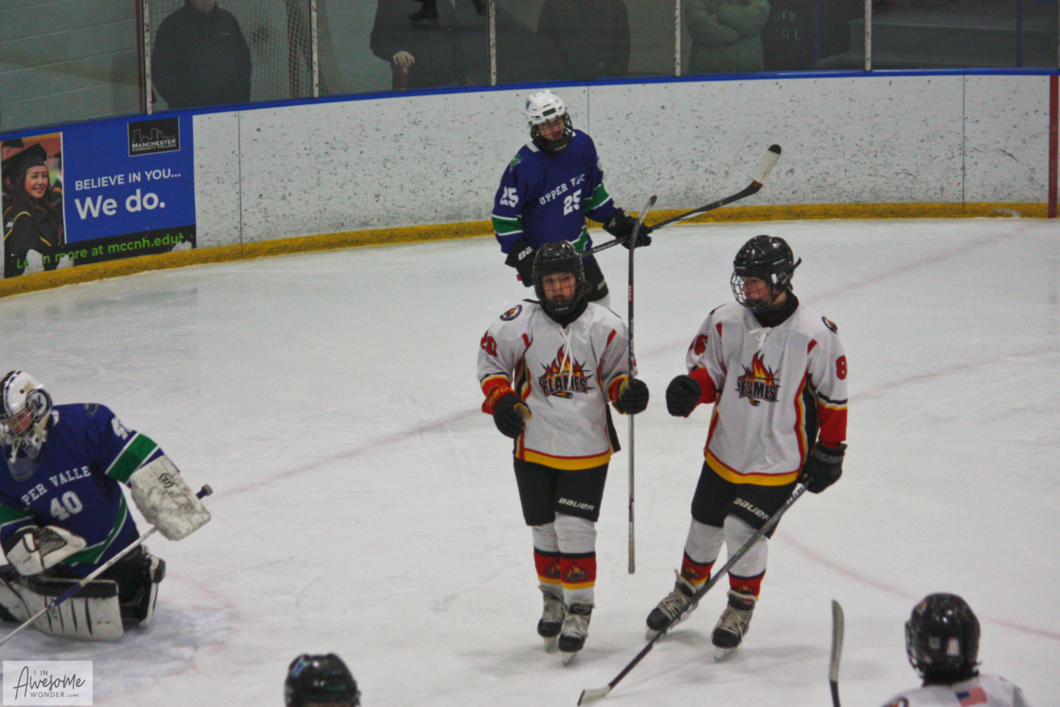 It was a cold, windy January morning on Saturday, and the 2010 Flames played host to the Upper Valley Storm at JFK Coliseum. The Flames did pile up the shots and scoring opportunities on their way to a 7-0 win. They had almost all of their players back on the active roster, as Andrew Drumm returned to the lineup. They are almost full, or better yet, almost complete.
