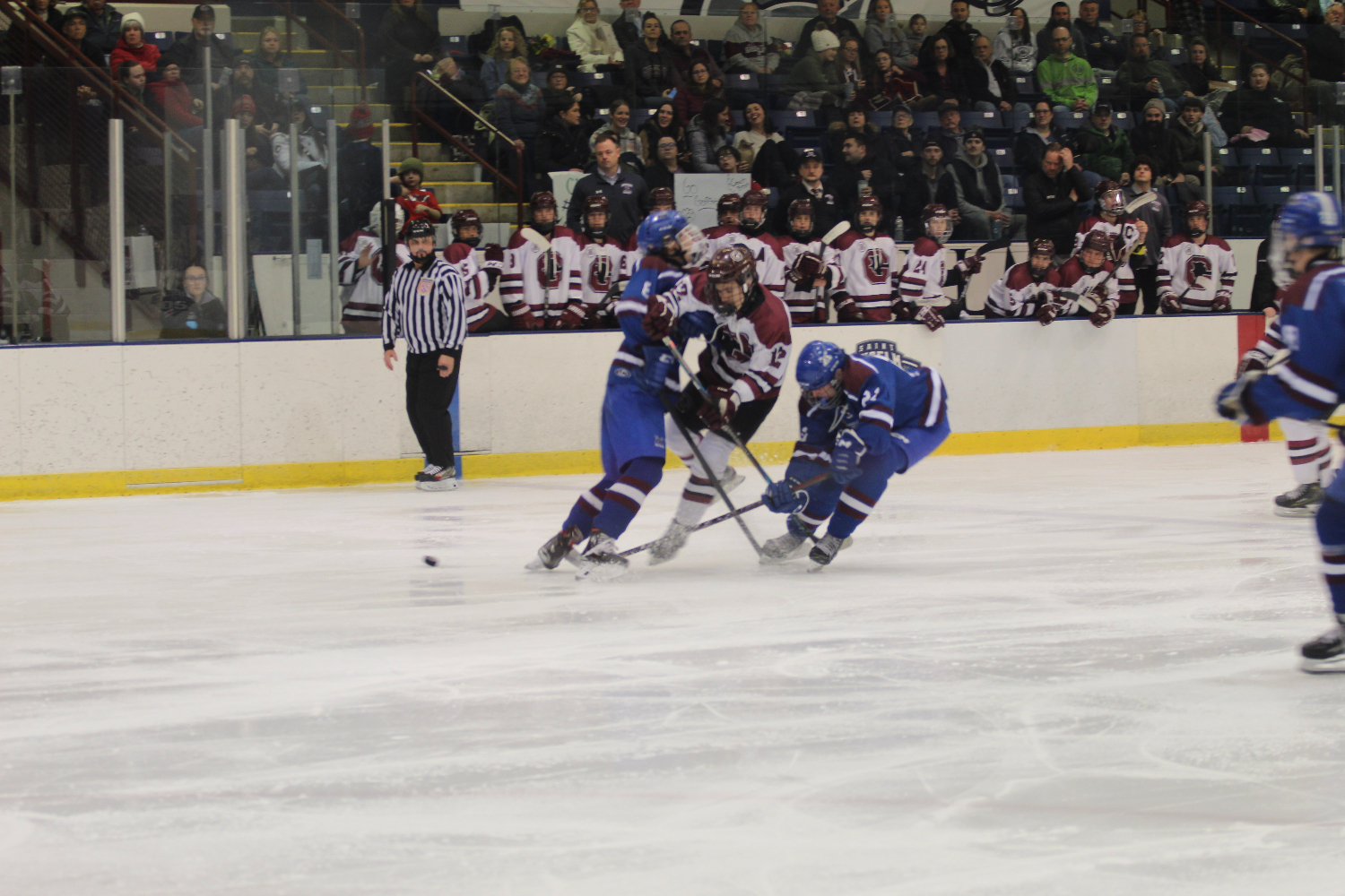The breaks and bounces went the War Hawks way during a three-goal second period 68 days earlier on December 16th. On Grizzlies Senior Night, the breaks and bounces went Goffstown’s way en route to a 3-0 win.