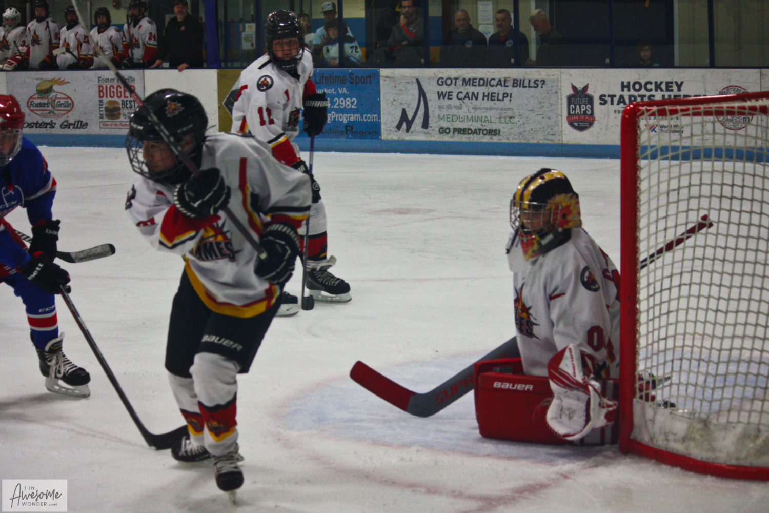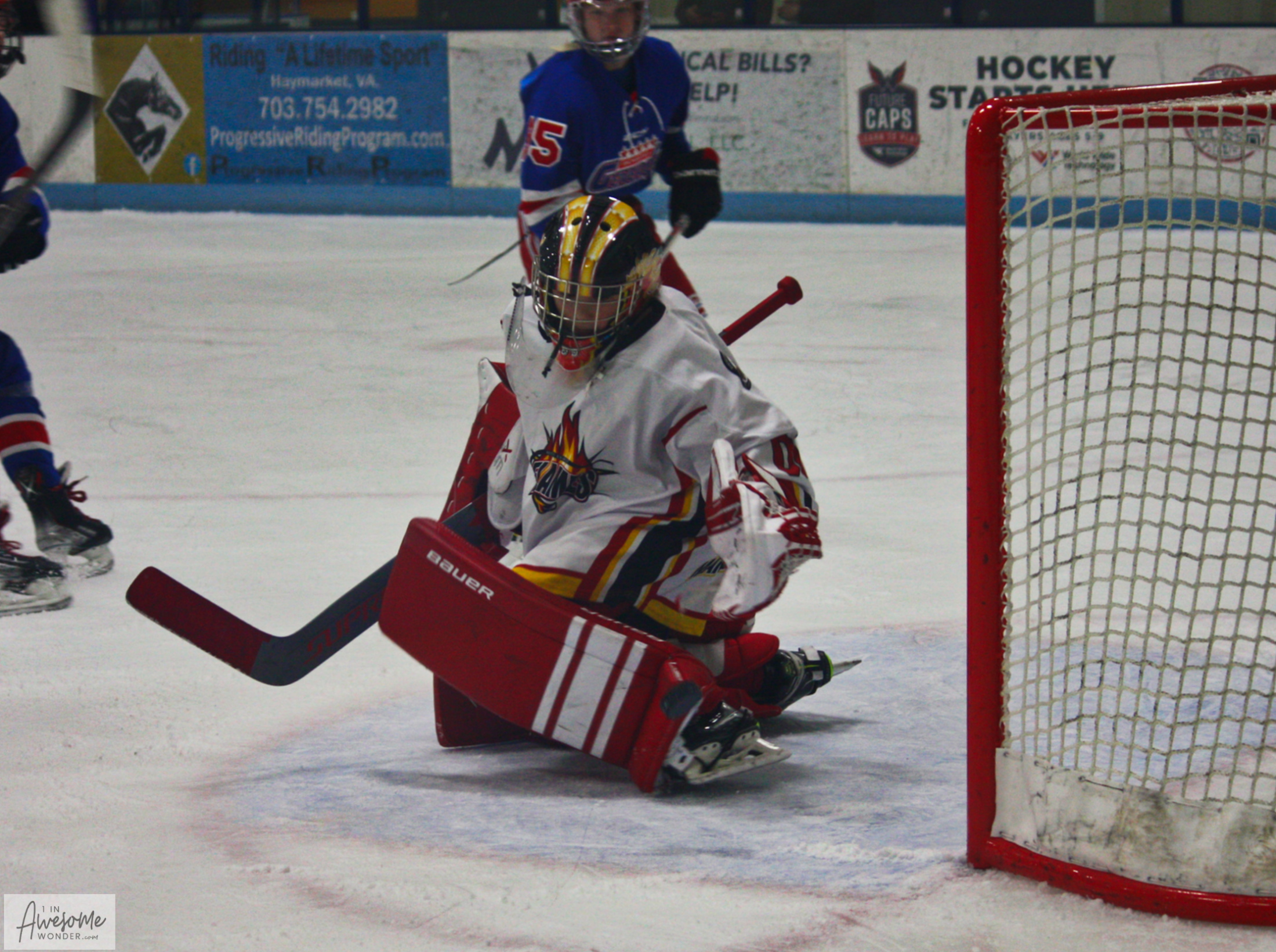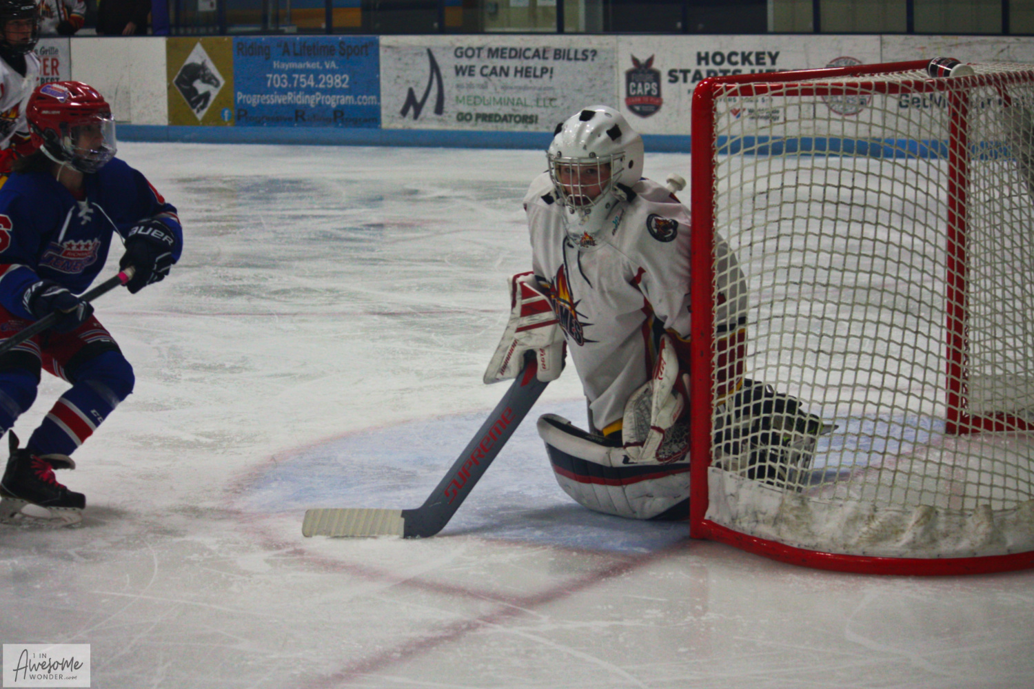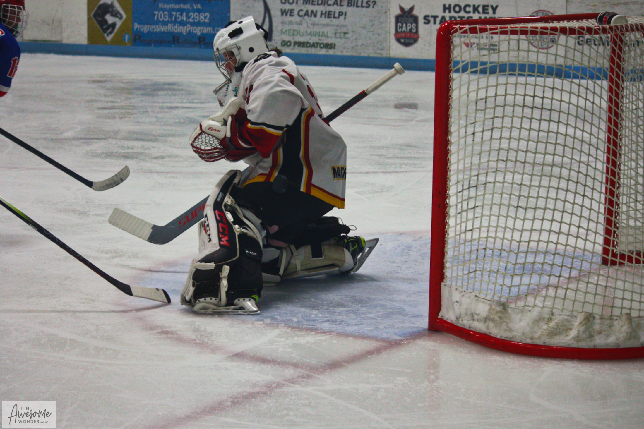 After all the players and assorted members of their families arrived in Washington, DC or Sterling, VA to begin tournament play, it was time to take the ice. The first game was scheduled at 1:50pm and started a few minutes late. The 2010 Flames took a 2-0 lead after one period and squeezed a third goal out of the second period, before adding three more in the final period. The Flames were off to a good start with a 6-0 victory on Saturday afternoon.