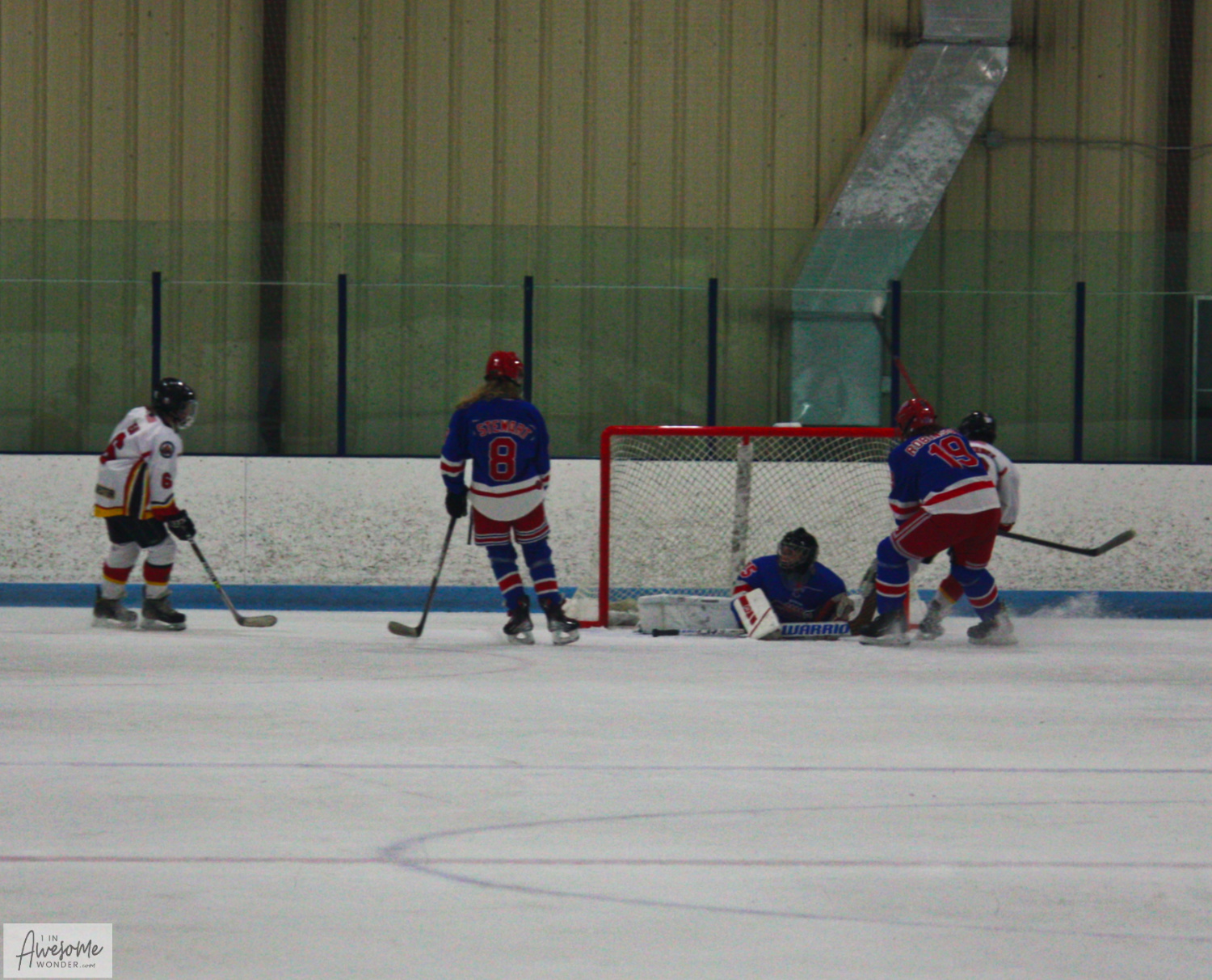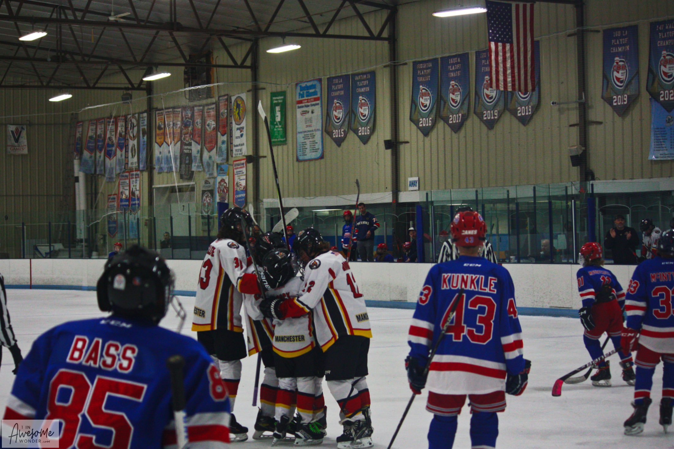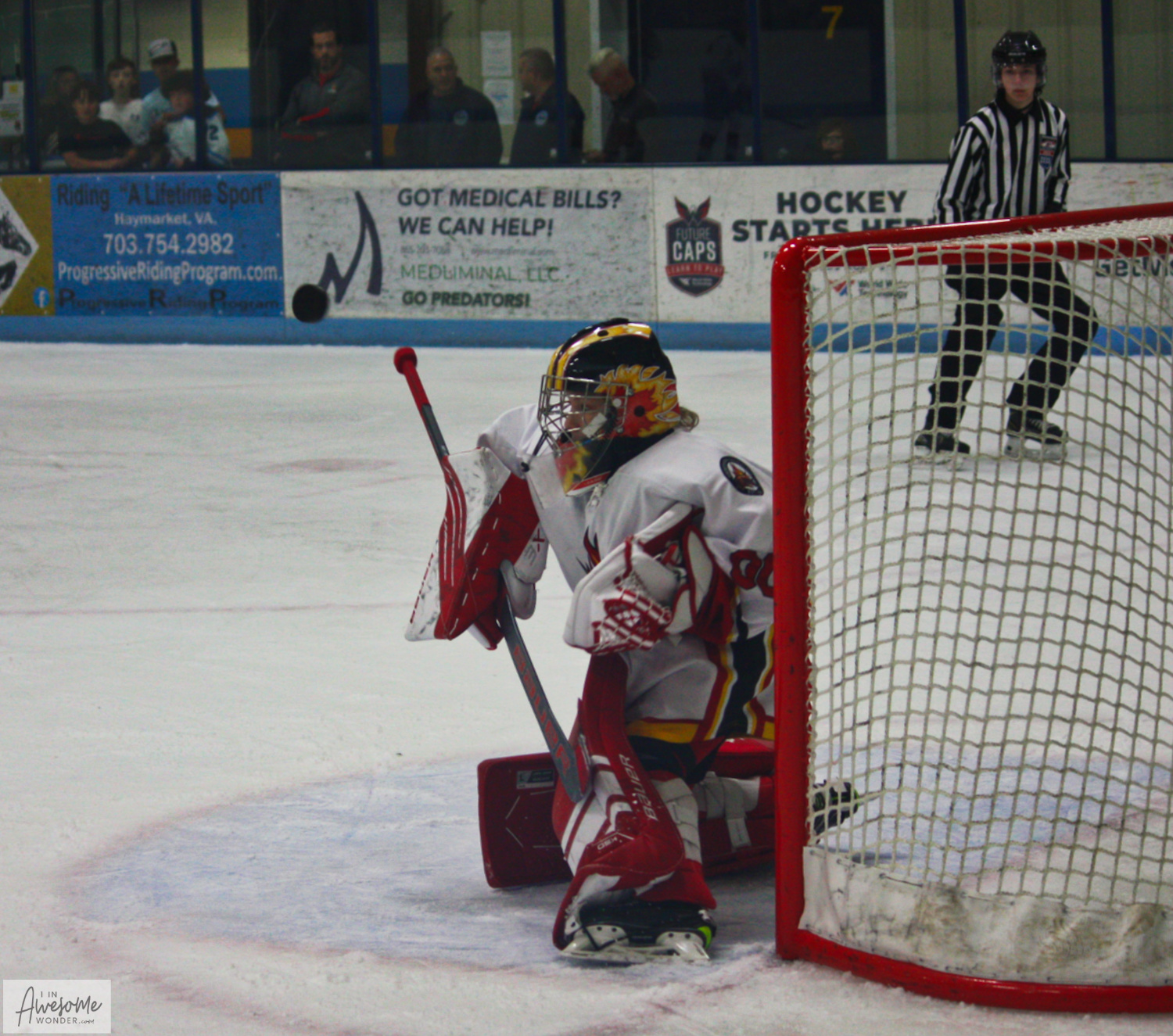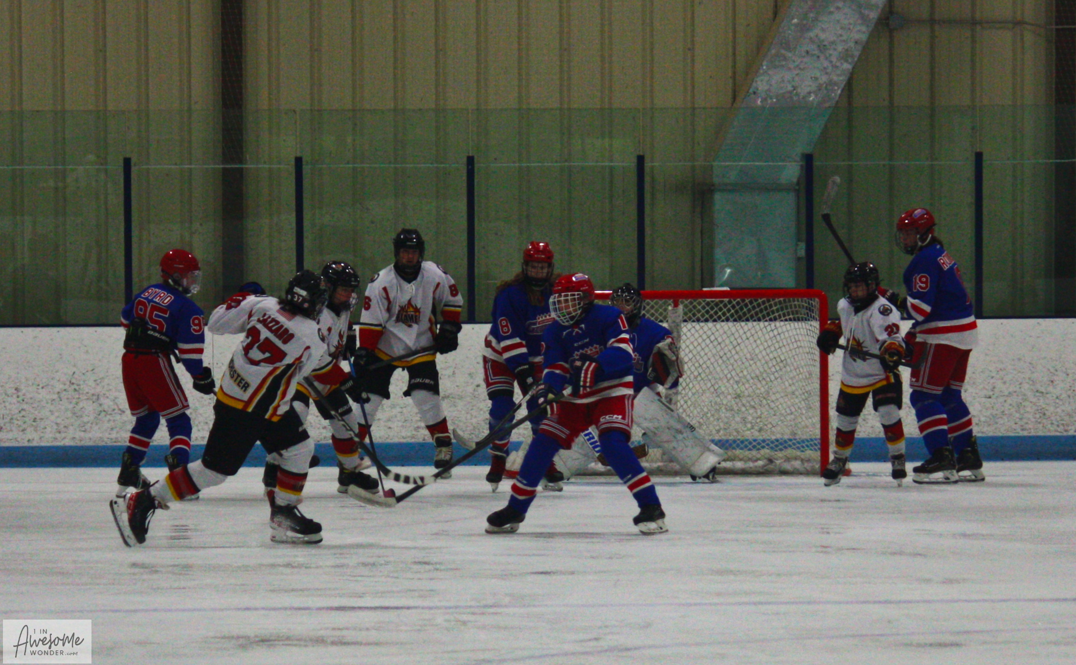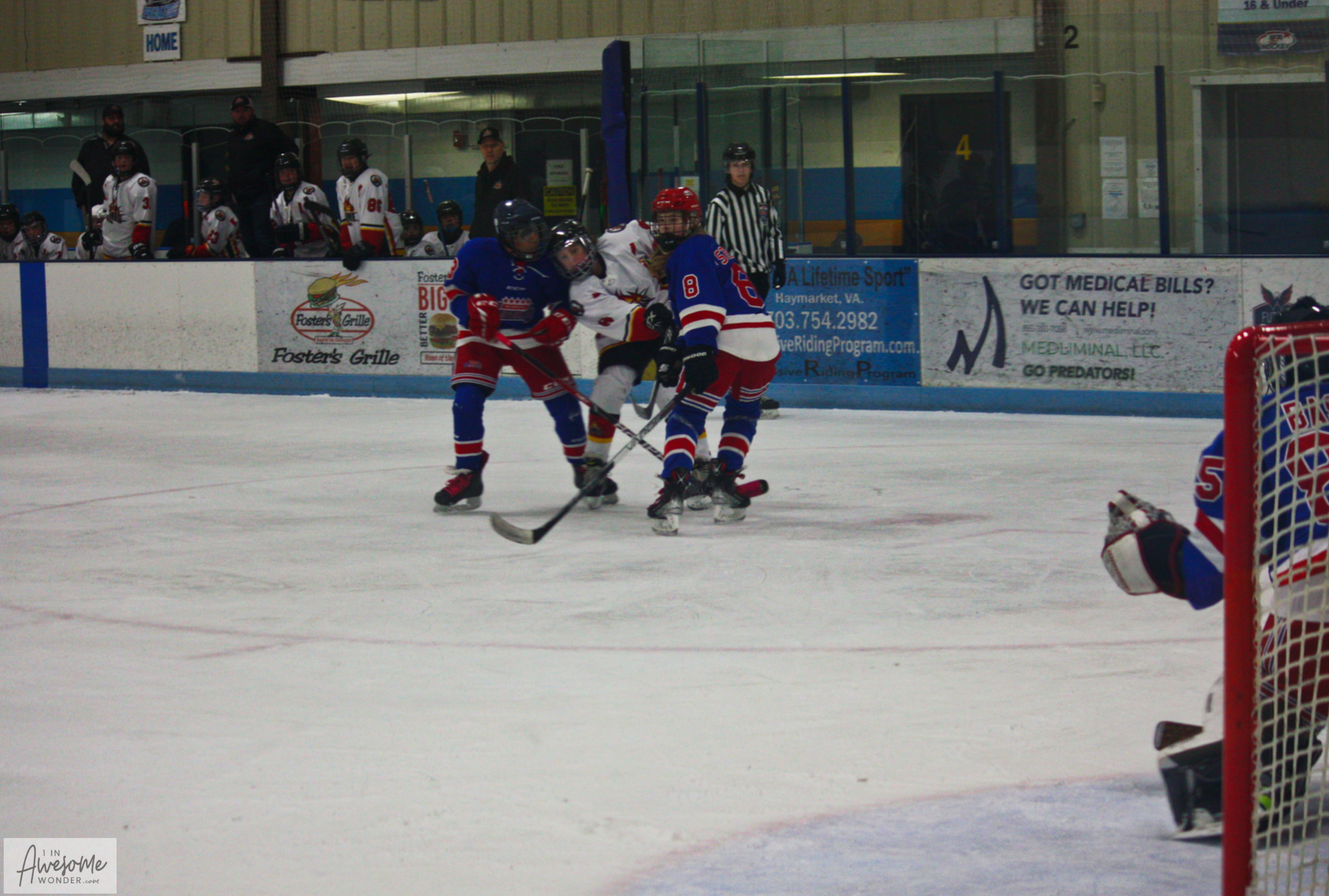 After all the players and assorted members of their families arrived in Washington, DC or Sterling, VA to begin tournament play, it was time to take the ice. The first game was scheduled at 1:50pm and started a few minutes late. The 2010 Flames took a 2-0 lead after one period and squeezed a third goal out of the second period, before adding three more in the final period. The Flames were off to a good start with a 6-0 victory on Saturday afternoon.