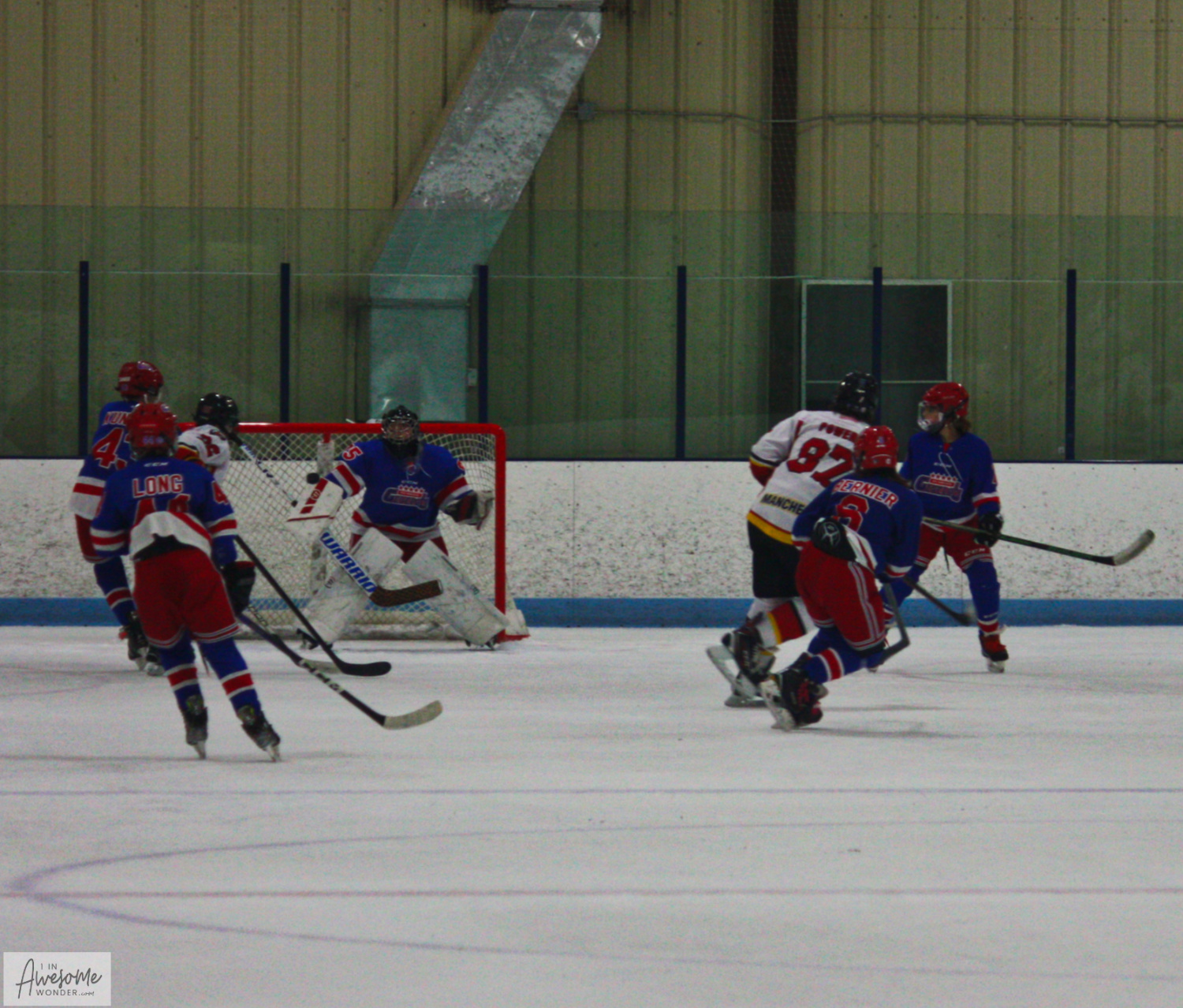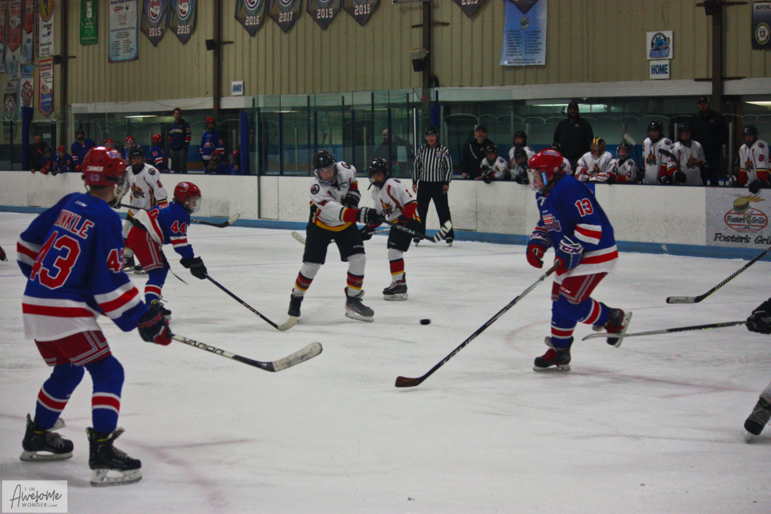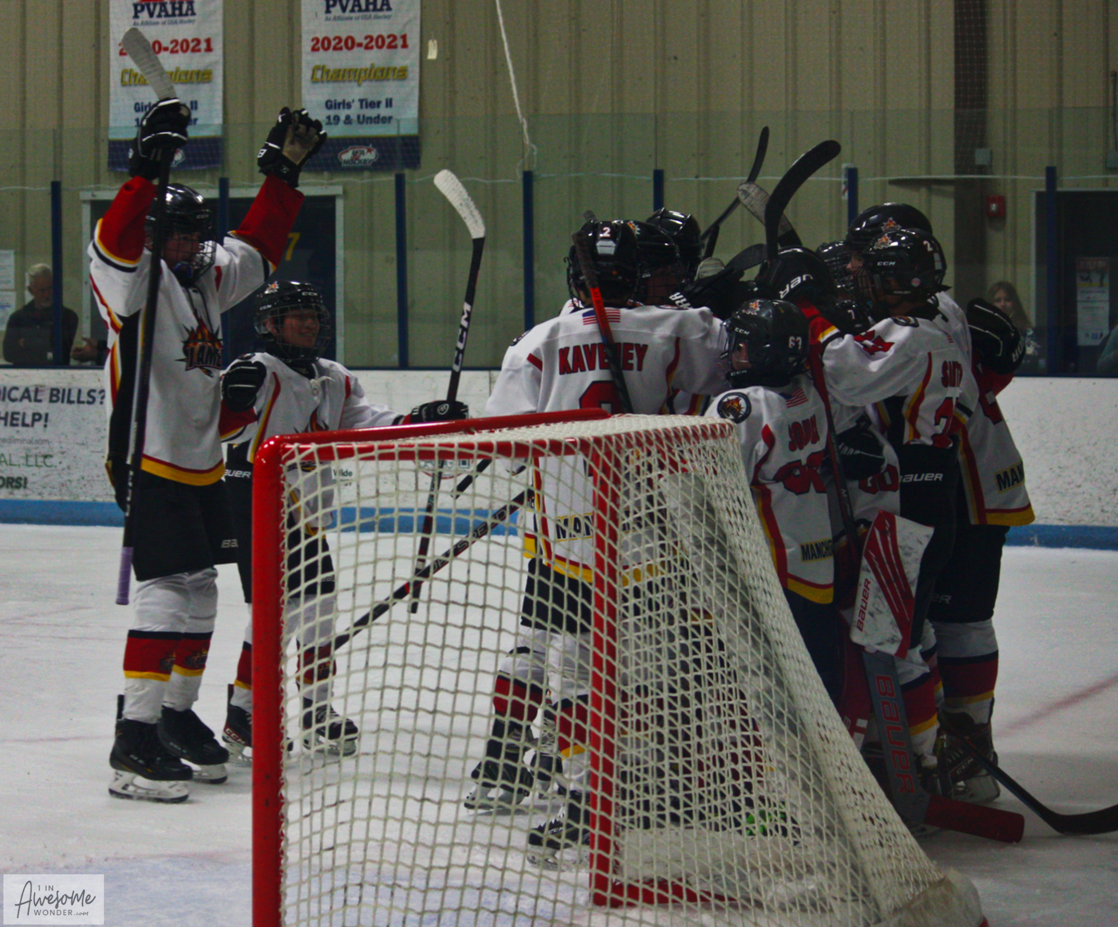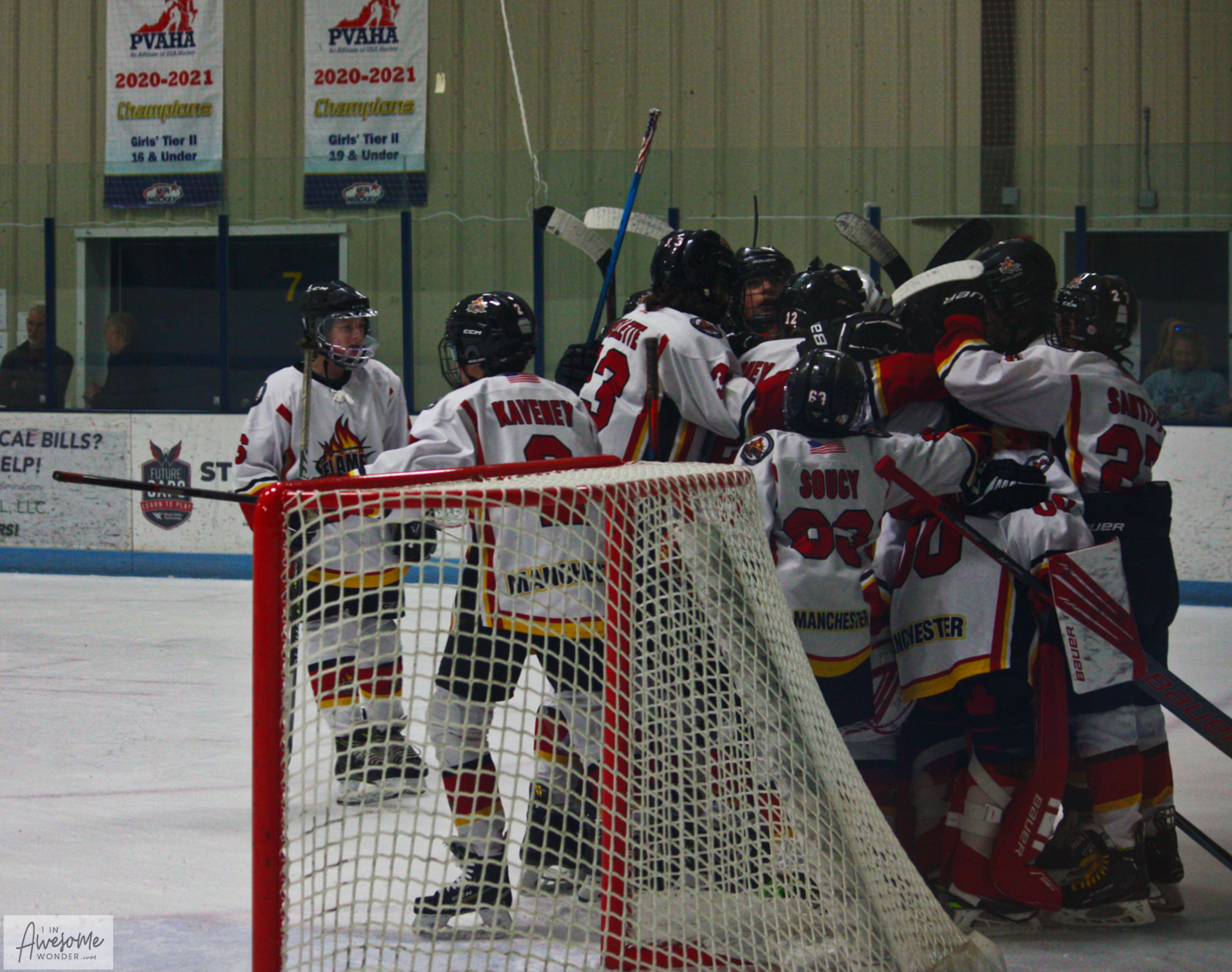 After all the players and assorted members of their families arrived in Washington, DC or Sterling, VA to begin tournament play, it was time to take the ice. The first game was scheduled at 1:50pm and started a few minutes late. The 2010 Flames took a 2-0 lead after one period and squeezed a third goal out of the second period, before adding three more in the final period. The Flames were off to a good start with a 6-0 victory on Saturday afternoon.