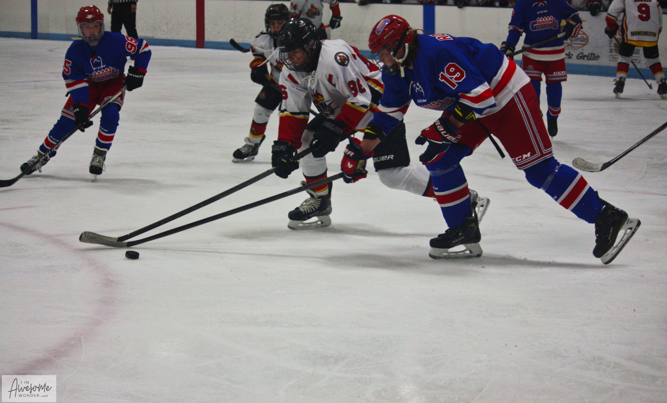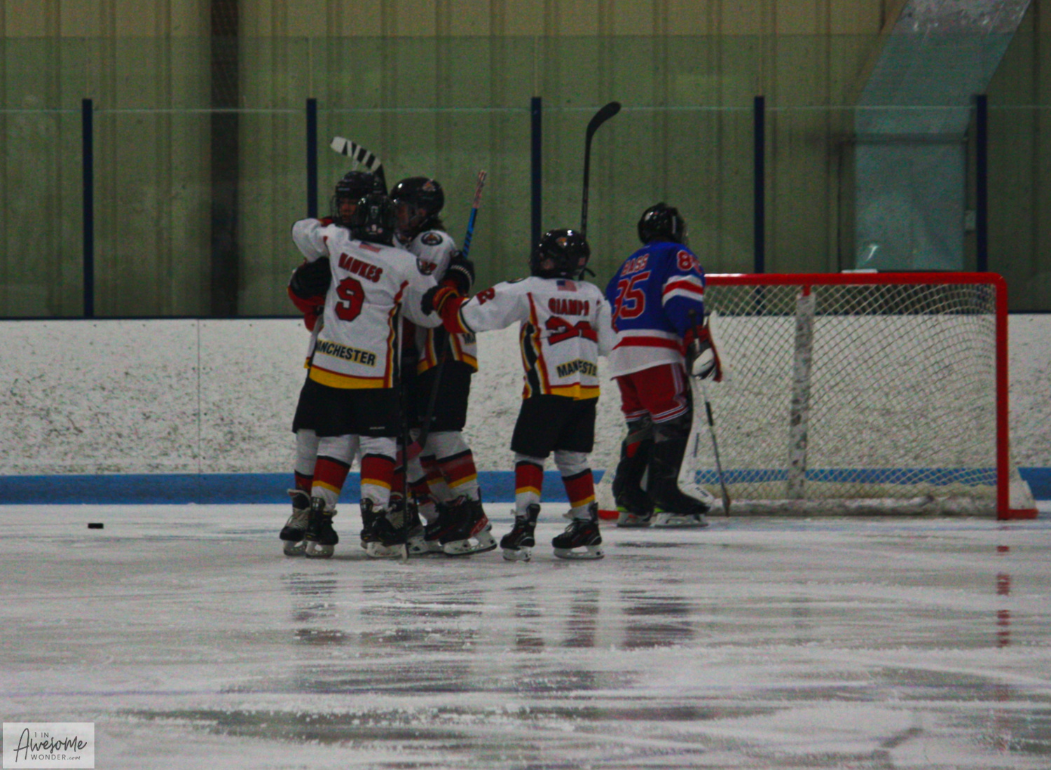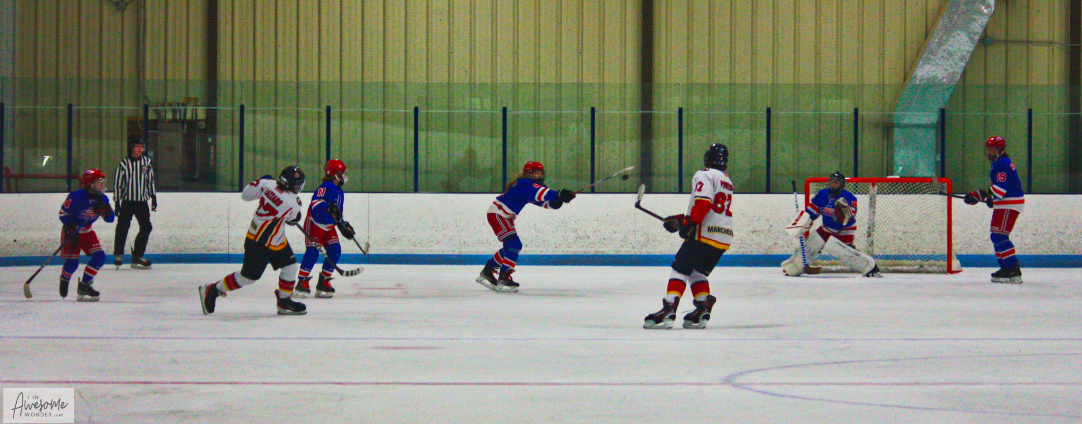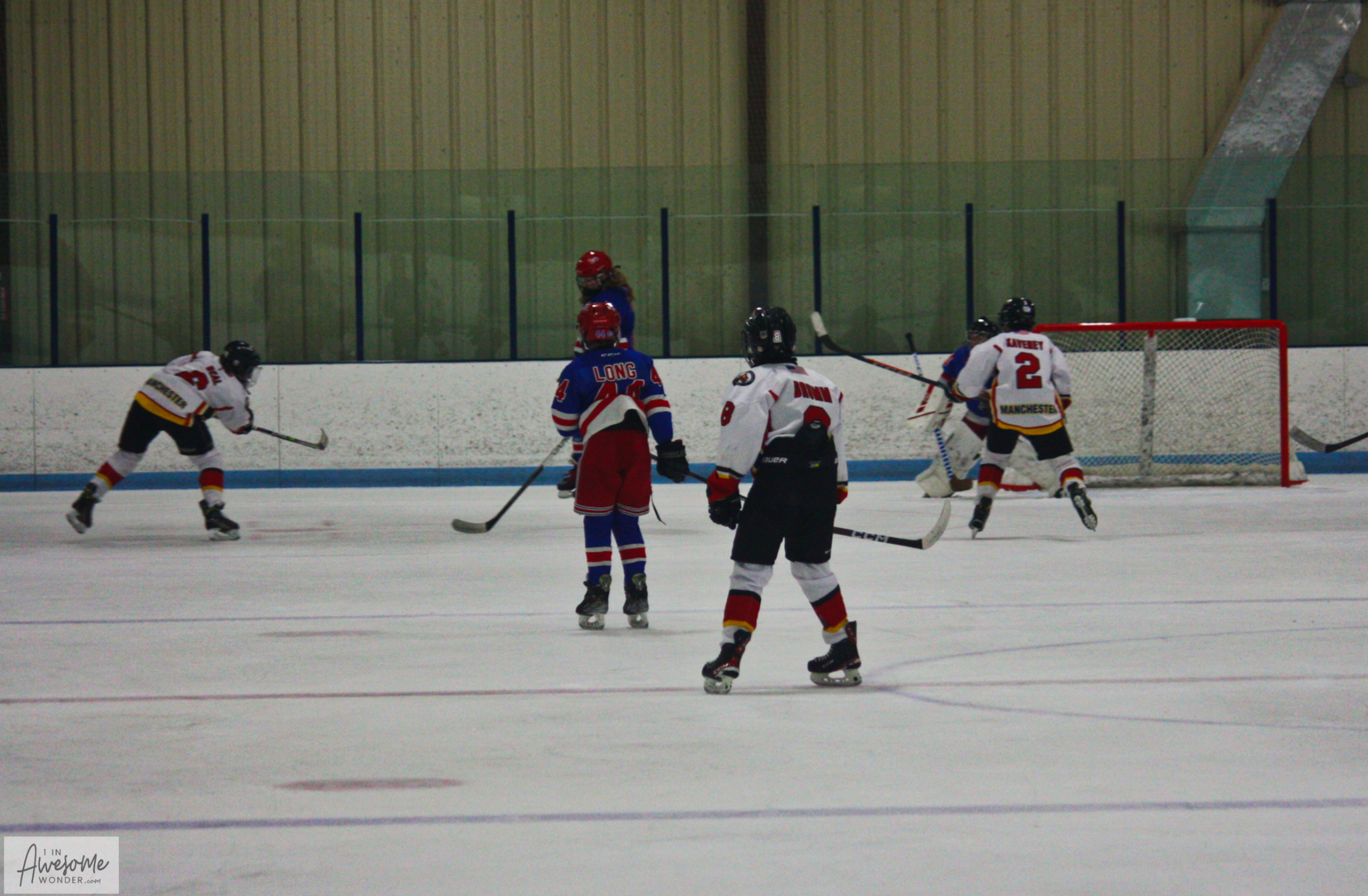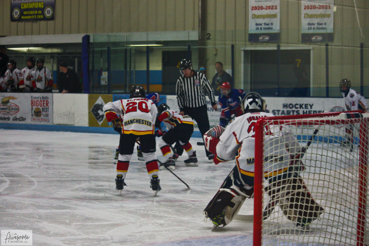 After all the players and assorted members of their families arrived in Washington, DC or Sterling, VA to begin tournament play, it was time to take the ice. The first game was scheduled at 1:50pm and started a few minutes late. The 2010 Flames took a 2-0 lead after one period and squeezed a third goal out of the second period, before adding three more in the final period. The Flames were off to a good start with a 6-0 victory on Saturday afternoon.