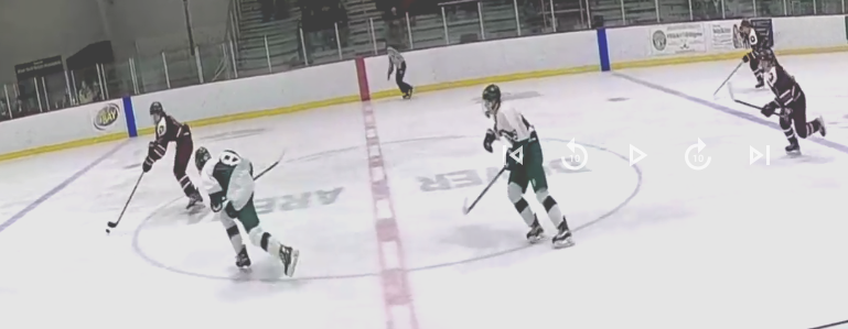 Goffstown tied the game once again, this time at 3-3, in the final period. From out of nowhere the Grizzlies struck for an amazing goal. Dover dumped the puck into the zone. Santoro eased the puck to the side and Brennan Pierce grabbed it. Pierce looked up and made a somewhat risky flip out of the zone type pass that split everyone and ended up on Nick DiMarzio’s stick at center ice. This was a breakaway chance.