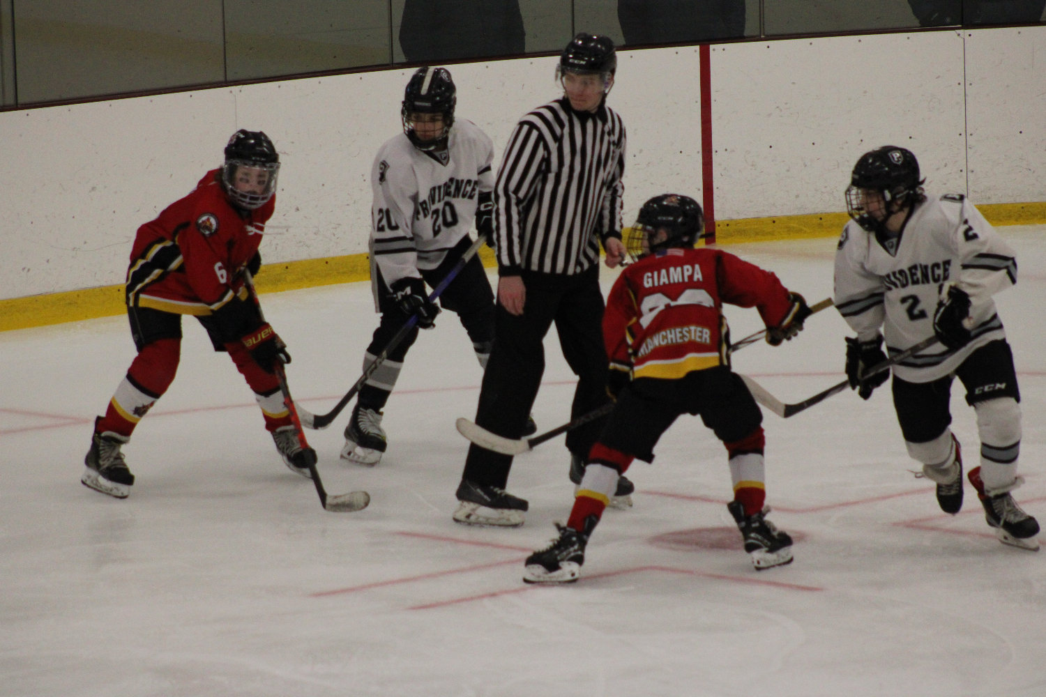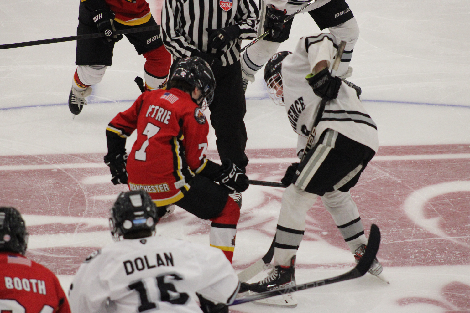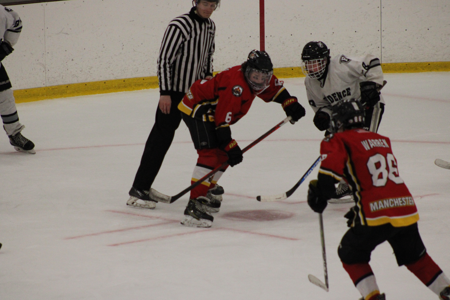 An hour later, Teddy returns to the scene of the missing puck. And wins the draw. The ref is like, “Ha! Ya, okay. That kid still doesn’t know where the puck is. And who is Chang”? (Photo by Mooney’s Moonshots)