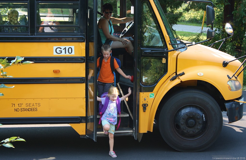 Getting off of a school bus for the very first time.