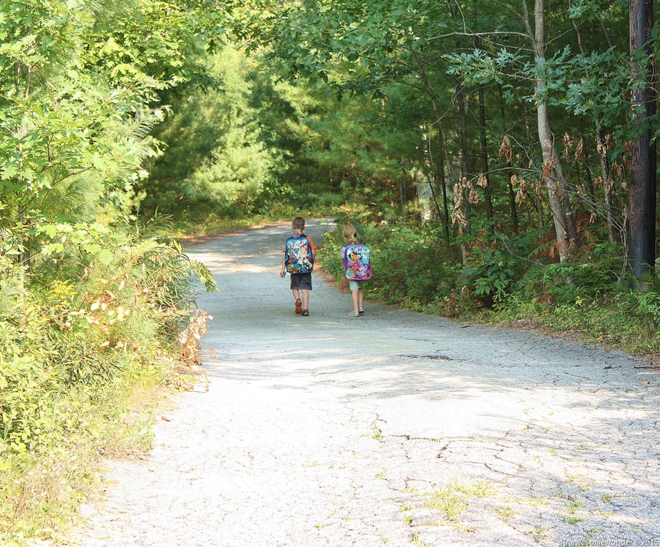 The big kids wanted to walk up the driveway. Too big and grown up for a ride in the van.