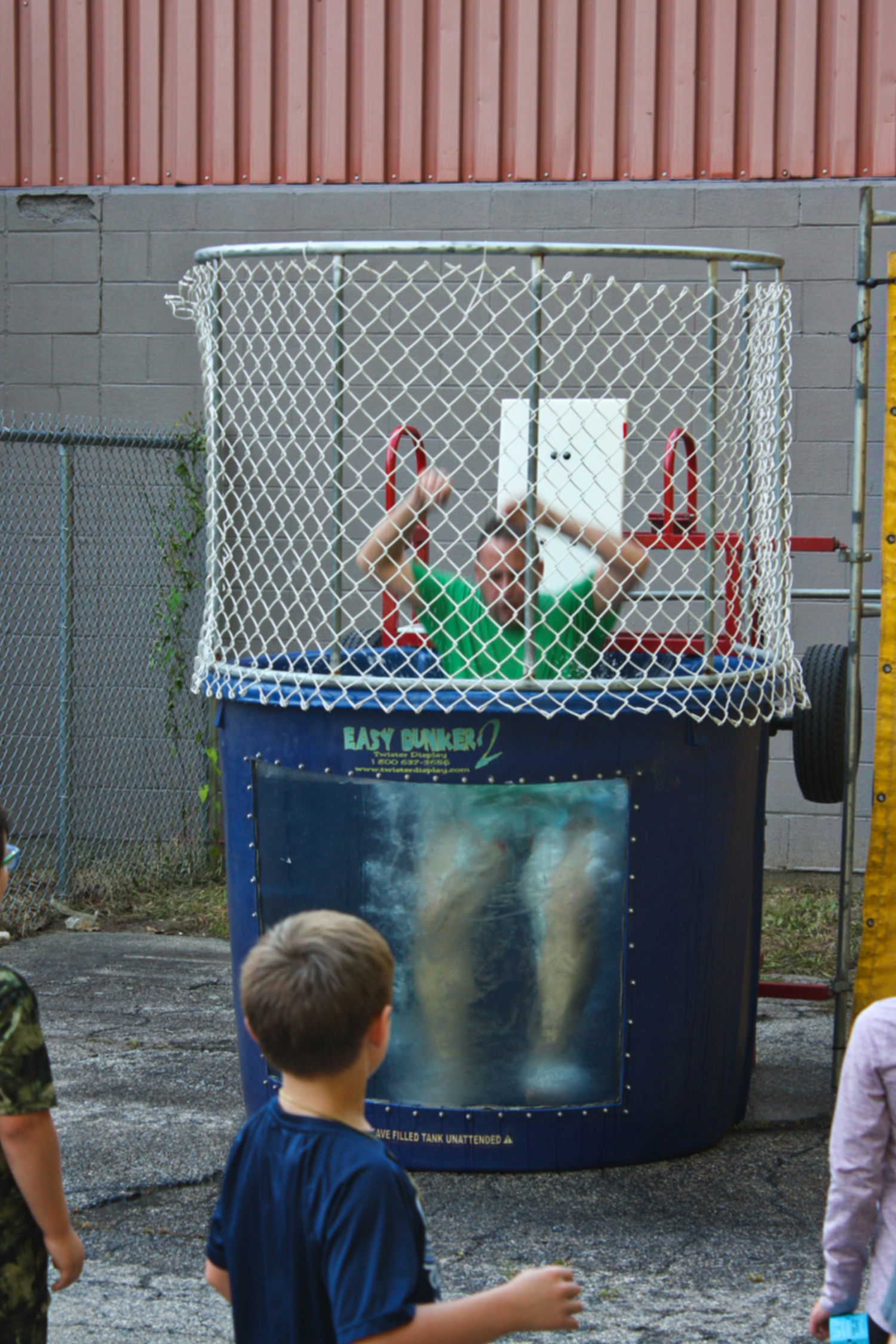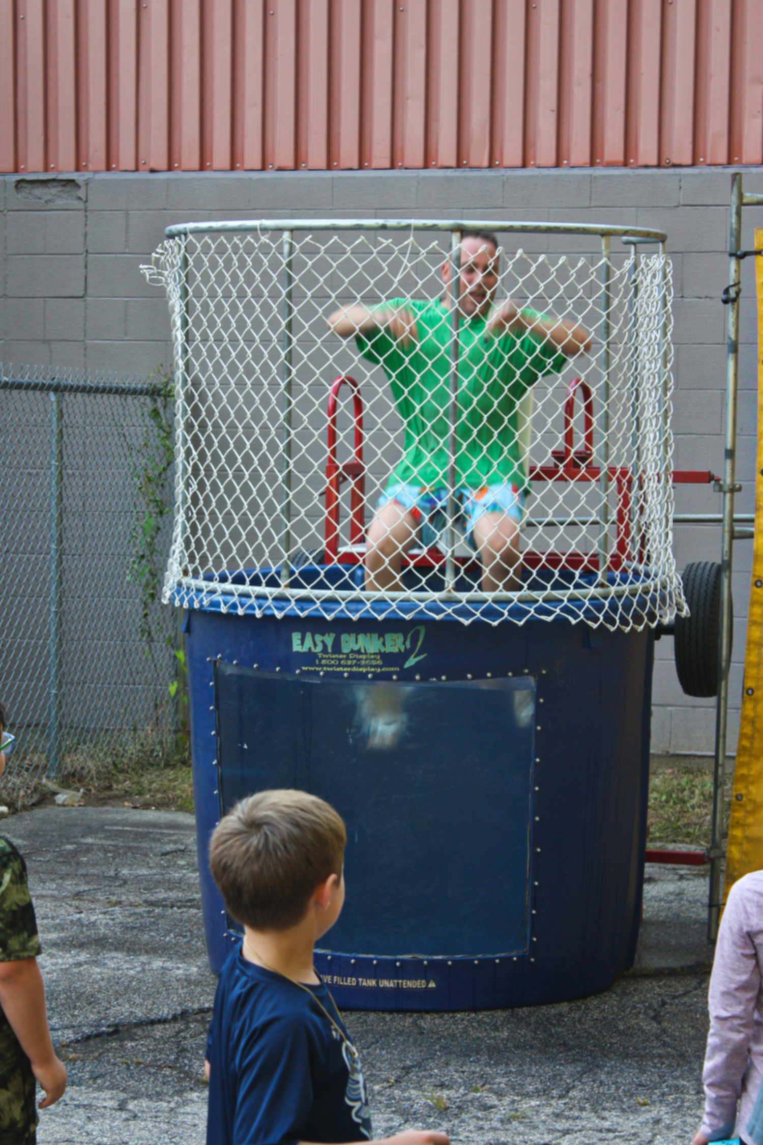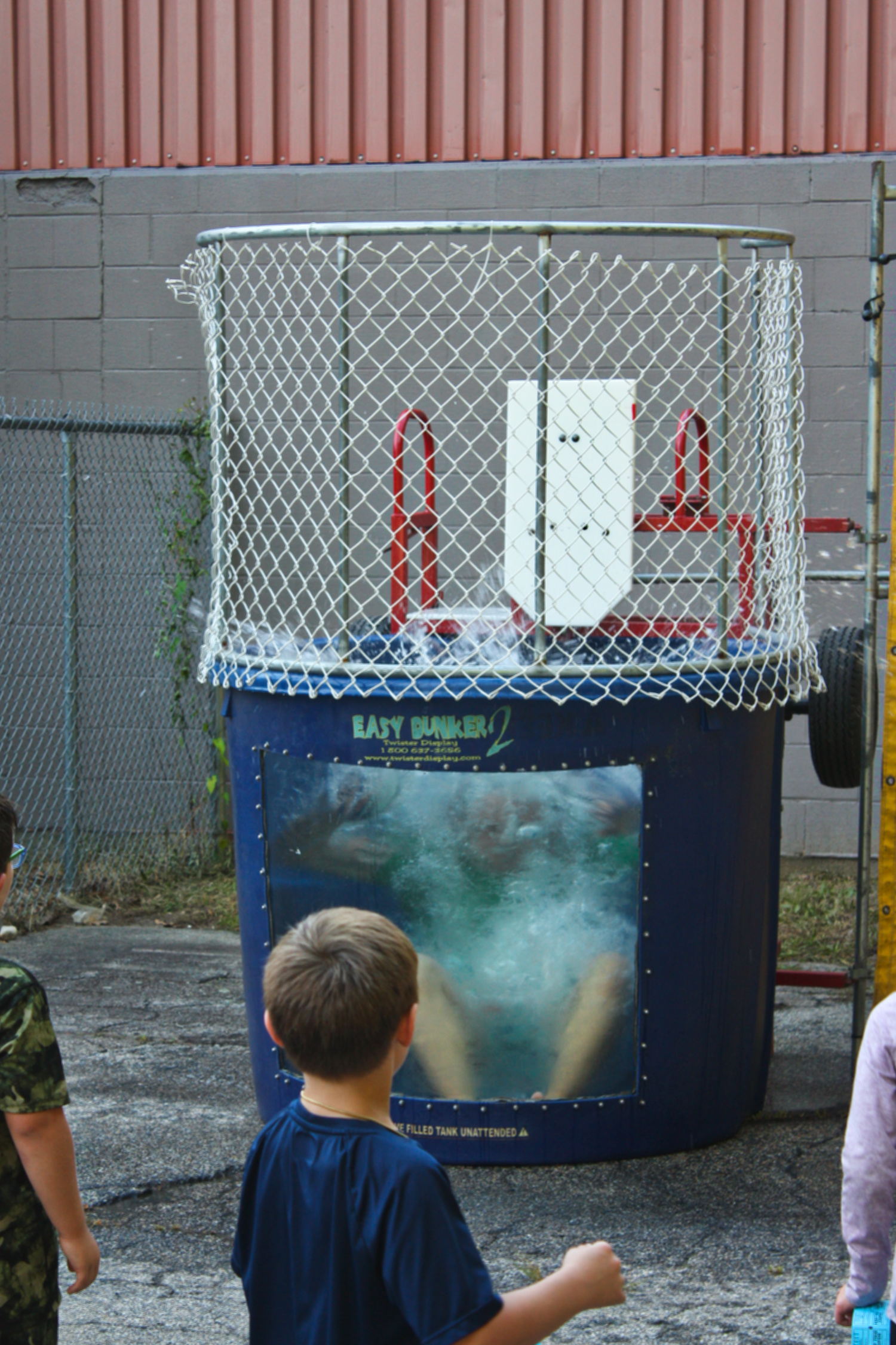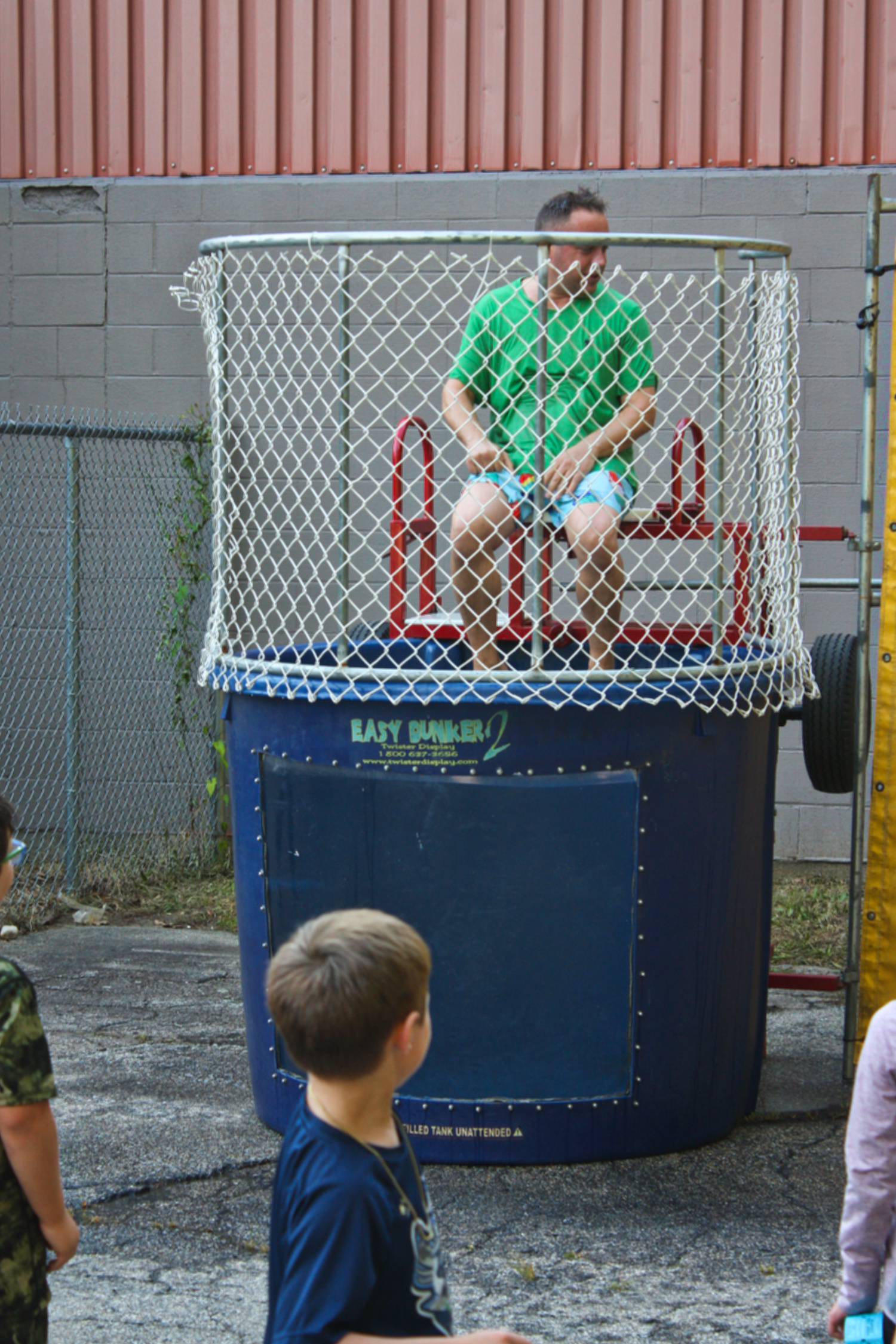 Then of course there was the ever popular Dunk Tank! This attraction was tucked in the corner behind West Side Arena. Kids bought chance after chance to throw a ball at the target and dunk their coach into the water. Check it out!