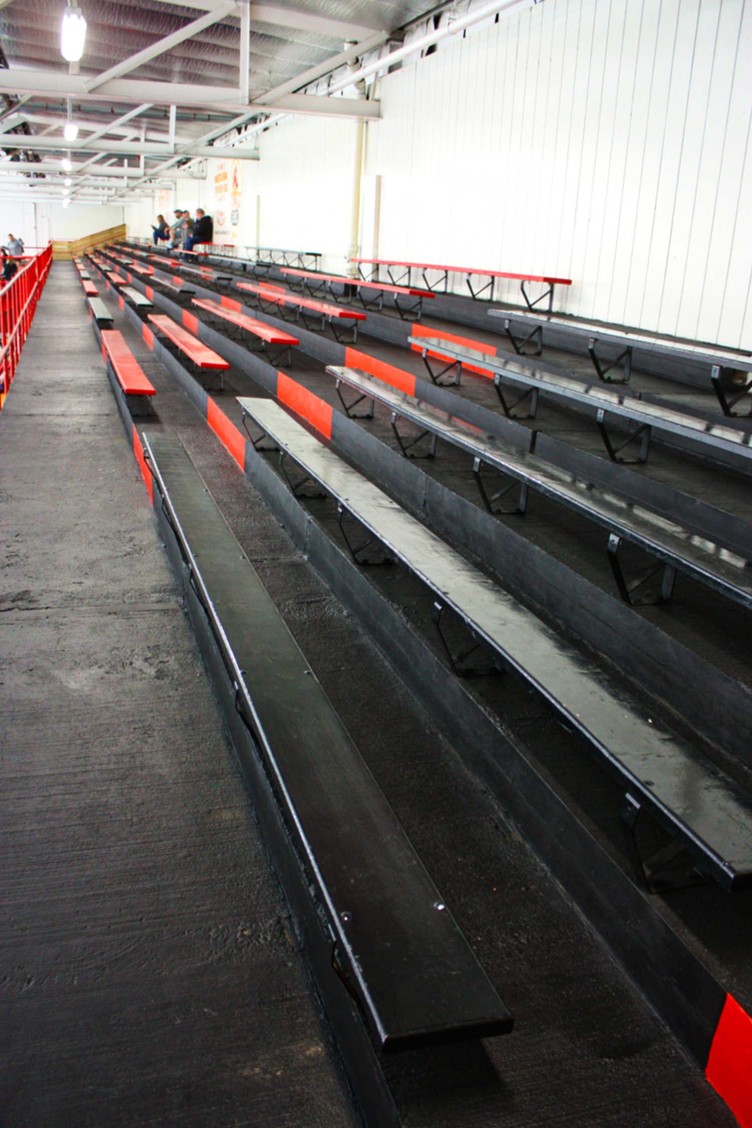 The Manchester Flames Welcome Back BBQ was a lot more than burgers, dogs, and sodas. It was a chance to check out the updates and refreshers done around the rink. A fresh painted logo at center ice, new banners hanging on the wall, and fresh painted colors in various places. I believe that West Side Arena is fifty (50) years old this year, and perhaps it has never looked better.