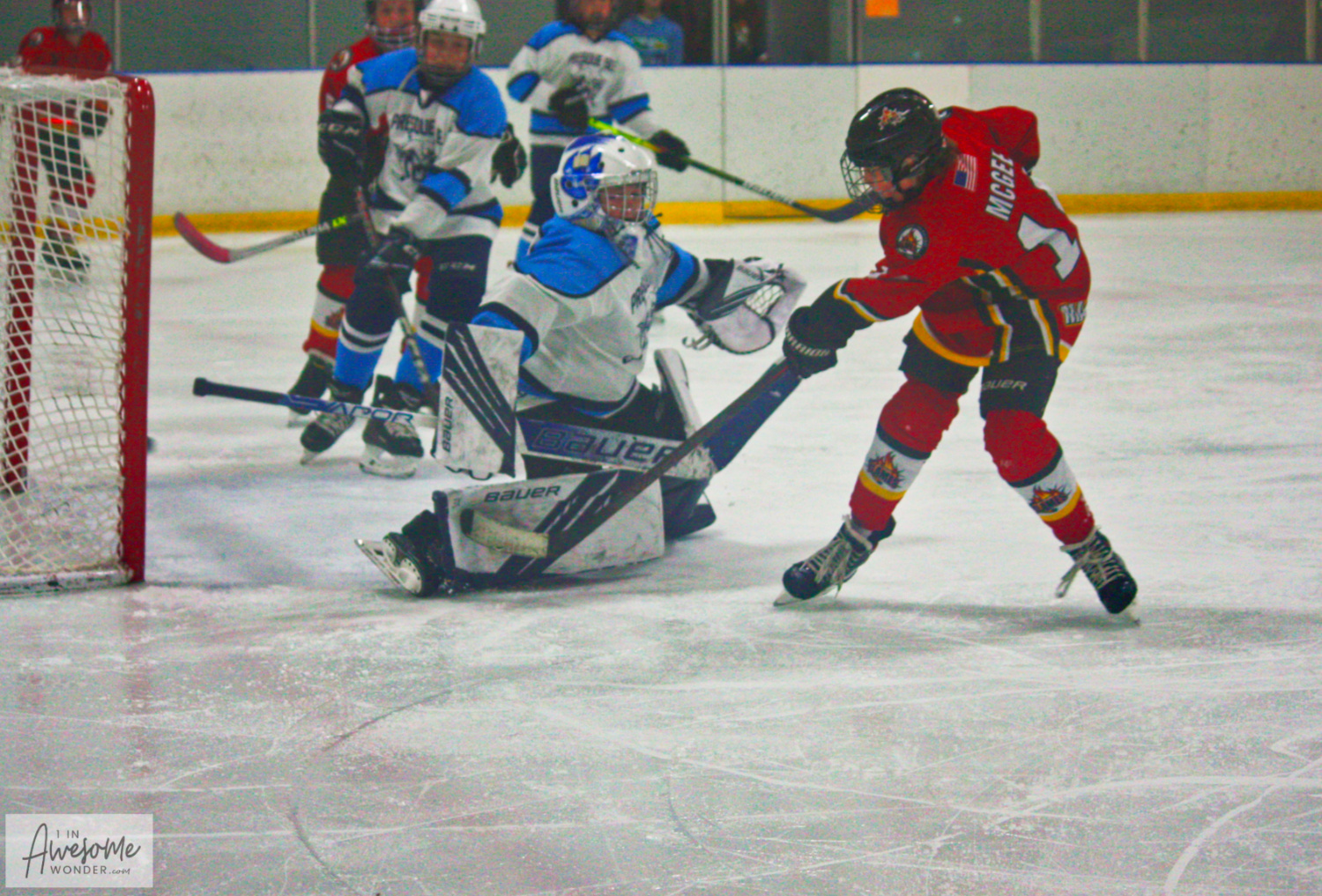 - Logan McCain made a nimble move to keep a clearing attempt in the zone with a backhand play. He circled his new possession for a shot on goal, low and hard. The shot was true but saved with the paddle, where it bounced into the slot where Gavin Petrie was hanging out. Petrie flipped the puck up over the goalie, under the bar, and into the net. Petrie from McCain on the rebound, 3-0.