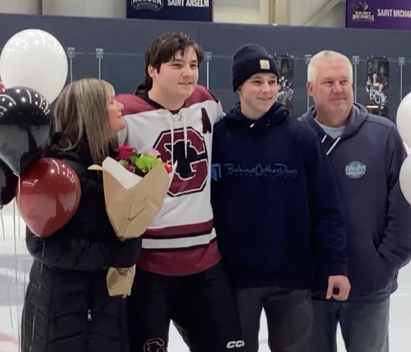 βI’d like to thank all the people that have helped me grow as a player over the years. Thank you to all my coaches and teammates for supporting me and helping me feel at home on the ice. I’d also like to thank my grandparents for always showing up to watch my games no matter how far away or how late they may be. Most of all I’d like to thank my mom and dad for always supporting me in my hockey career and pushing me to become the best person I can be on and off the ice. Thank you to everyone who has supported me over the years, I wouldn’t be here without you.β