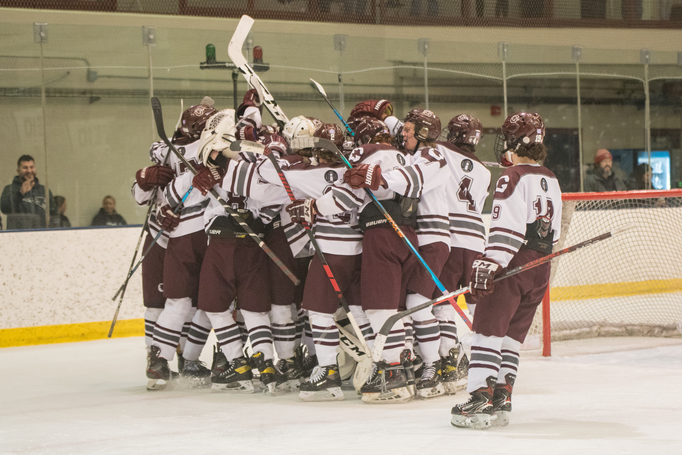 Goffstown changed lines and Brandon Bograd won the face-off to Max Ouellette who was immediately tied up along the half wall boards. Bograd came over to help out and secured the puck. Bograd turned and fired a rising shot that Prochilo saved with her blocker. The puck dropped at the top of the ice in the crease, and Nick DiMarzio, on the move from the weak-side, was able to backhand the puck into the net. On the face-off DiMarzio had lifted the defenders stick as the puck dropped and the stick pinwheeled into the air and toward the other circle. This became immediately crucial as the winning goal was scored against a defender with no stick.