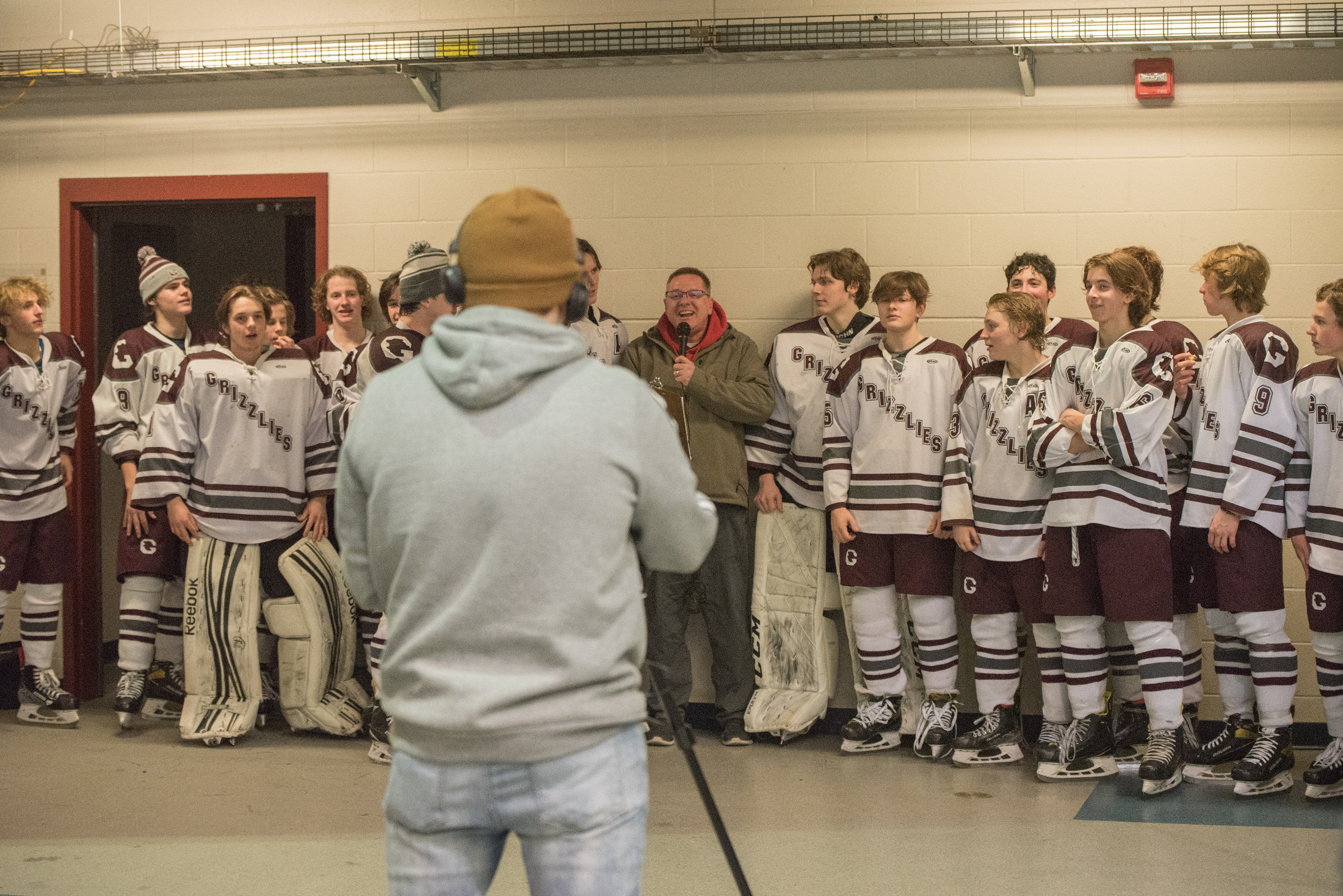 This was not the ‘classic’ high intensity, pure flow of a game that the Goffstown hockey team played in on Monday night at New England College. It was a pretty good game though. The Goffstown Grizzlies did not skate like they did against the Warriors. But that had a lot to do with the opponent, the Spaulding Red Raiders. This Spaulding hockey club came in to the game after winning two games in a row, and obviously playing some pretty decent hockey.