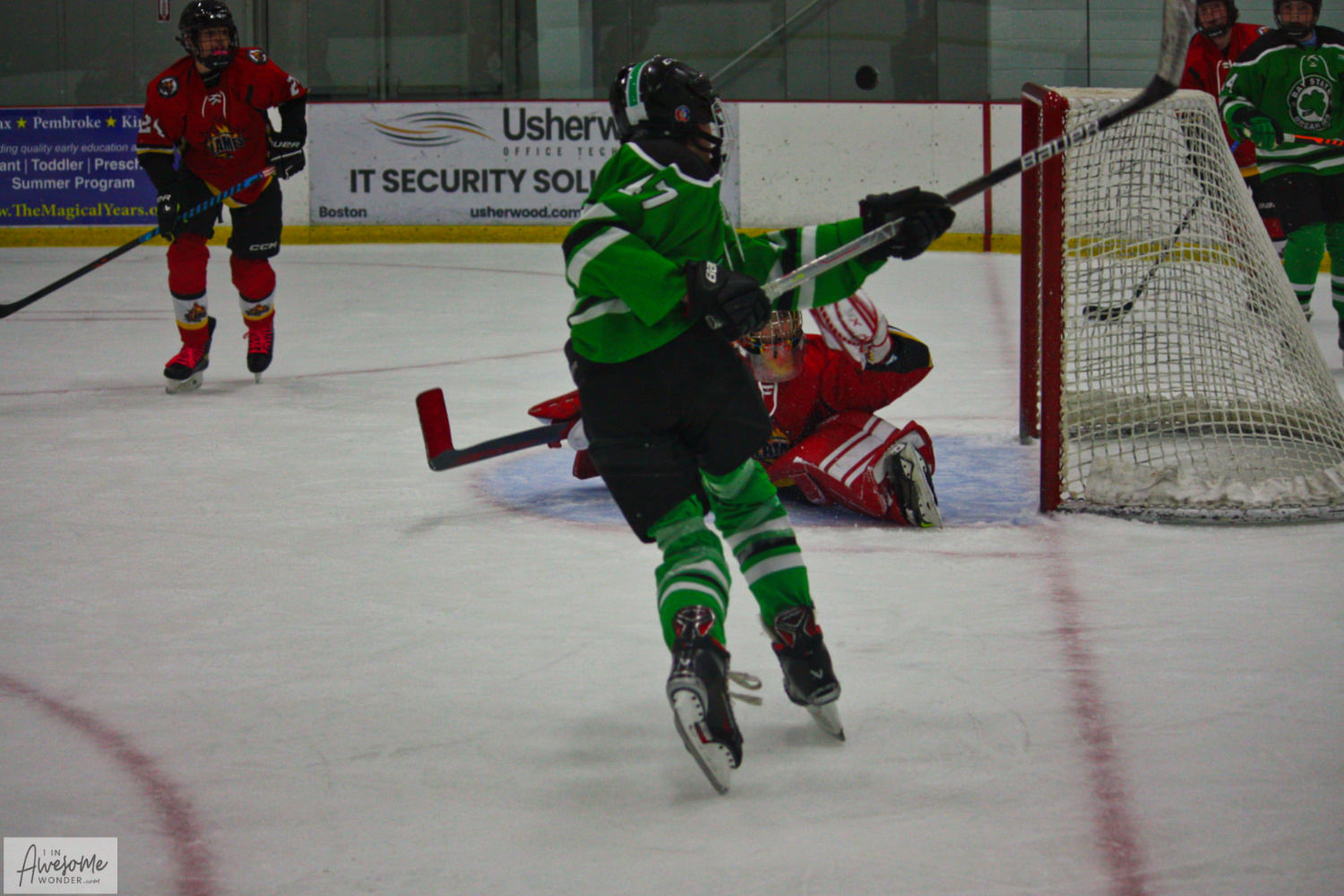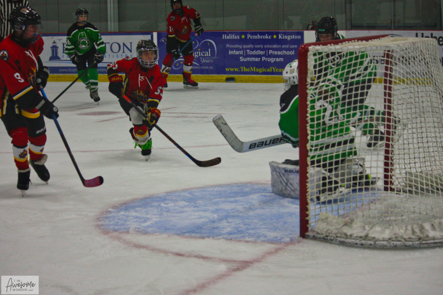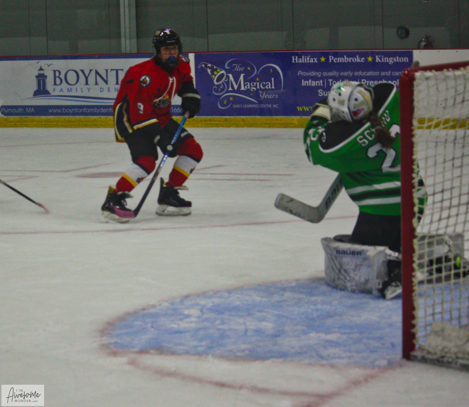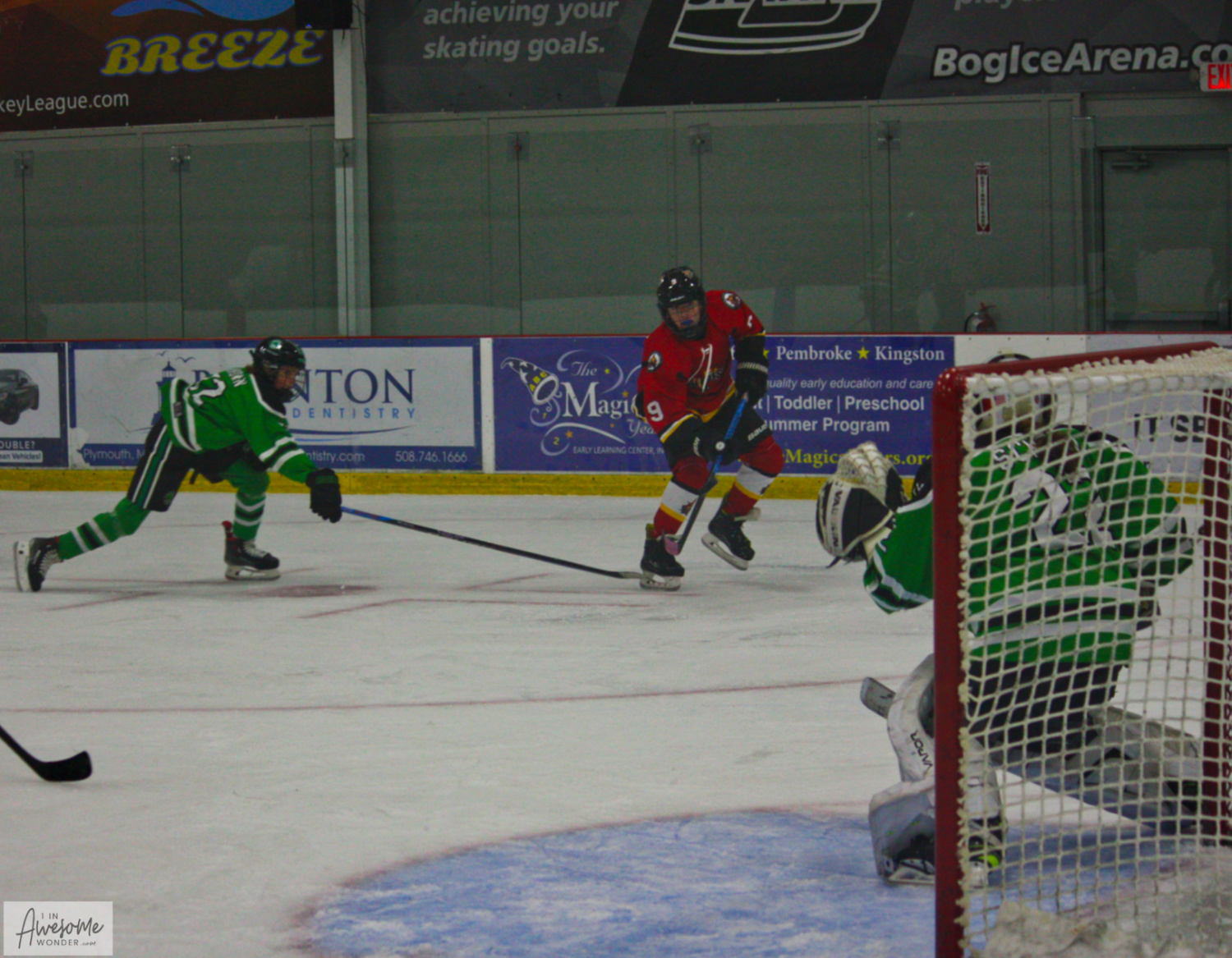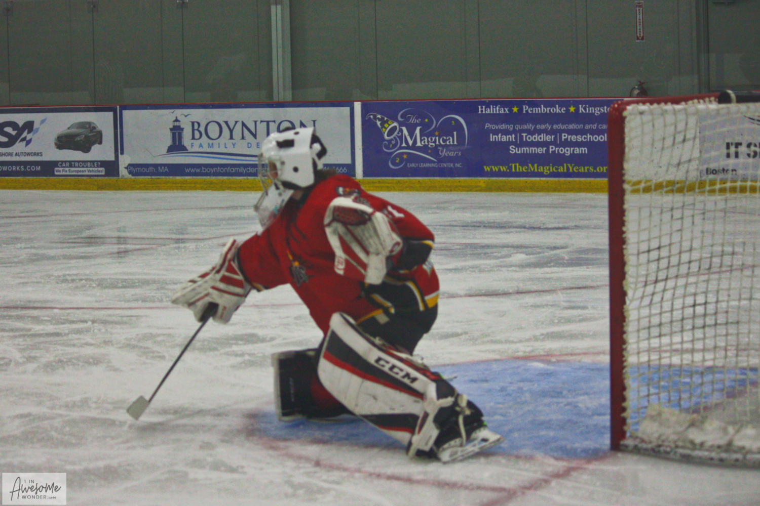 - Flames breakaway goal – The Flames had stopped a Hanover scoring chance and they were all looking to turn and fly with the puck. Eventually, Soucy was able to slide the puck up the wall to Ouellette. Ouellette picked up some speed and rumbled over the offensive blue line. He made a slick move and stepped inside the defense, clearing an unobstructed path to the front of the net. Ouellette closed the gap and snapped a shot that tickled the strings in the cage. Ouellette from Soucy. 5-1.