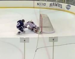 If you do get a chance to see any video from the game on Monday night, check out the third St. Thomas goal. Goffstown won a face-off and dumped the puck into the offensive zone which is usually good play, if not a safe one. St. Thomas got a good bounce when the breakout pass from behind their own net hit the back/side of the apron and ramped up and over the nearest fore-checker. Max Murray grabbed the puck on the half wall made a short little pass to Colin Chrisom who was already flying at full speed up the left wing boards from his own end. Colin took the puck all the way up ice and right to the goal line at the bottom of the circle before dishing a last second pass across to Brendan Chrisom who had also flown up the ice. Brendan received the pass in the crease and stuffed the puck into the open side of the net. It was a gorgeous play.