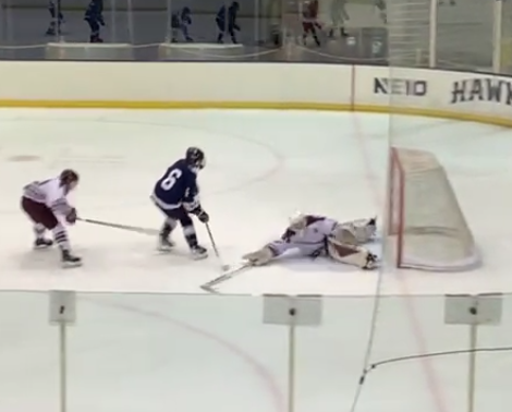 So, in came the mighty visitors to play the Goffstown Grizzlies. Goffstown hockey certainly doesn’t have the reputation or post-season status that the Saints have. Rightfully so. Though one of the most enjoyable qualities I see in the Grizzlies year after year, is their compete level. Goffstown certainly wasn’t going to outscore the Saints, and even scoring one goal was more than they were capable of on Monday night. Honestly though, had it not been for senior, James Amorelli’s, sensational play in net, this game could have been an 8-0 game, or worse. James made some tremendous saves in the game. He had some of the Saints potential goal-scorers shaking their heads or looking to the skies.