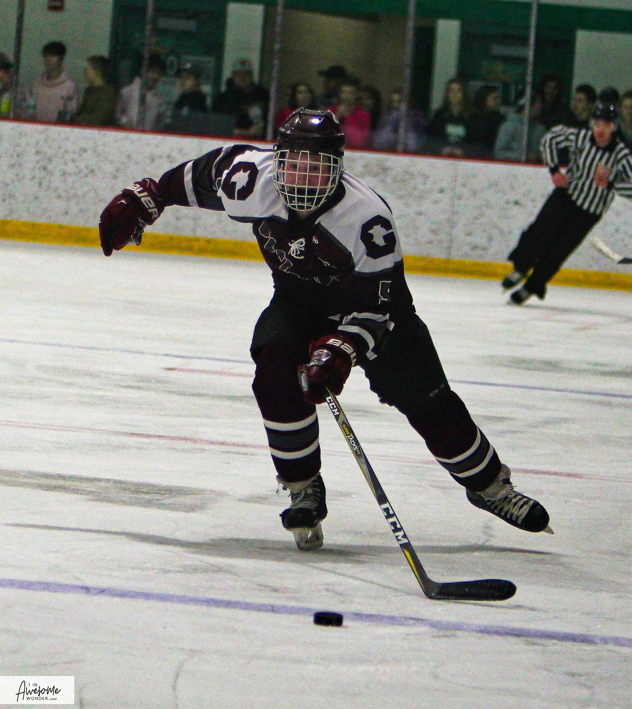 In the third period, Goffstown looked tired. Their shots on goal were coming from further and further away. The big boy hockey was having the desired effect, Colby Gamache and Beal were scoreless and didn’t muster much offense. The Grizzlies have played this brand of hockey before and played well, but not last night. Anyways, Asa Forbes burst in from the right wing boards and put a shot past LaSella on the short-side post at 3:52, giving Dover a 3-2 lead. The play was set up by Trevor Gnall and Dominic Ciccotelli. Again, midway through the period, Goffstown’s defense made a mistake. This time Colby Wright fell down at center ice and the puck was left to a wide-open Dover rush. Colin Burke hustled back though and cleanly poke-checked the puck to safety just before a shot could be fired. Dover took a 4-2 lead at 8:31 when Ollie Stevens scored from the slot after a feed from Aiden McDonough. Like many Americans, their softest spot is their middle, and such was Goffstown’s defense down low. At 12:01 LaSella made a beautiful right pad save on Nick Marchuk to keep the deficit at two. With 90 seconds left in the game, Goffstown pulled LaSella for an extra skater, but could not score. Gnall added an empty-net goal after Jameson Goodridge clanked his breakaway shot off of the post. Dover won 5-2 and led the shot count 33-29 for the game.
