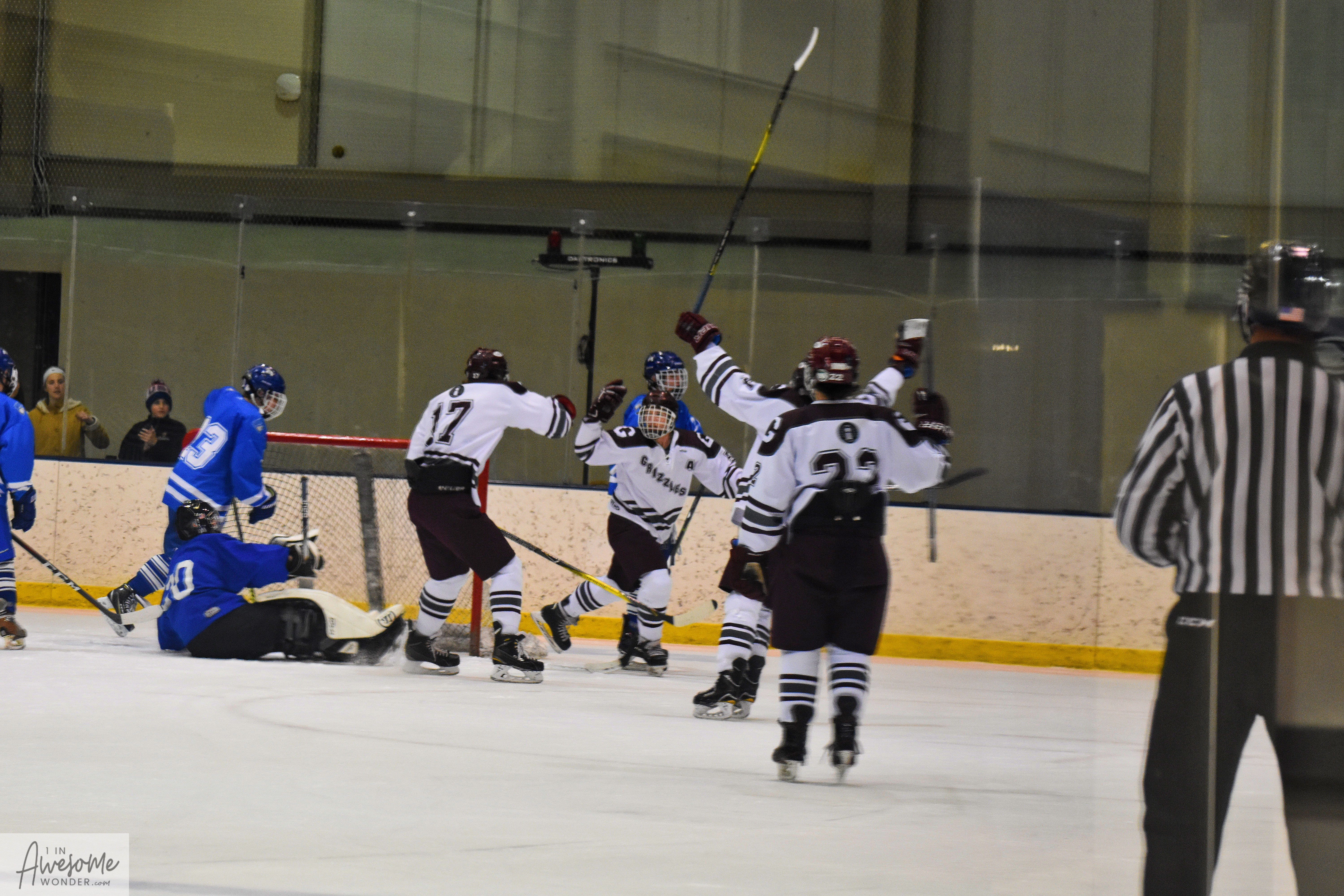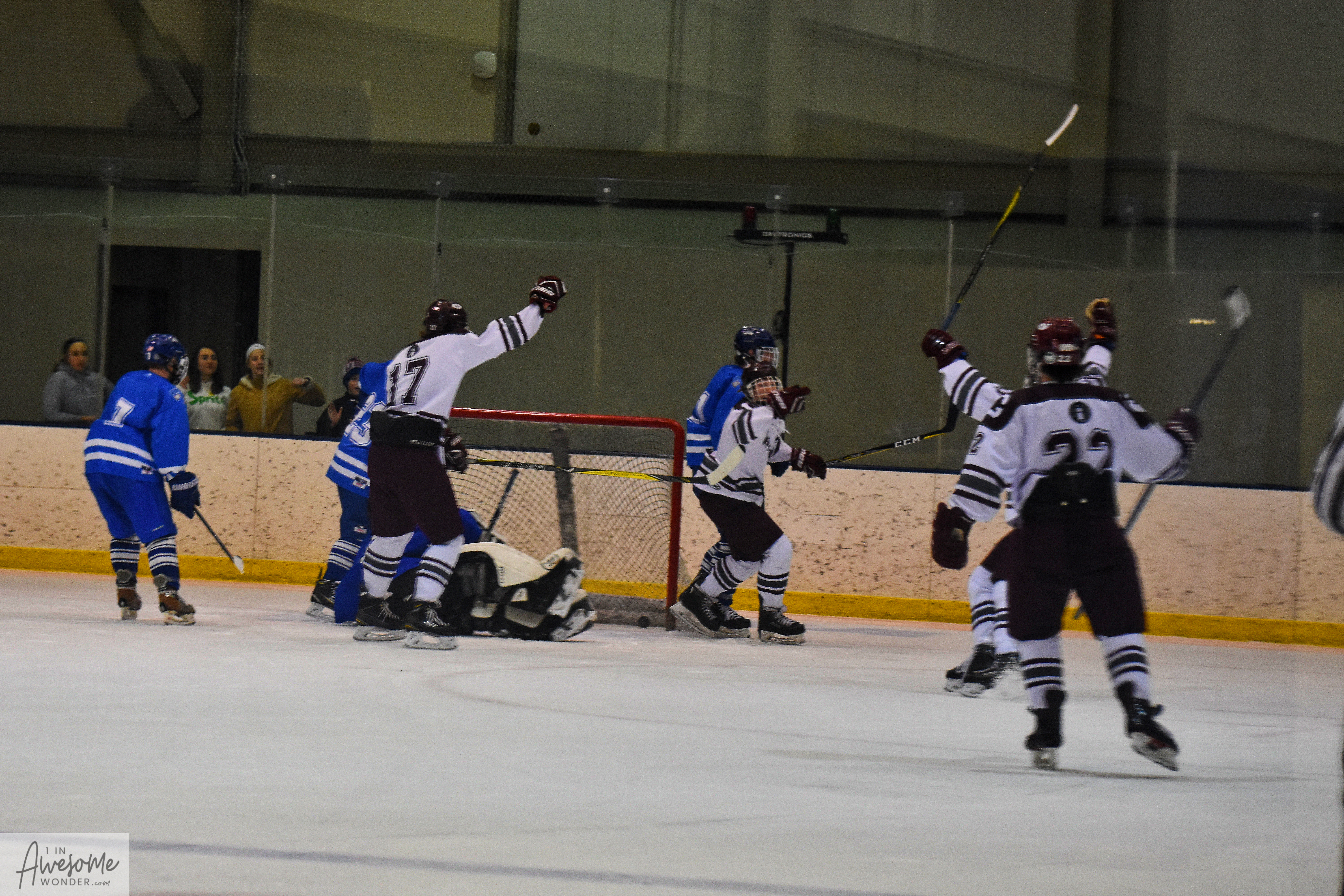 So back when the game began, Merrimack scored first when Andrew Frothingham was given all kinds of space to come out in front of the Goffstown net and score on Madeline Sage in goal for the Grizzlies. Matt Warrington got the puck deep into the corner after a questionable late hit from Sebastian Beal. Dominic Carozza moved the puck to Frothingham who walked out from the corner and beat Sage on the near post. The goal came at 2:04 of the period. Goffstown answered at 4:55 when Grady Chretien scored on a shot that was set up by Brett Lassonde. At the time the Grizzlies were starting to enforce their will and possess the puck while creating numerous scoring chances.