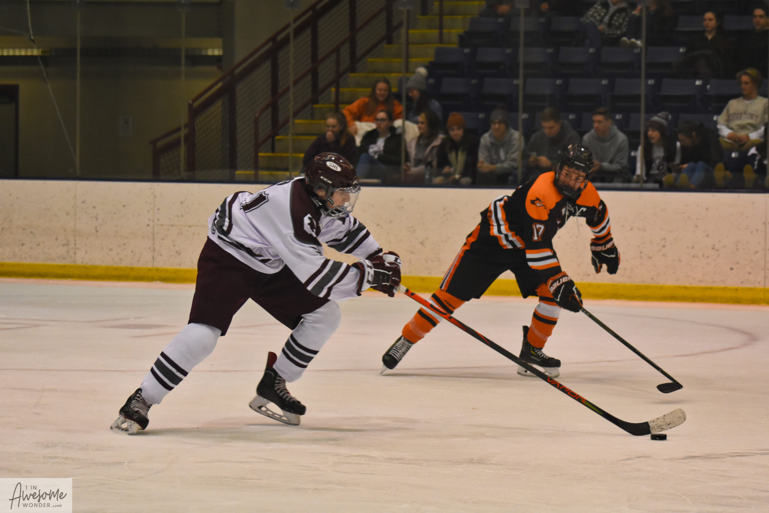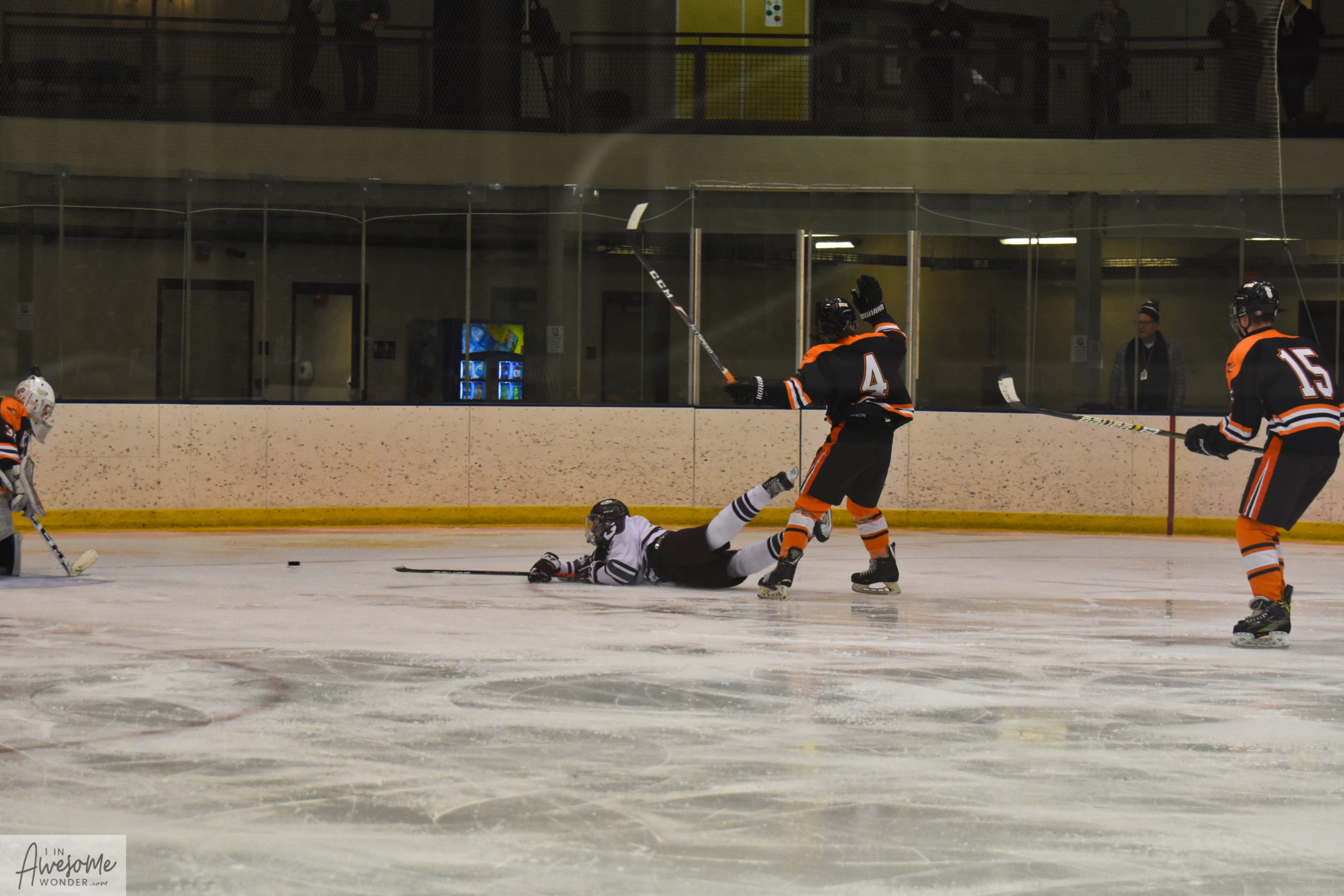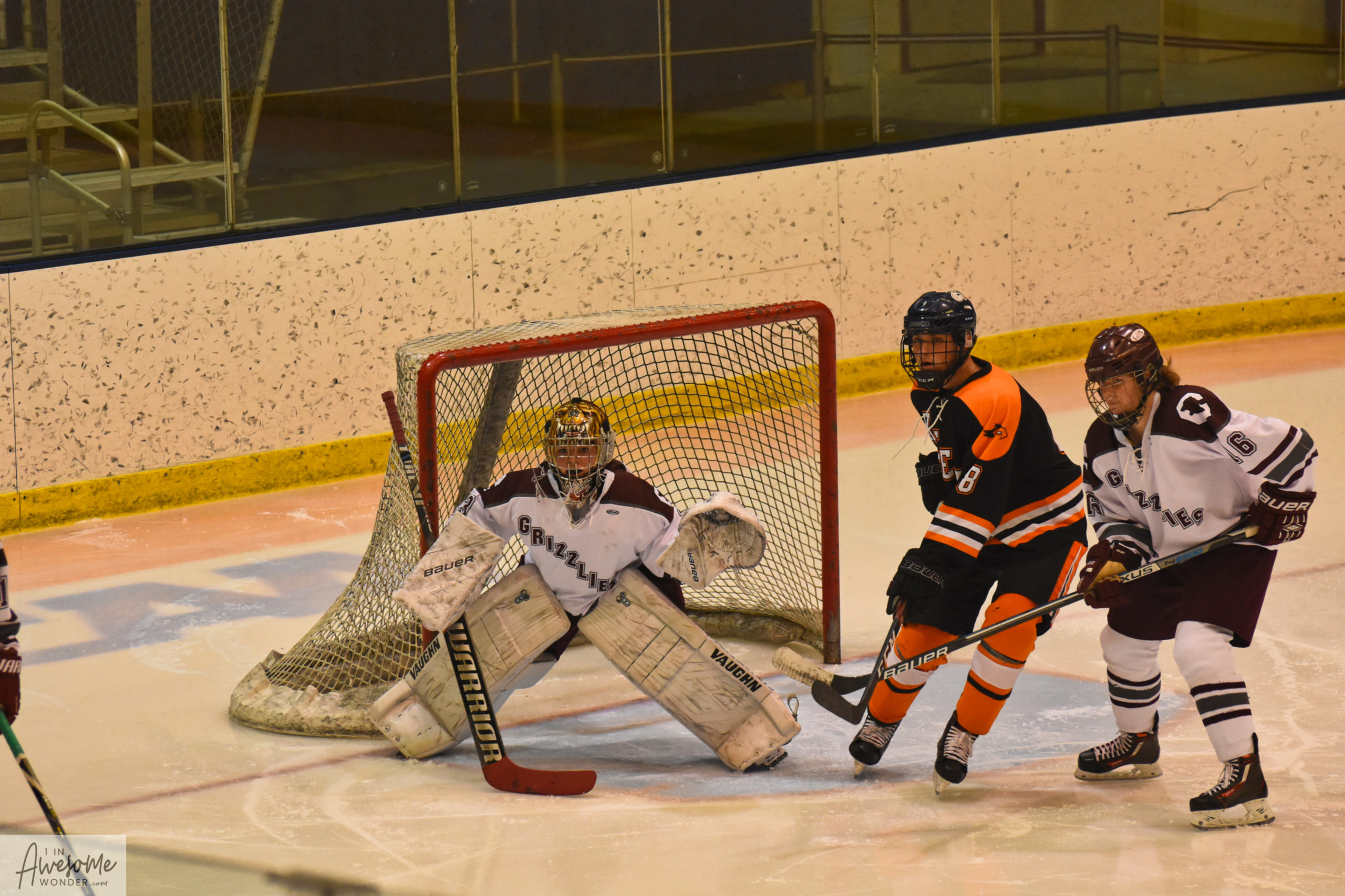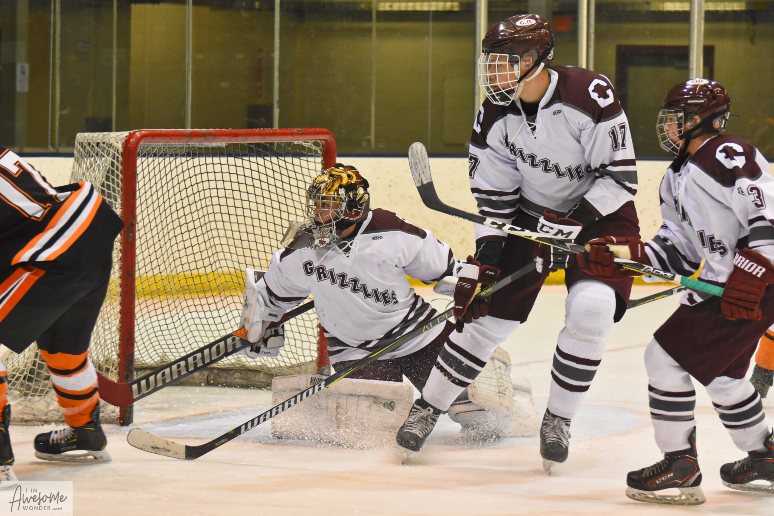 The Grizzlies now trailed 4-3 with lots of time left to play. At 10:37 of the period, Joe Walsh took a double minor penalty for high sticking and unsportsmanlike conduct. Goffstown had the advantage for a whole four minutes and even though they came close, including pulling Sage from the net at 14:00 of the period, the Grizzlies could not get the equalizer. Goffstown led the shots count 13-5 in the period, and 30-24 for the game but fell short on the scoreboard, 4-3.
