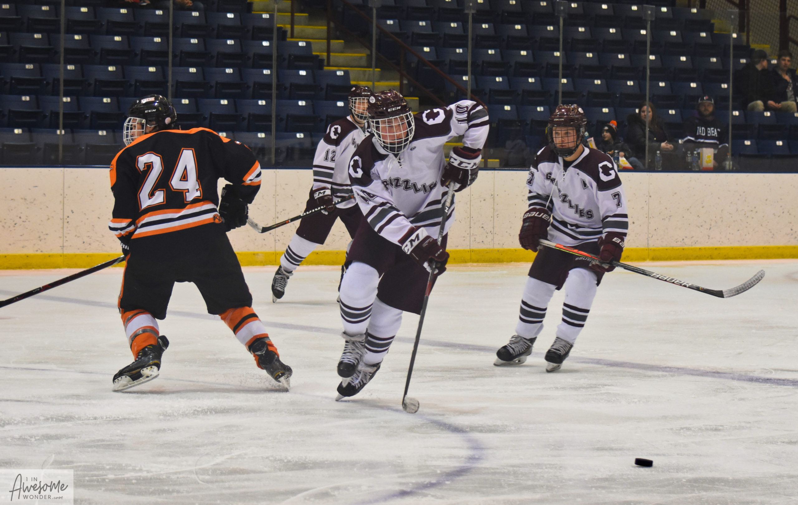 The Grizzlies welcomed the Keene Blackbirds to Sullivan Arena on Wednesday night for a contest with one of the top teams in Division II hockey. Goffstown scored first and then gave up 4 straight goals in the second and third periods. A pair of Keene’s goals were scored on power play opportunities, they were 2 for 2 with the extra skater. The Grizzlies stormed back but could not score on their power play chances, and fell 4-3.