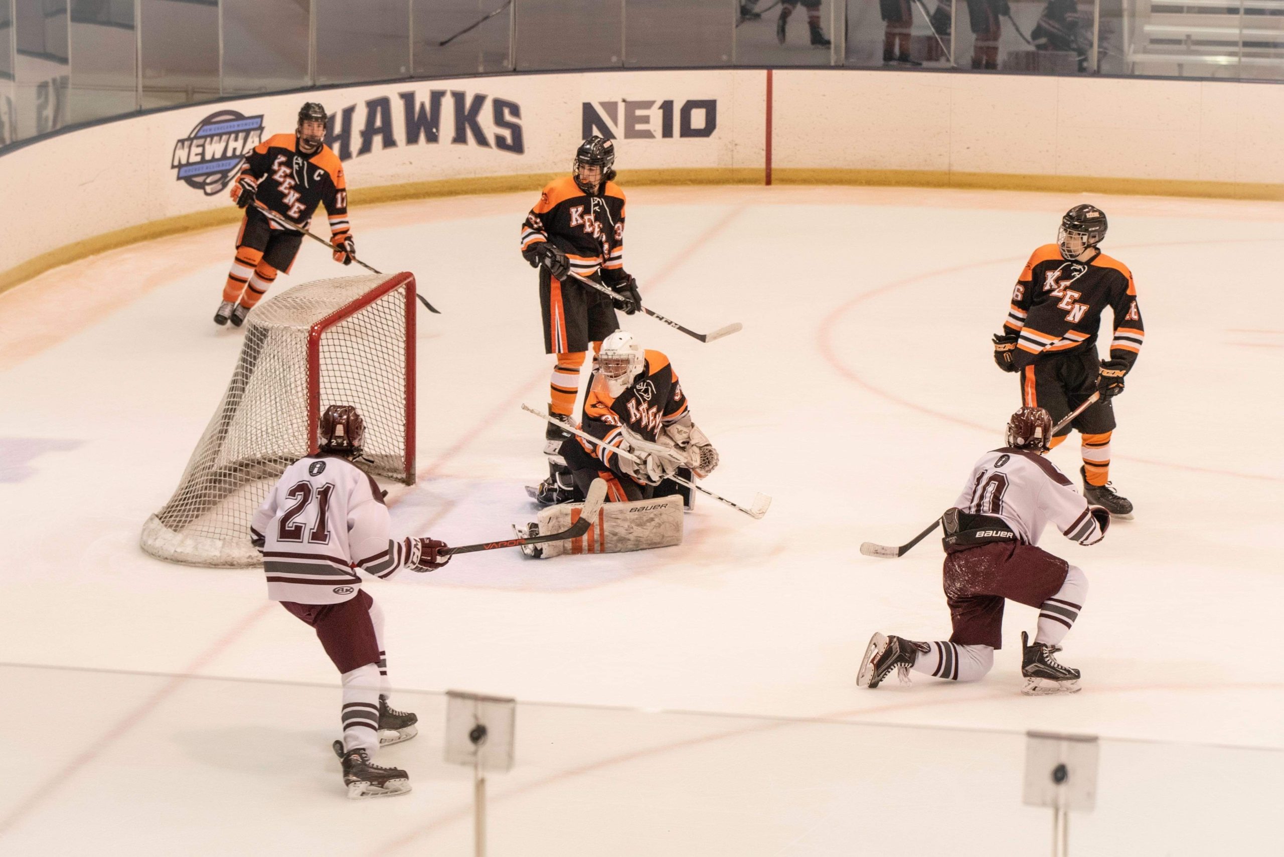 Jerred Tattersall possesses one of the best shots in all of Division II hockey, in my opinion. He is a goal scorer, a finisher. In the second period he scored a natural hat trick. His first goal of the period came at 1:25 on the aforementioned penalty being served by Milianes. Peter Haas had the lone assist on the play. Just a few seconds before the goal, Keene had hit the post with a shot. I thought that Goffstown was much better on their defensive assignments in this game despite being down another one of their top defenseman for this game. Keene may be one of the better offensive zone teams that Goffstown will see this year, especially the Black Birds first line. The value of possession of the puck for the Grizzlies especially when attempting to break out of their own end continues to plague them. Although I thought that if everyone moved the puck along as quickly and as decisive as Melanie Riendeau did tonight the Grizzlies would have been in better shape. Keene capitalized on that very trouble over the entire second period. At 7:25 of the period Tattersall scored again, this time from Joe Walsh. At 8:40 of the period, Peter Haas snagged a failed clearing attempt and walked in from the left point only to ring his shot off of the corner where the crossbar and post come together. Then at 11:04 Maddie Sage made an impossible save on Tattersall’s clean breakaway attempt. I am still unsure how she kept that puck out of the net. Jerred’s third goal was a backhand on the doorstep after Sage made saves on shots from Walsh and then another from Robbie Nowill. The goal came at 12:10 from Nowill and Walsh. These goals were the result of a great finishing touch by Tattersall but also came after Goffstown either had the puck or had an opportunity to clear the puck, and Keene ended up in possession of the little black rubber disc. Ben Brown took his turn when he hit iron with a shot off of the crossbar at 13:08. Keene would finish the period with a 3-1 lead, even though shots were even at 9-9 in the period.