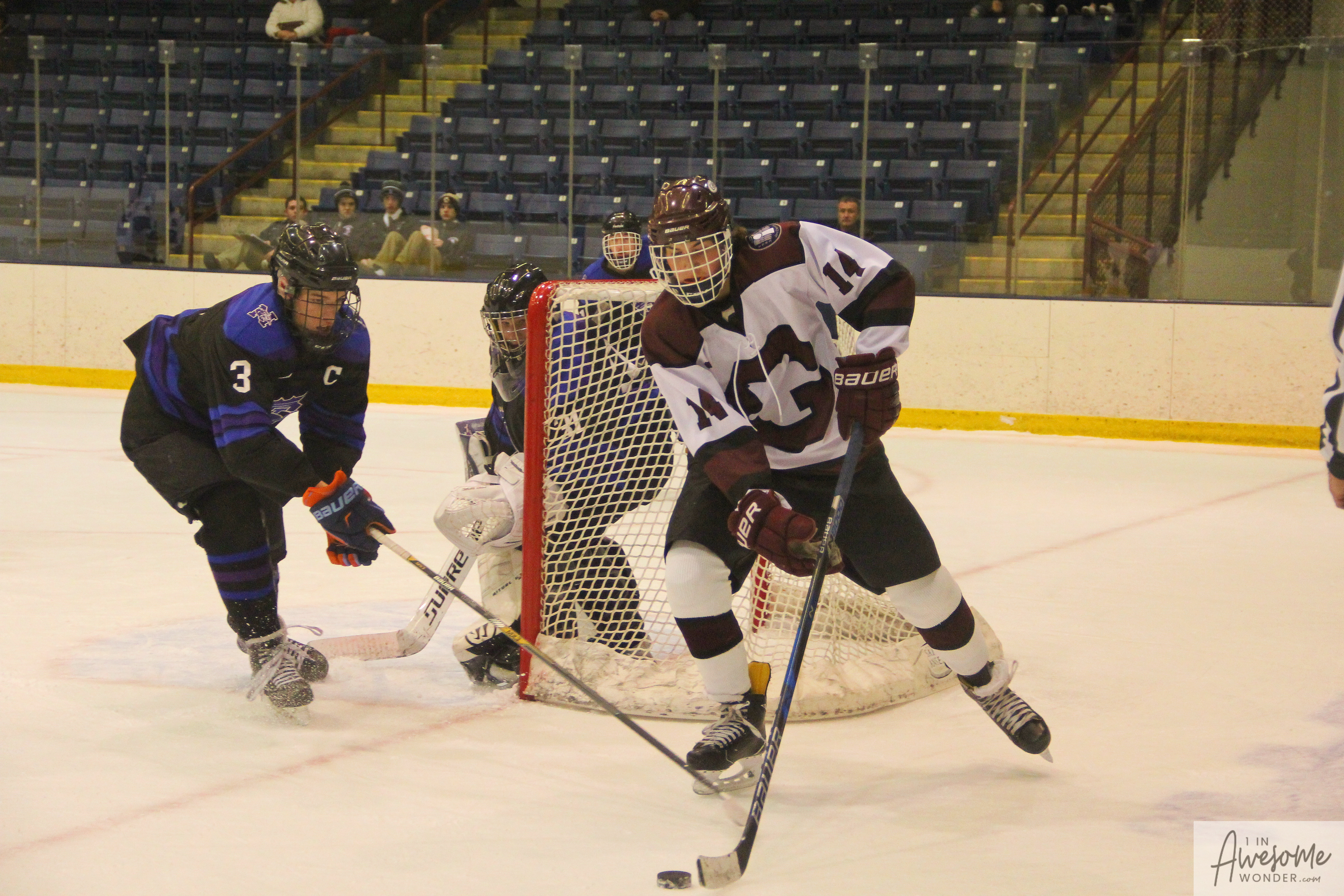 As the game wore on, NSP did their best to be strong on the puck, poking countless pucks away from Grizzlies while attempting to handle the puck. They filled shooting lanes and blocked shot after shot while defending their zone. The Kings took the body any chance they could, but they were working much harder to defend their end than Goffstown was, purely out of necessity. The second period featured no scoring, one penalty (NSP’s Nolan Harvey – Interference), and a 10-4 shot advantage for Goffstown. There was really nothing to report on the score sheet other than the solo penalty. That said, there is always something happening that is in the depths of defining each and every game. While the Grizzlies could have been getting frustrated with how much time they were in the offensive end with nothing to show for it, they were turning over three lines, shift after shift after shift. Trust me, this usually adds up over the course of a game, similar to a football team that extends long drives up and down the football field, forcing the opposition’s defense to rack up long periods of hard, stressed play in defensive mode. Not only that, but it seemed that neither team was getting any “luck” with the way the puck was bouncing.