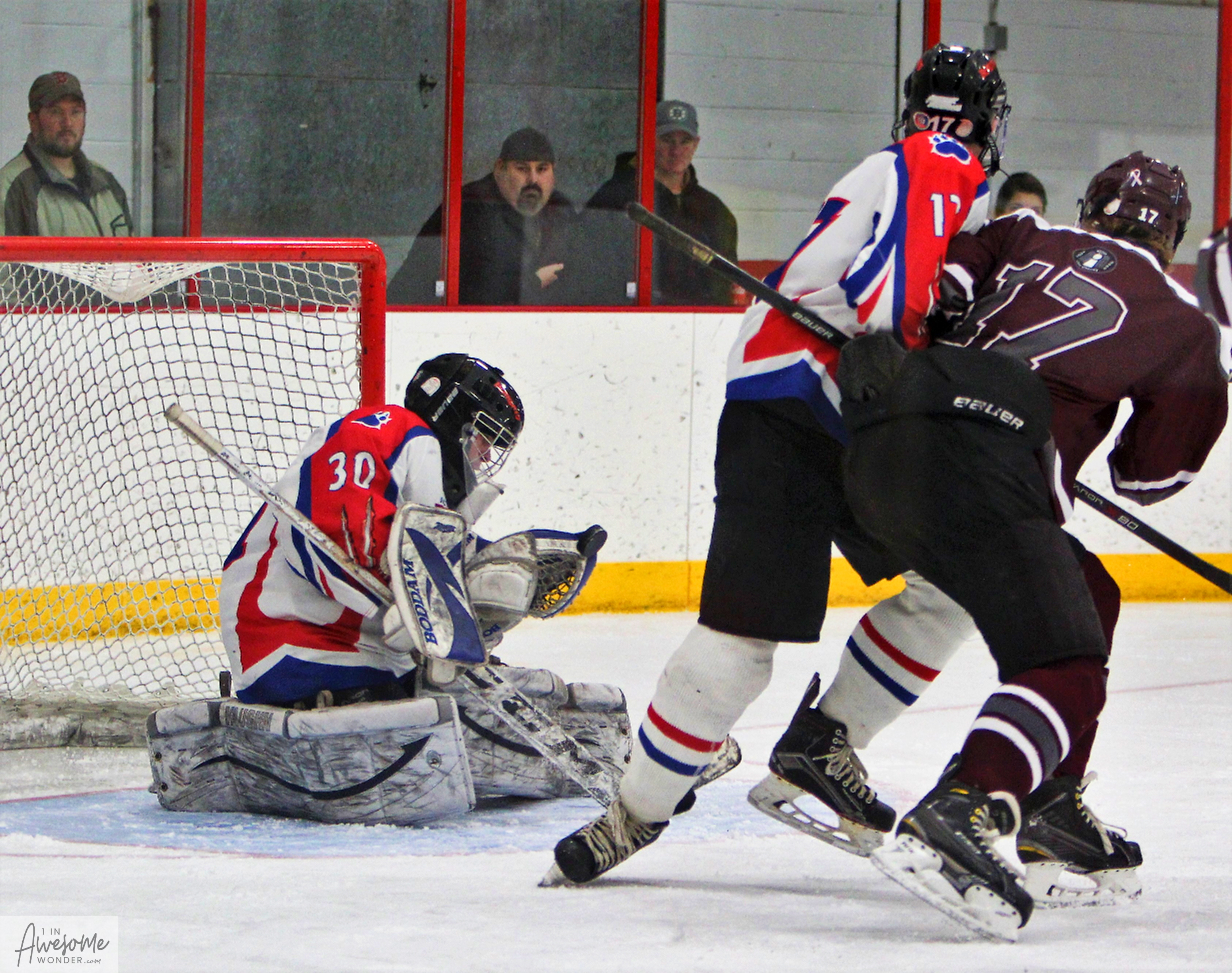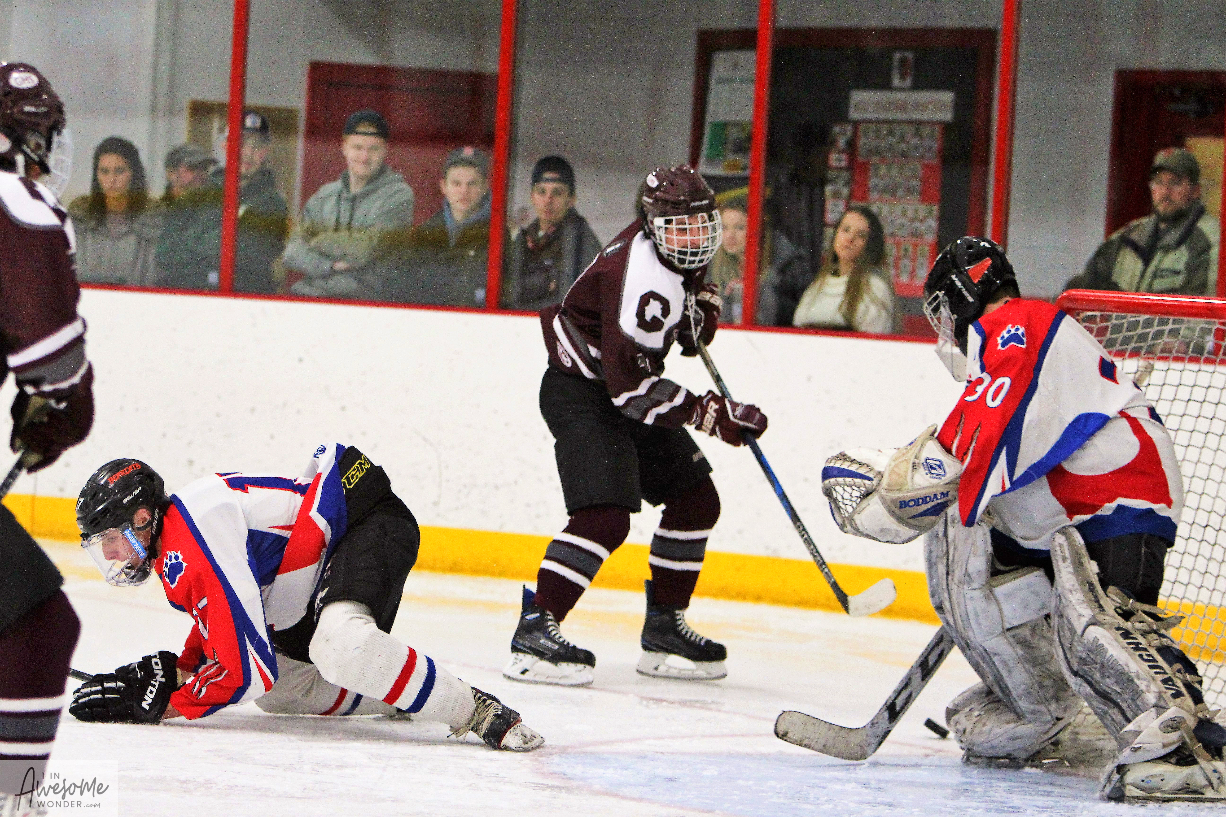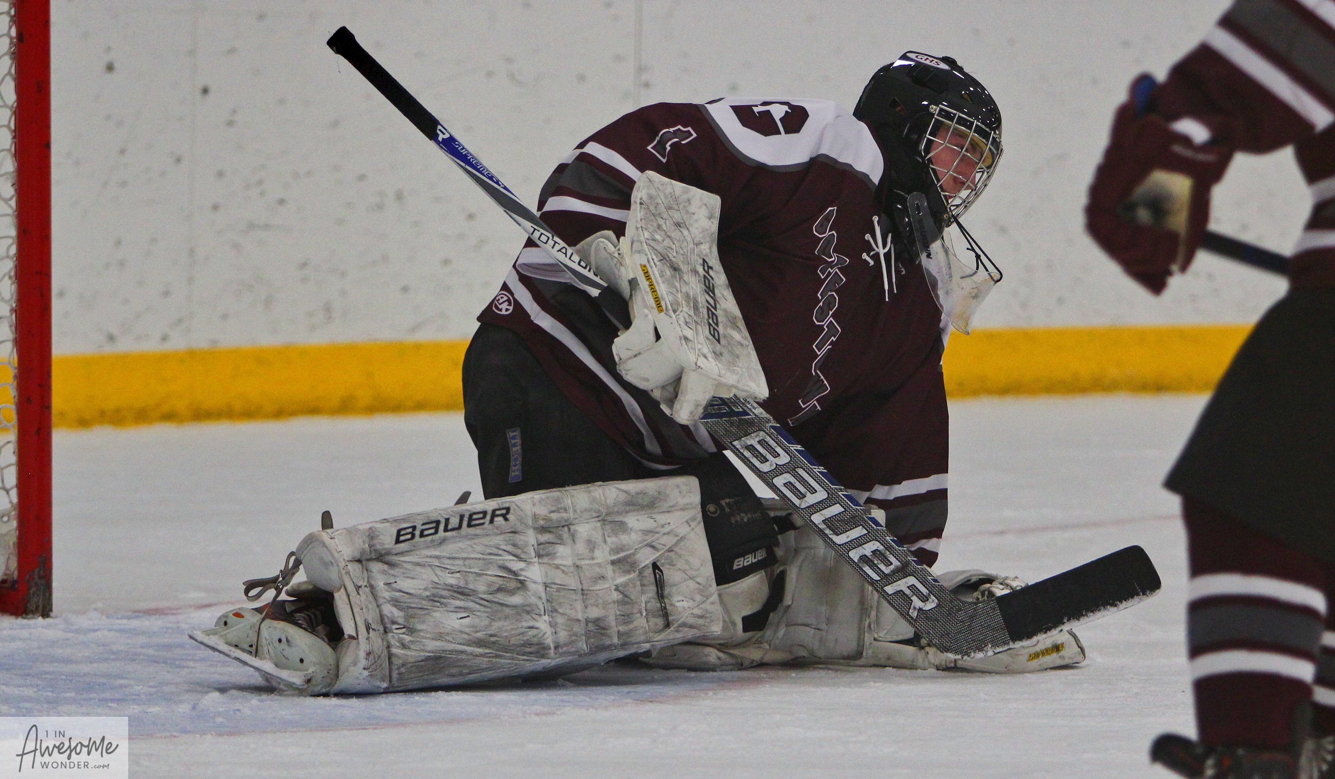 To expand on a few things, first Somersworth-Coe-Brown has just one senior on their roster, and if the remaining players all come back, this group is going to be very difficult to beat. Second, Goffstown held the puck in the offensive zone for minutes at a time in all three periods, as SCB was content enough to keep all they could to the outside and to let Kevin Baker a good look at shots. The other thing that came from their defensive approach was that the Grizzlies weren’t able to get Baker moving side-to-side, and when he could square up, he saved just about everything he saw. That being said, the visitors scored a powerplay goal, a shorthanded goal, and 3 even strength goals, which speaks to their abilities in many different scenarios. Kyle LaSella made 18 saves en route to the win on the road.