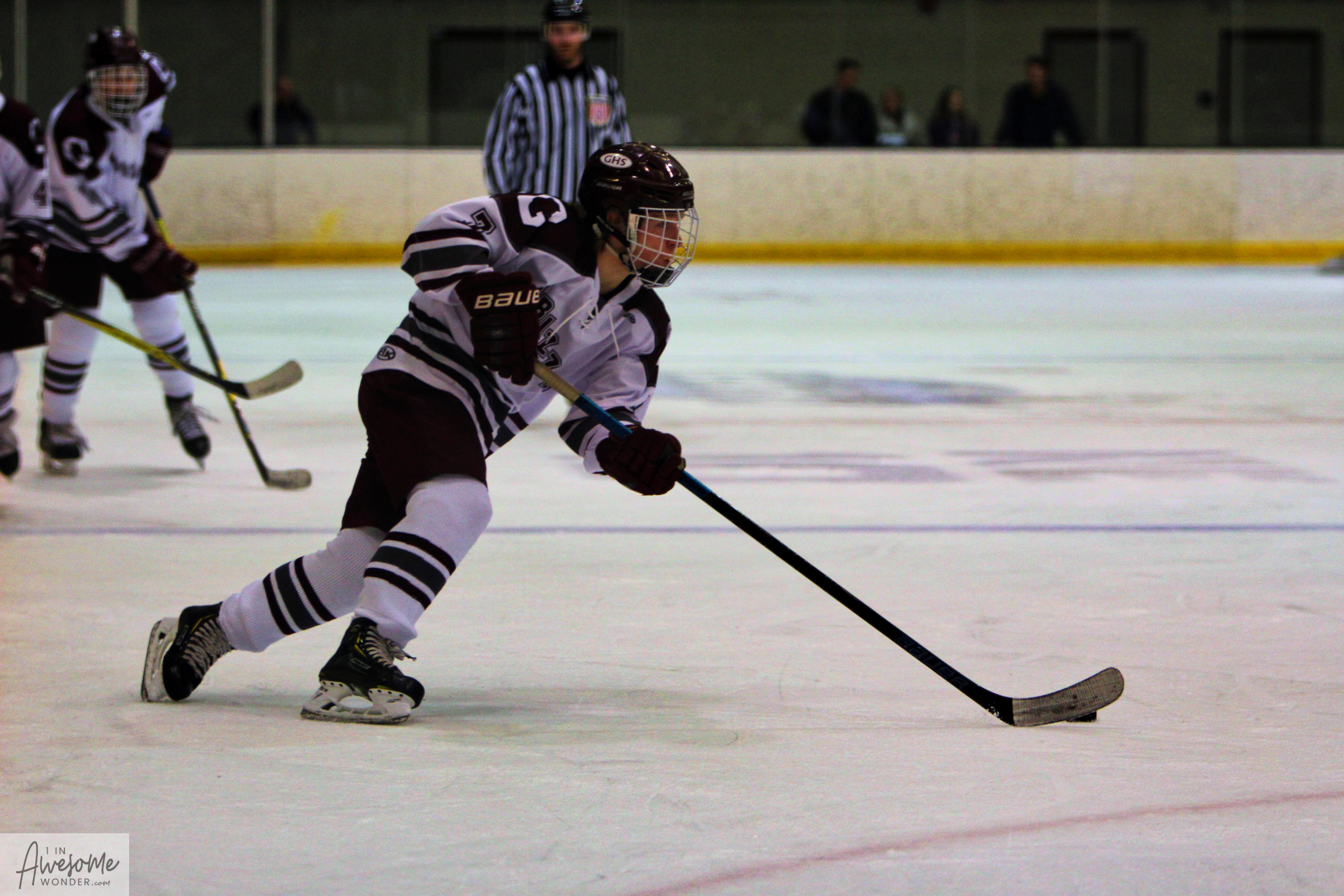 Griffin Cook starts the rush up ice against Spaulding. 2 (Photo by Charron)