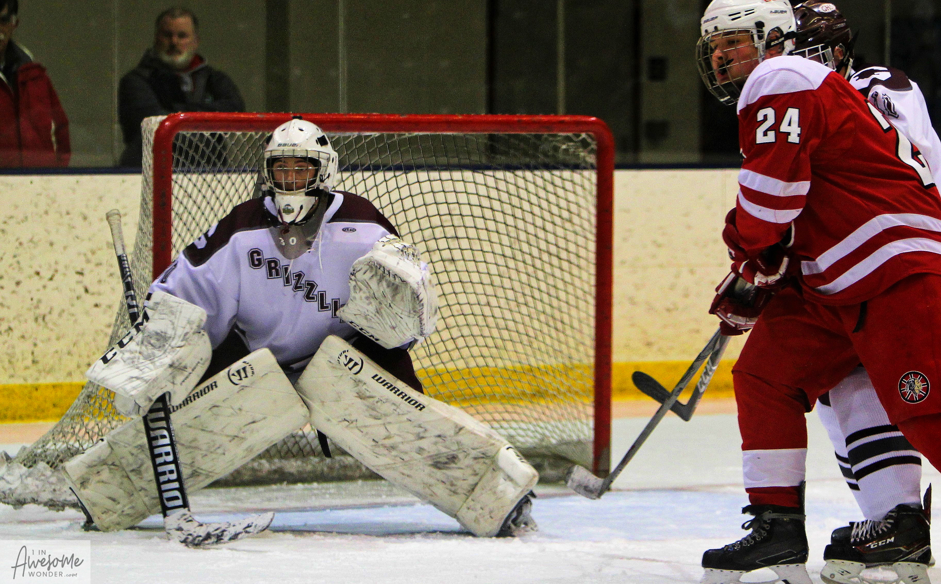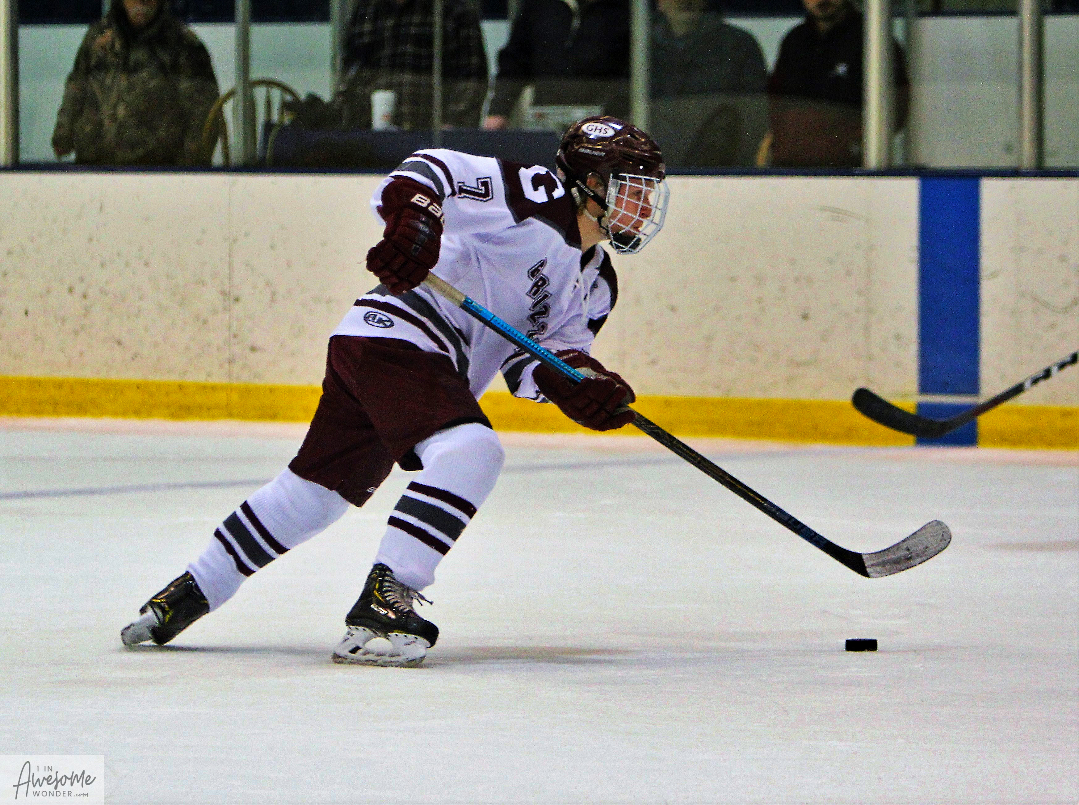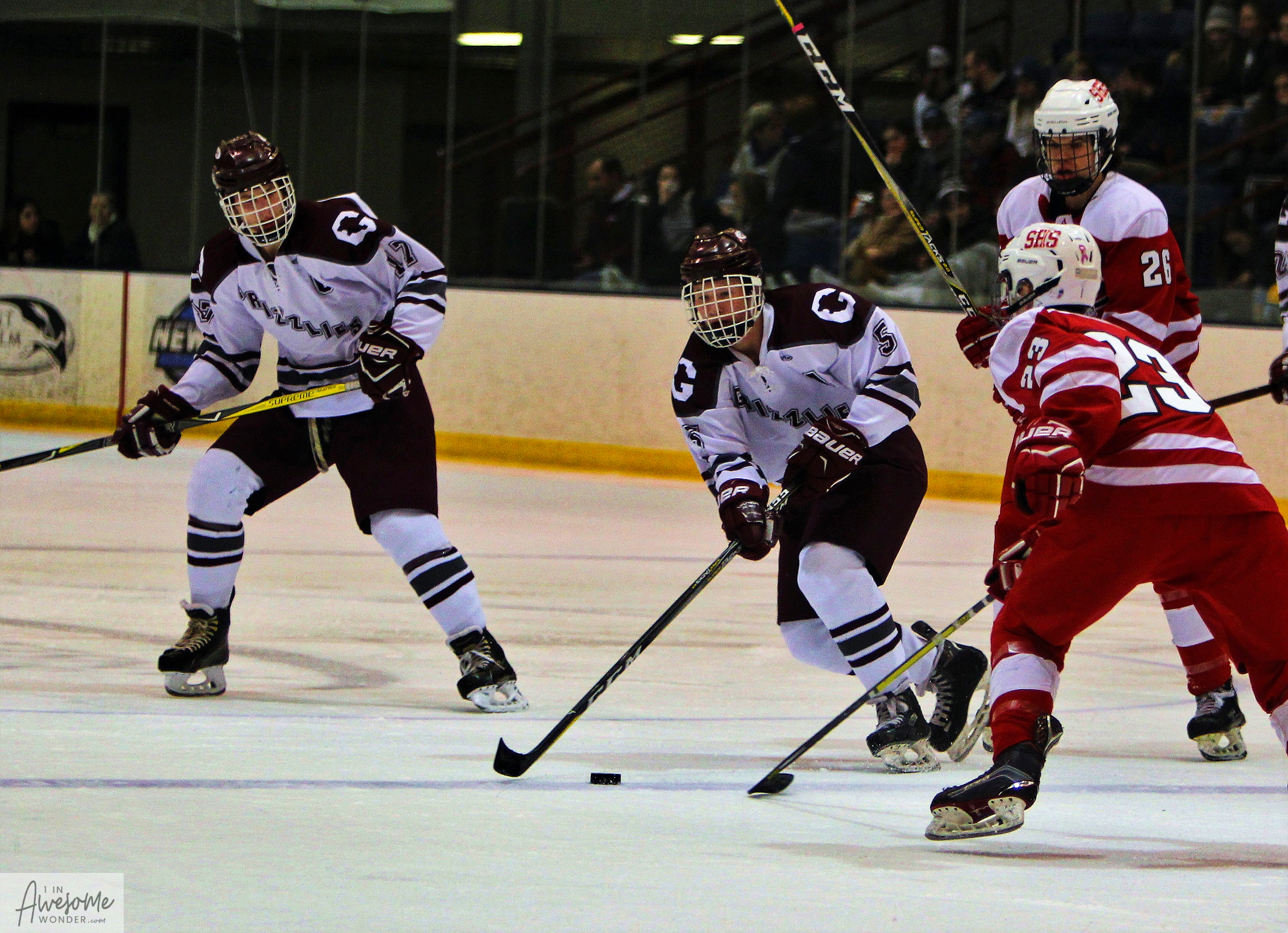 It’s always good to be home. Last night the Goffstown Grizzlies hockey team returned home after completing a hard-fought road win less than 24 hours earlier. And it was apparent early that Goffstown definitely had a bit more jump in their step. The Grizzlies erased an early 1-0 deficit and skated with pace and resolve to a 5-1 win over Spaulding.