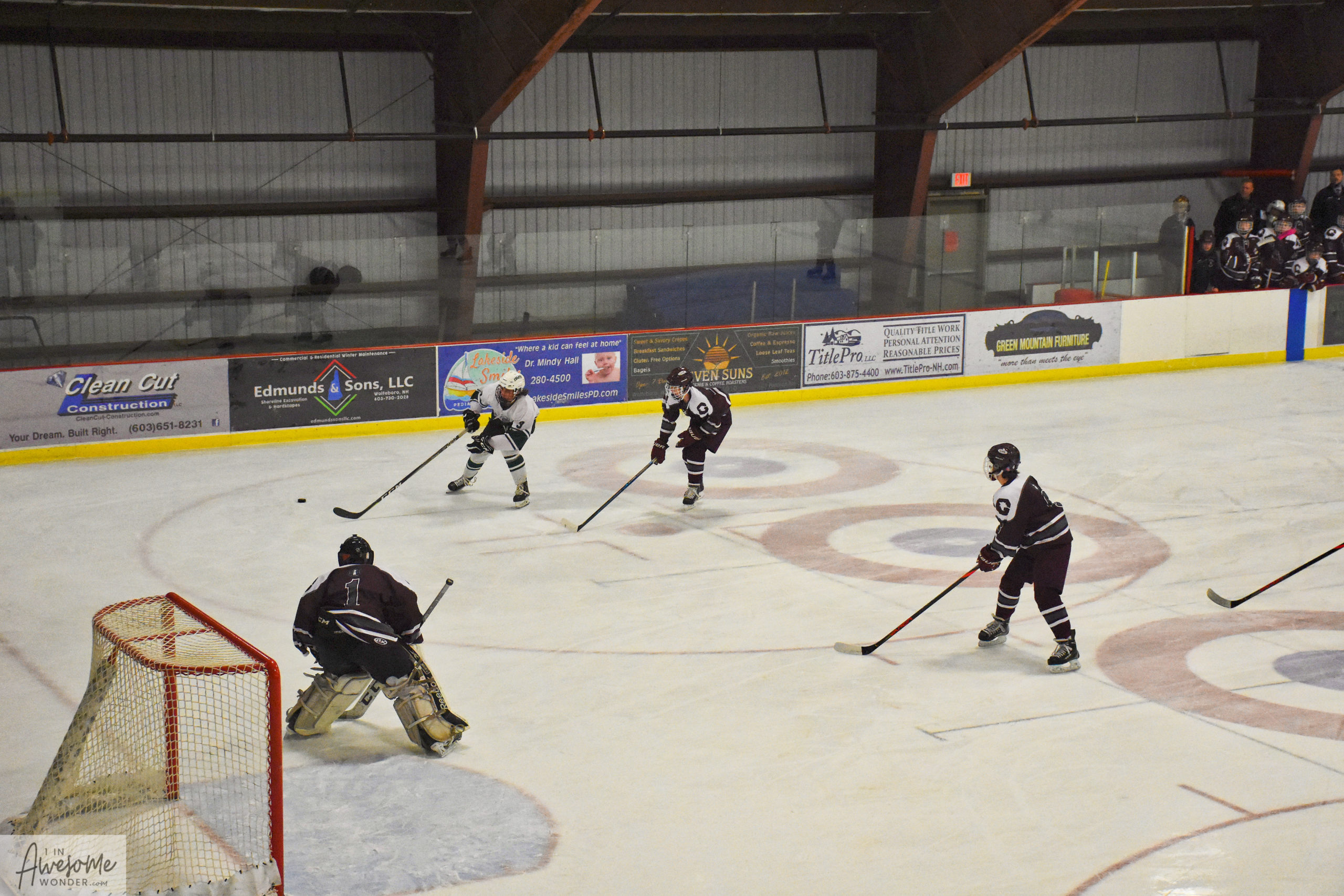 In one of the more odd hockey games you might ever see, Goffstown traveled to Kingswood to play an always tough opponent on the road. Goffstown dominated the execution of scoring chances for the first 29:55 of the game, taking a 5-0 lead. Then, Kingswood scored 5 goals over a span of 7 minutes and 34.3 seconds to make this a 5-5 game with half a period to play. The Grizzlies managed get their switch flipped back on and won it, 6-5 with Grady Chretien’s fourth goal of the night at 12:31 of the third period.