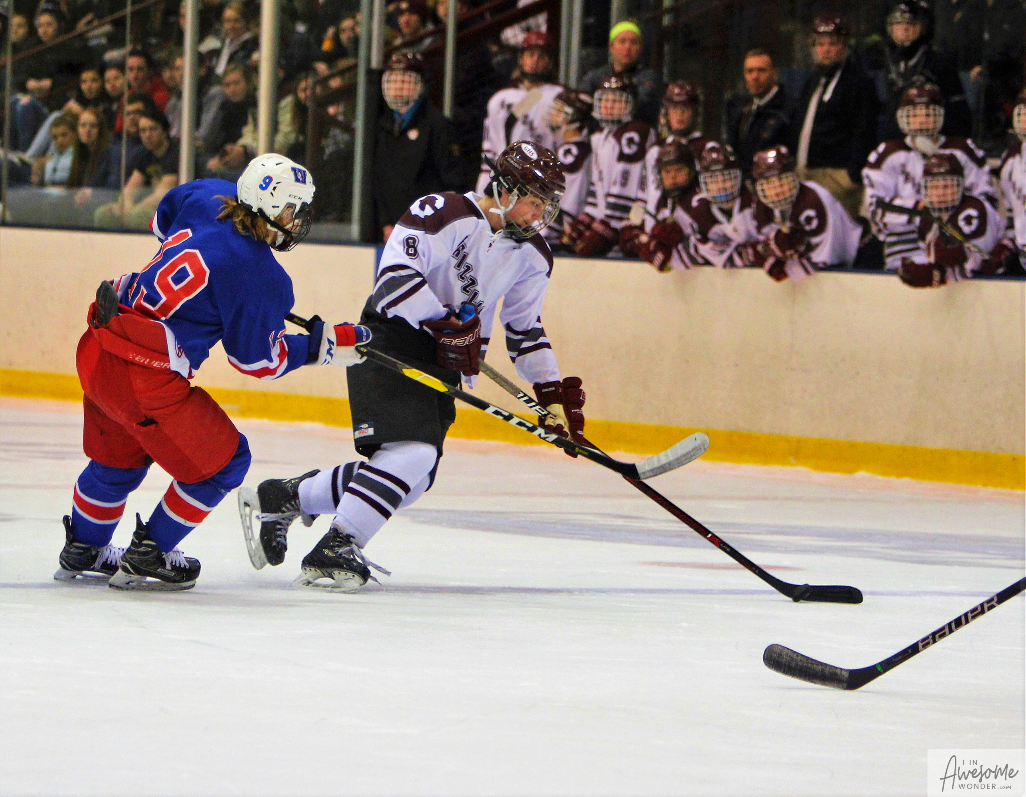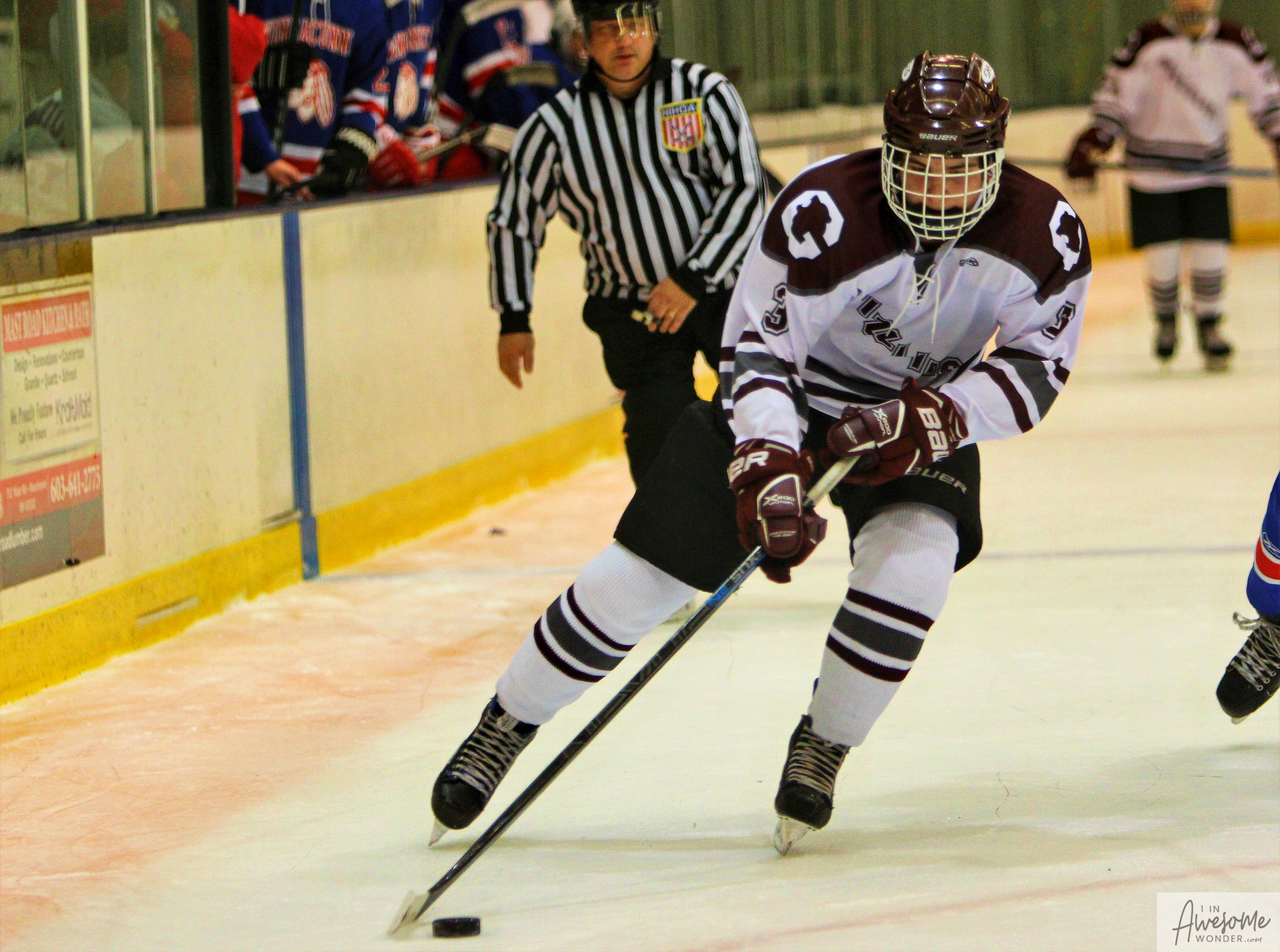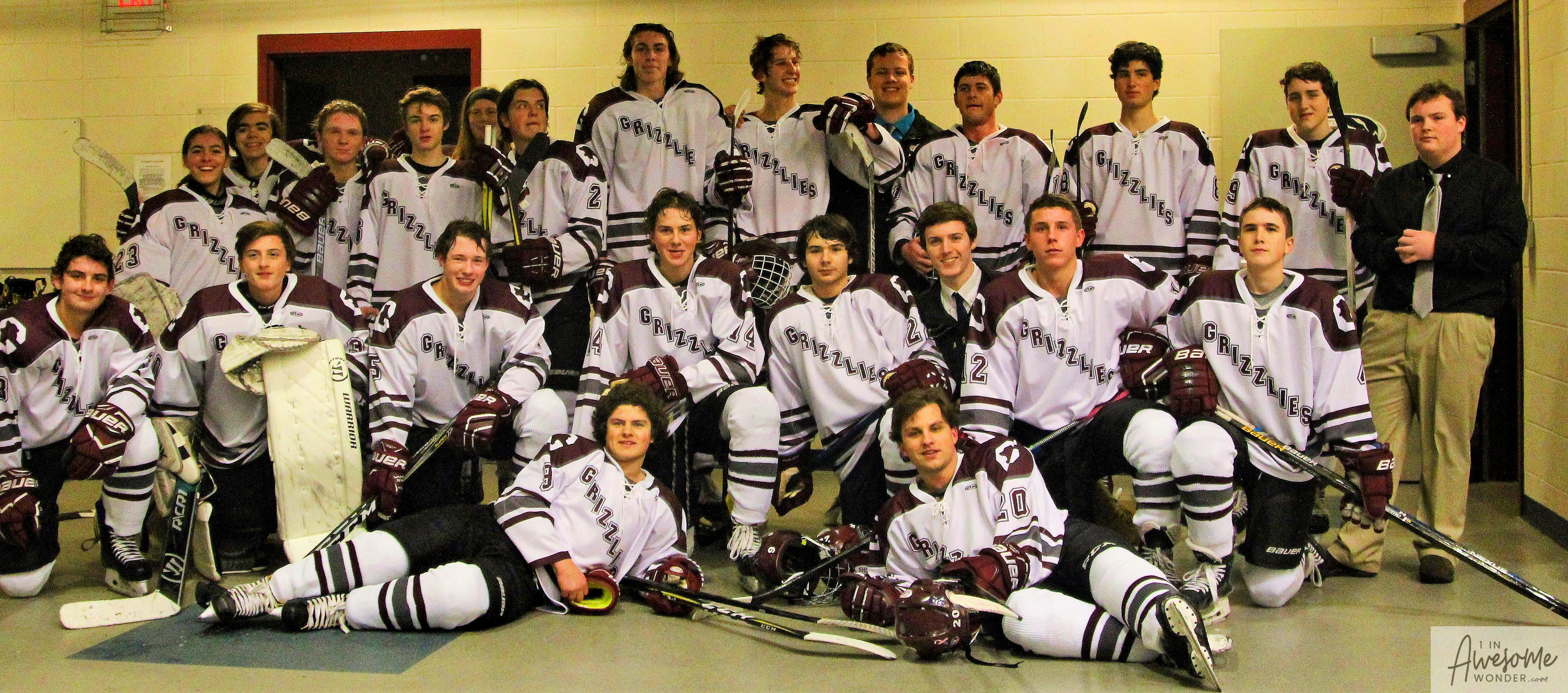 After all of that, there was a game to be played. And what a game it was! The first period was good enough I suppose, a couple of goals, a few penalties, and a Goffstown 13-4 advantage in shots on goal. Winnacunnet scored first when Carter Renaud scored an unassisted goal on the Warriors’ third shot of the game, off of a Goffstown turnover at 5:11 of the period. Grady Chretien answered on the power play at 7:35, with assists going to Colin Burke and Colby Gamache on a beautiful hockey sequence. Just a few seconds later, Winnacunnet’s Braeden Logue barreled in from the left side and rang a shot off of the far post. Then in the closing minute of the period, Madeline Sage made a huge save to keep the score at 1-1 after another Grizzlie turnover. The horn would sound with the score tied 1-1.