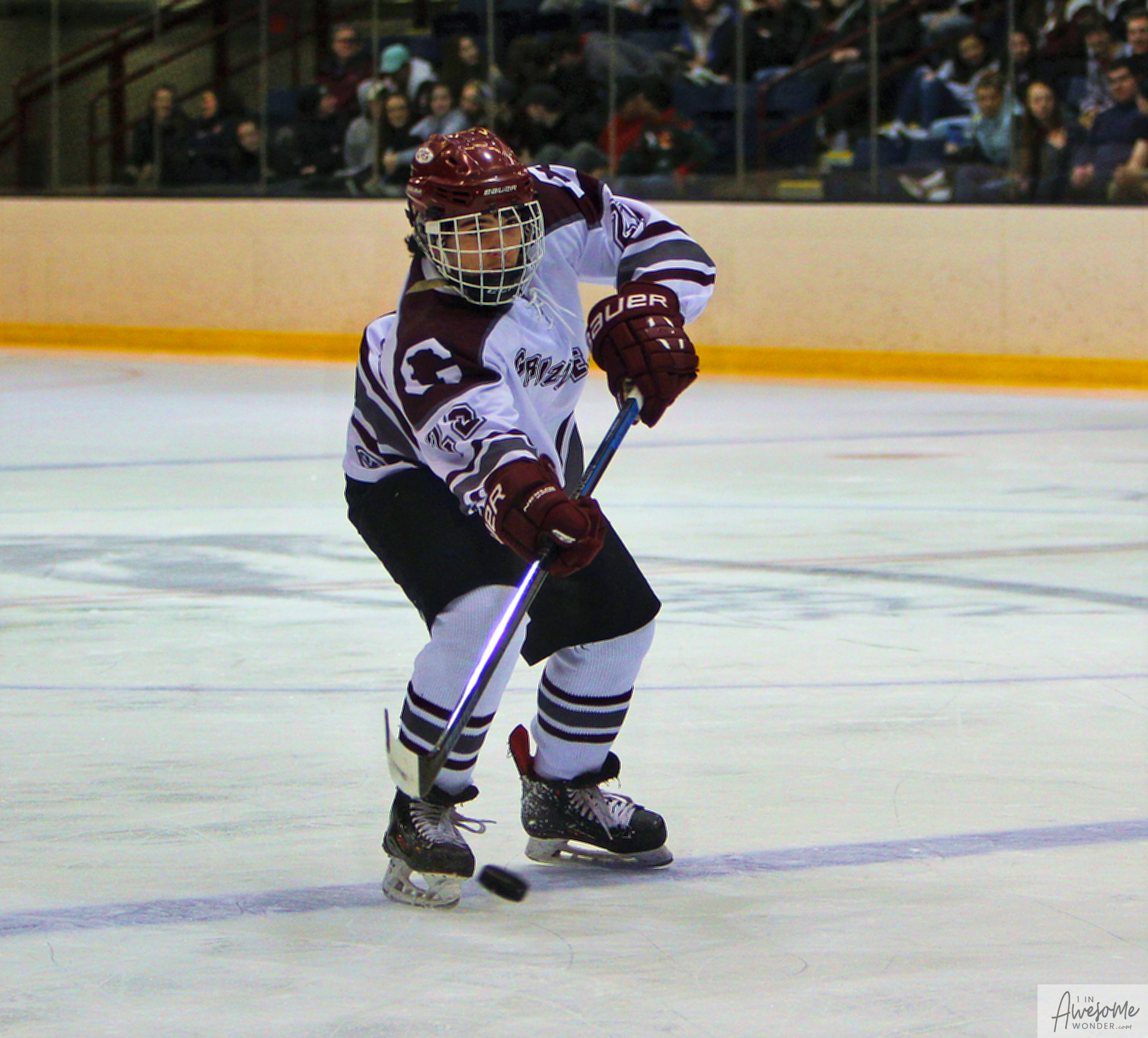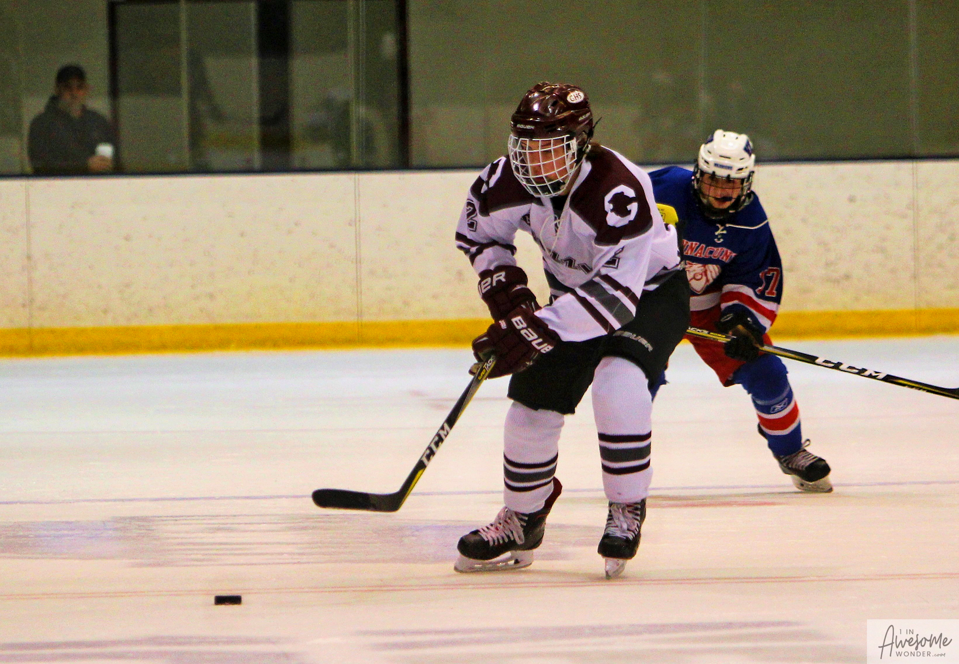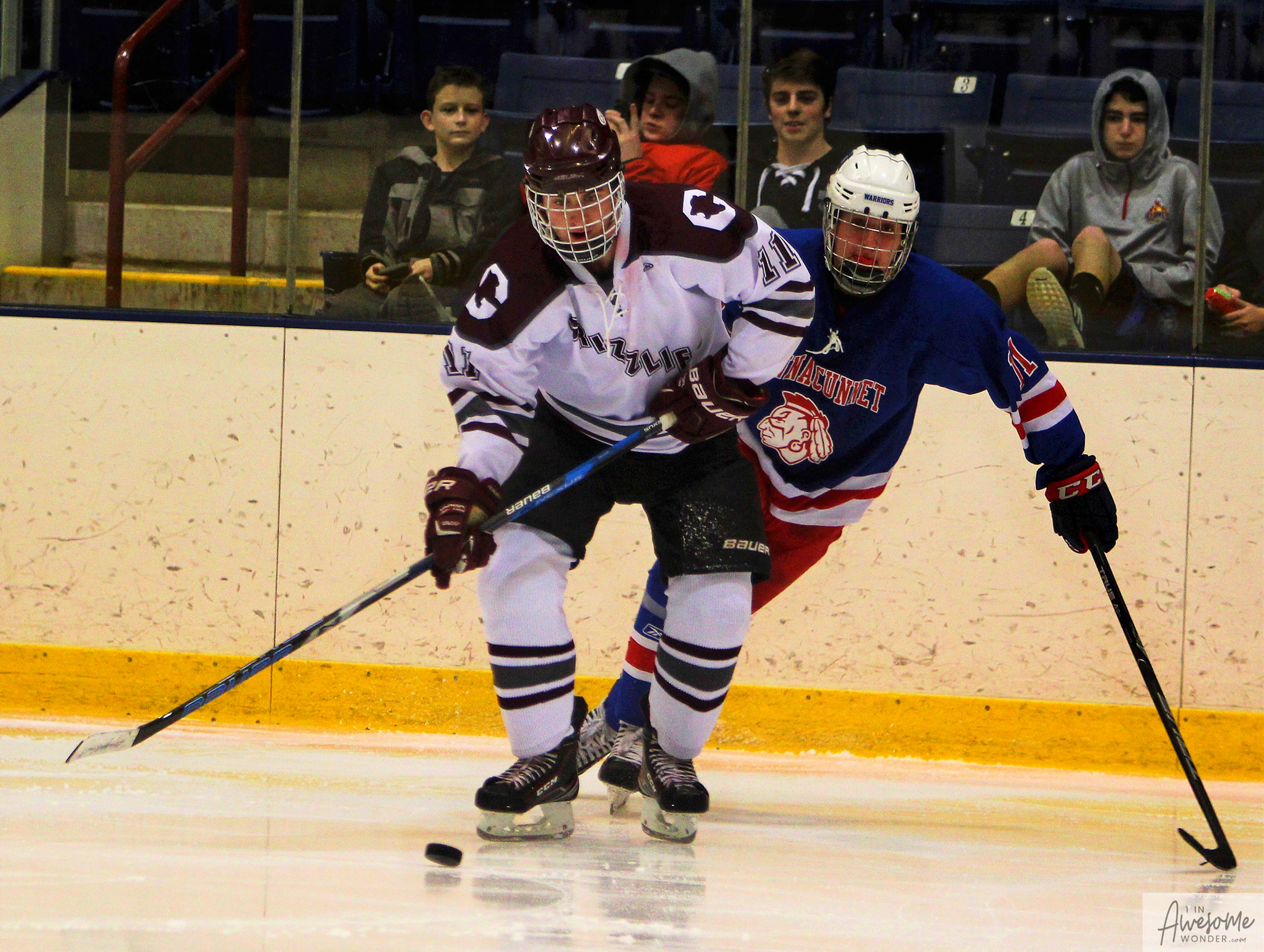 After all of that, there was a game to be played. And what a game it was! The first period was good enough I suppose, a couple of goals, a few penalties, and a Goffstown 13-4 advantage in shots on goal. Winnacunnet scored first when Carter Renaud scored an unassisted goal on the Warriors’ third shot of the game, off of a Goffstown turnover at 5:11 of the period. Grady Chretien answered on the power play at 7:35, with assists going to Colin Burke and Colby Gamache on a beautiful hockey sequence. Just a few seconds later, Winnacunnet’s Braeden Logue barreled in from the left side and rang a shot off of the far post. Then in the closing minute of the period, Madeline Sage made a huge save to keep the score at 1-1 after another Grizzlie turnover. The horn would sound with the score tied 1-1.