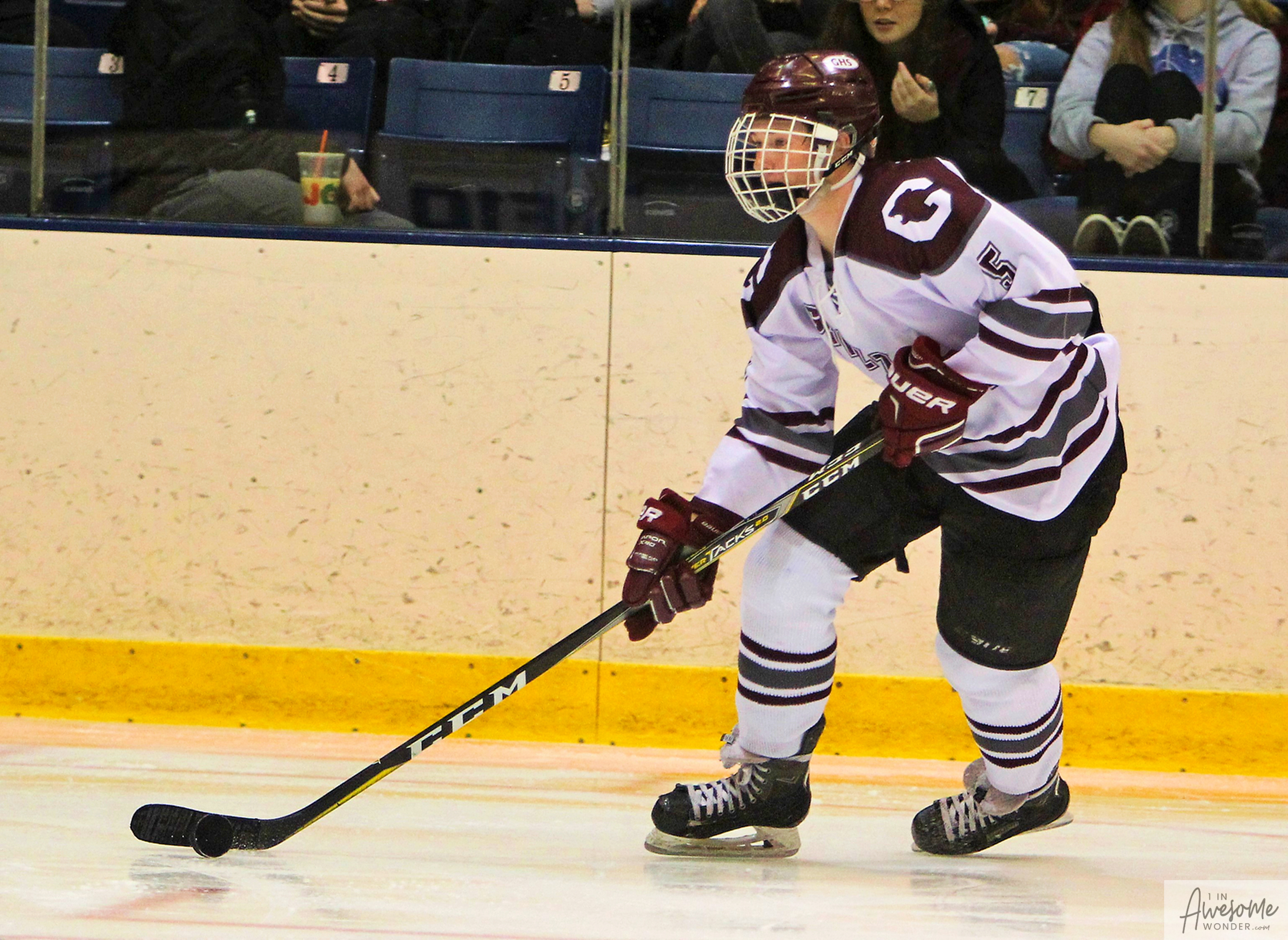 The second period was dominated on the scoreboard by the visitors from Hampton, NH. Winnacunnet scored 3 goals on just 8 shots to jump out to a 4-2 lead after two periods. Braeden Logue scored a pair of goals and assisted on another in the period. On the power play, after a penalty on the captain, Sebastian Beal, Logue needed just 8 seconds of the advantage to put the Warriors up 2-1, assisted by Dan Giacalone off of the faceoff. Again, Grady Chretien answered, this time with his second goal of the game, set up on a gorgeous lead pass from Colin Burke at 6:16. Then at 7:28 of the period goaltender Jack Ellis made two of his many outstanding saves against Sebastian Beal at point-blank range.