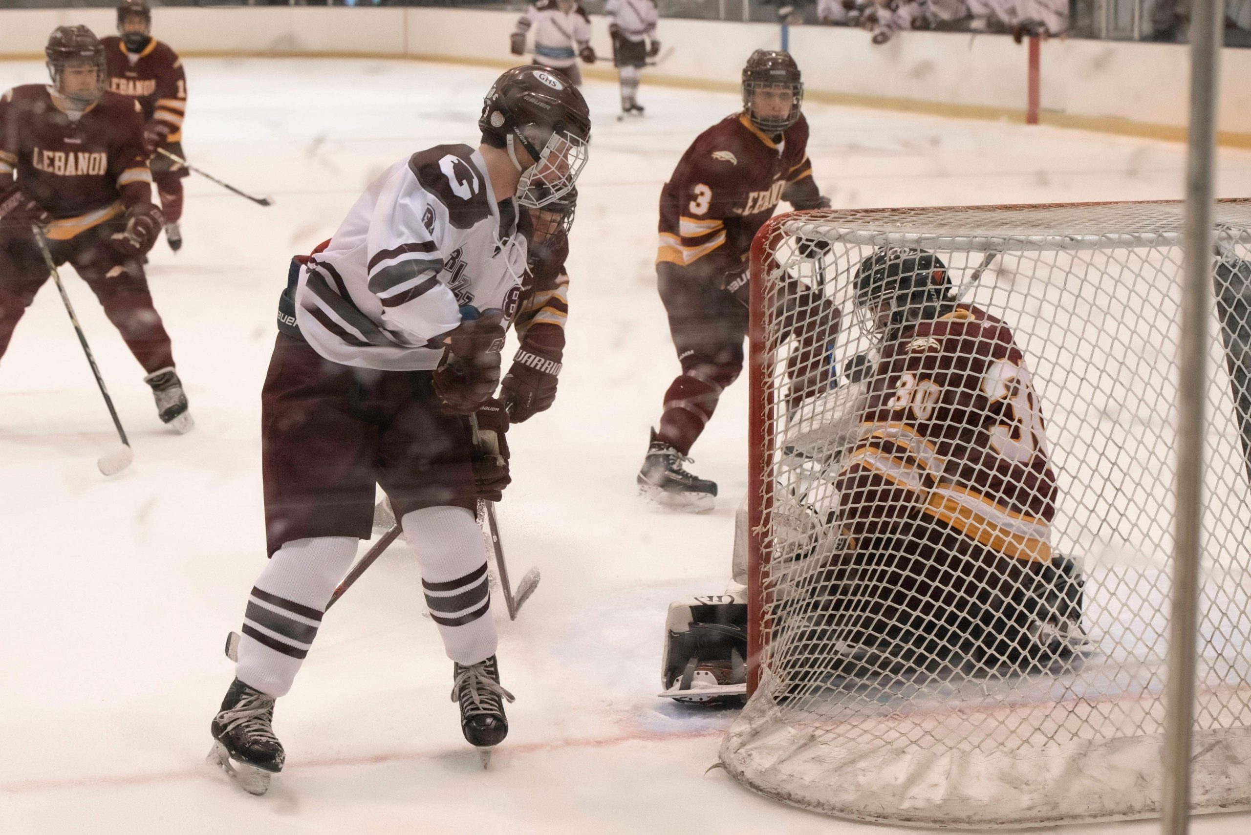 Goffstown started the game like they were warm and ready to go. Actually, they started like they were more like red hot and ready to go. By the time 10:21 of game time had run off of the clock the Grizzlies were up 4-0 and were shooting at an astounding 50% clip with four goals on eight shots. Lebanon took their timeout in the opening period and made a change in net.