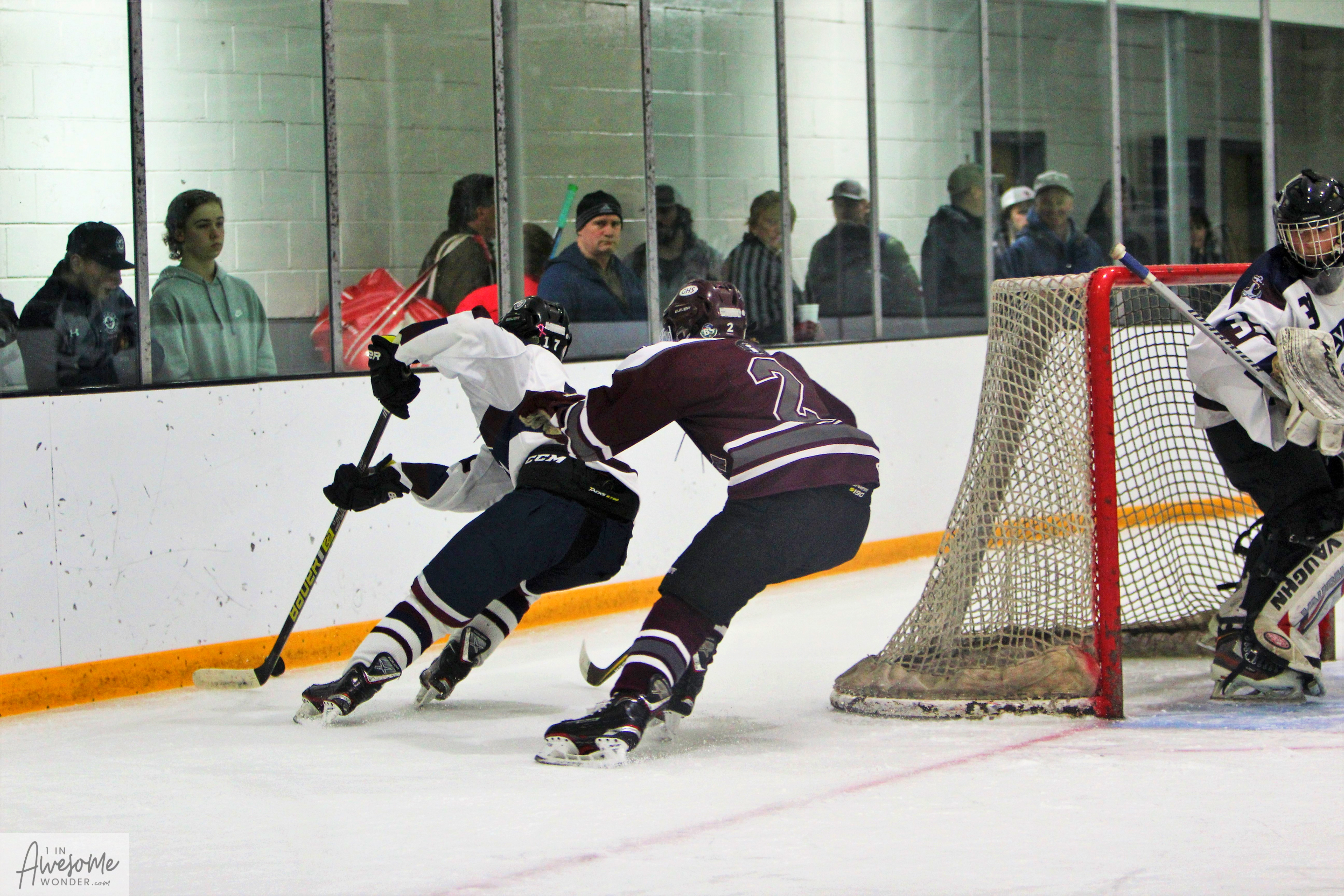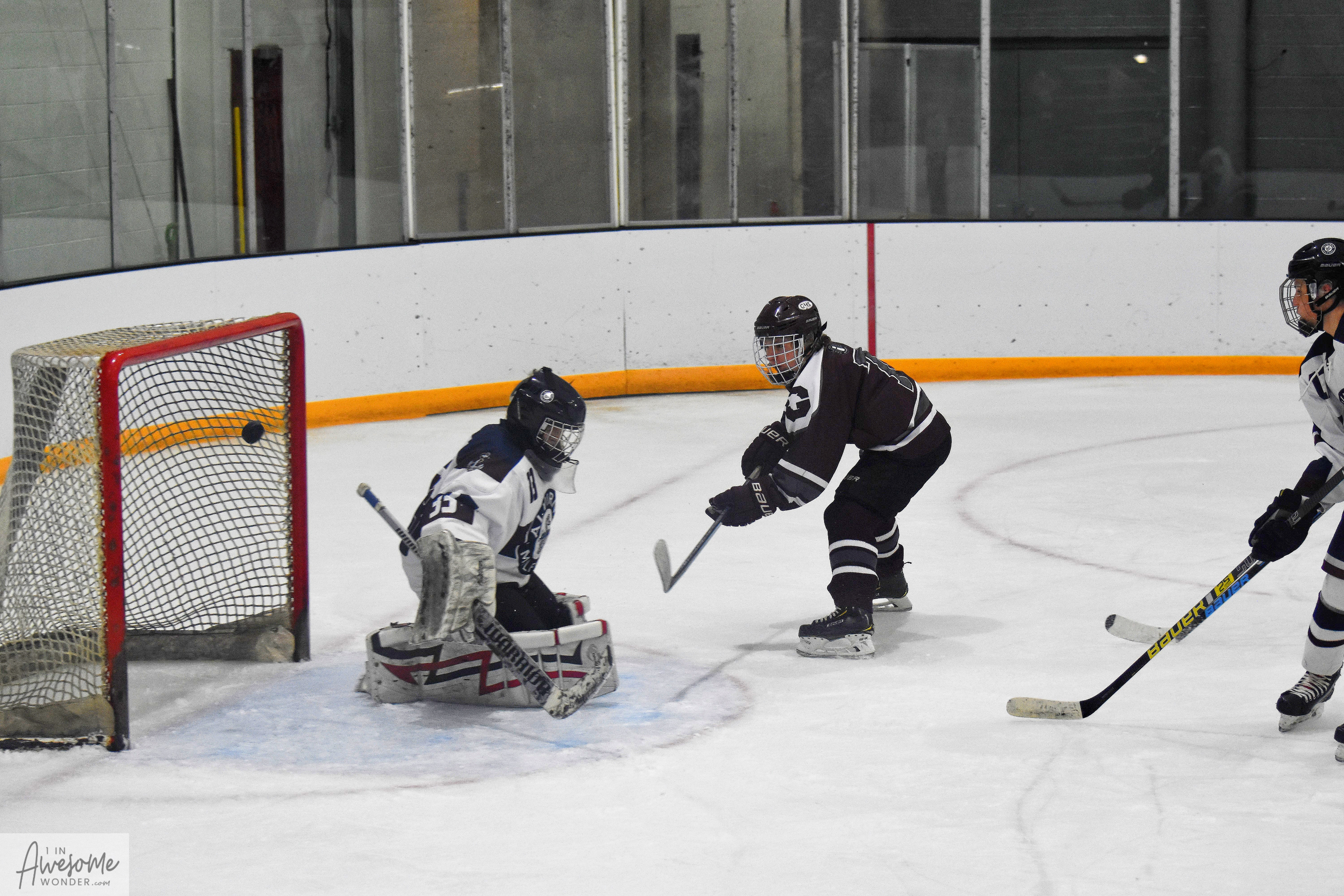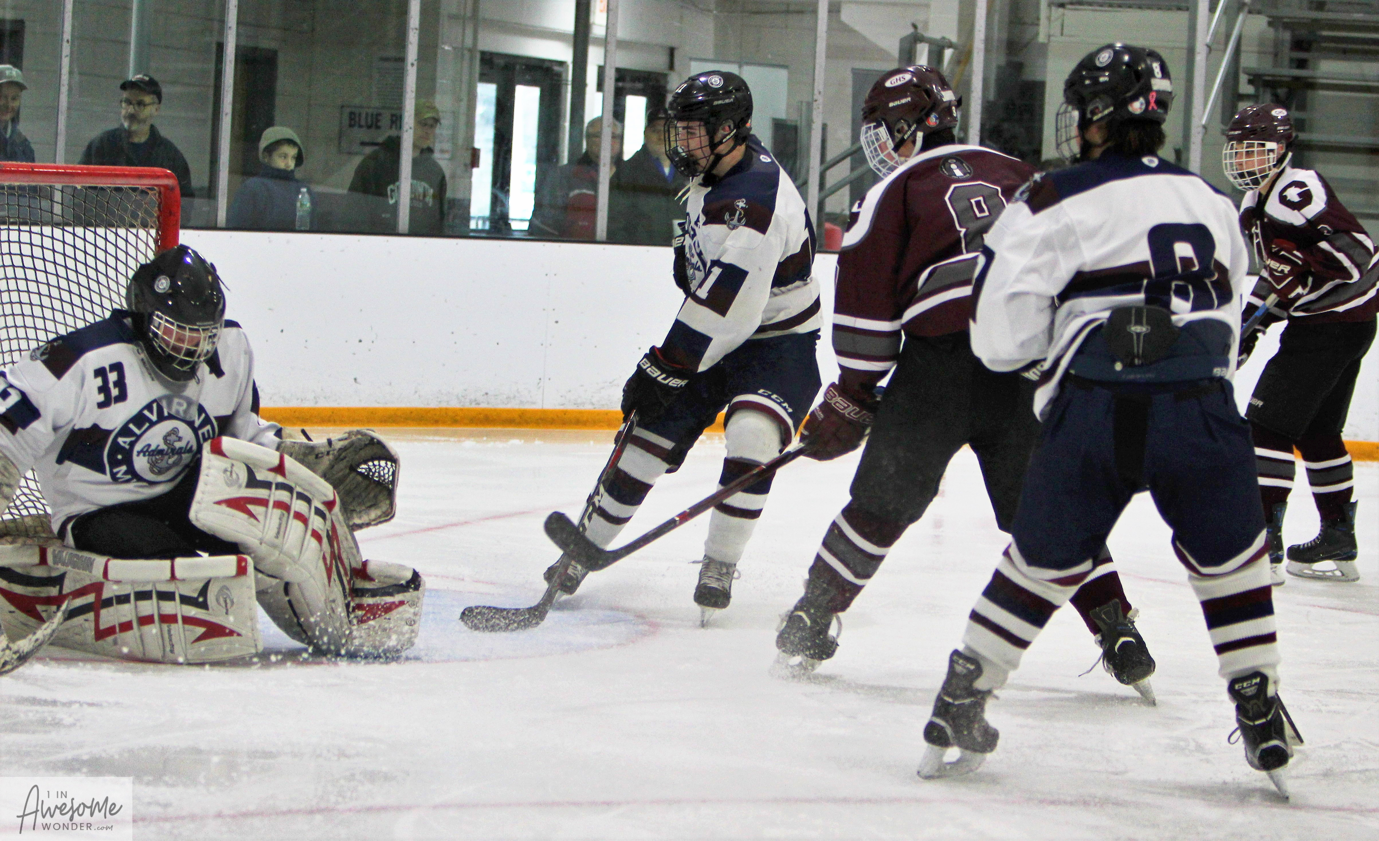 As a result of the penalties at the end of the 2nd period, the final period started with some 4-on-4 play for 1:48. Griffin Cook scored an unassisted goal at 1:35 to open up a 3-goal lead for the Grizzlies. Then Goffstown salted away the game with 3 powerplay goals in a span of 2:34. Colby Wright got his first career goal on a gorgeous feed from Grady Chretien, finding Wright on the doorstep for the tap in. Then Colin Burke snagged a goal that was set up by Chretien and Gamache. Goffstown’s final goal came after Isaac McGregor chipped the puck behind his own net, over to Jacob Noonan. Noonan turned up ice and made a beautiful outlet pass to Luke Ouellette up the left wing. Ouellette carried the puck into the neutral zone and let a shot go, collected his own rebound, and scored at 4:36. Zach Partridge took over in goal for Alvirne-Milford and made one save on the one shot he faced. Goffstown then took three penalties of their own which gave the momentum back to the Admirals but the spread was too wide. Levi Griffin scored a powerplay goal at 12:43 on a pass from Jake Natola. That was about it. Goffstown won it, 8-3, and led in shots 33-29.