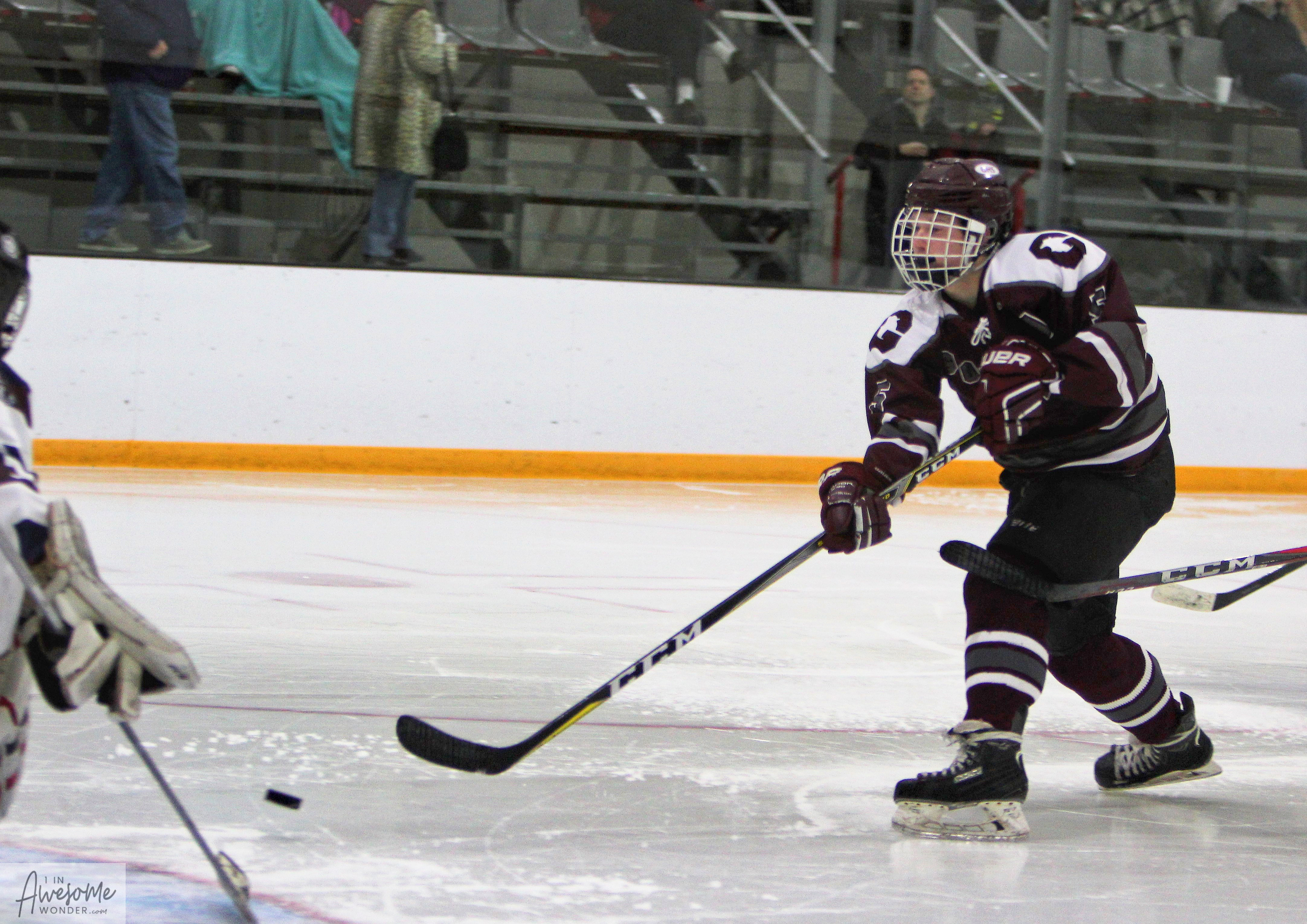 With Colin’s length and reach he actually took one shift in Tyngsboro and Nashua at the same time. (Photo by Charron)