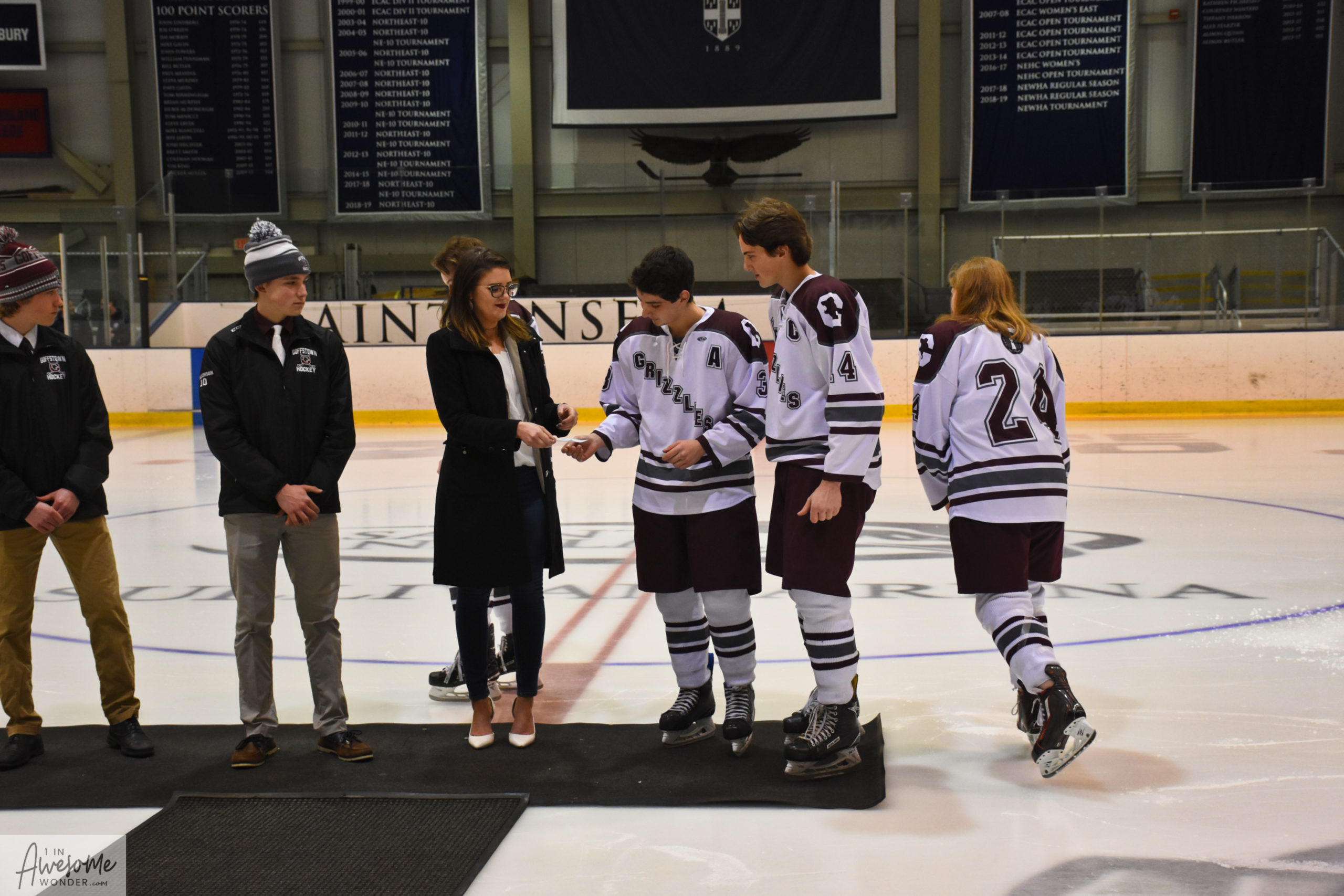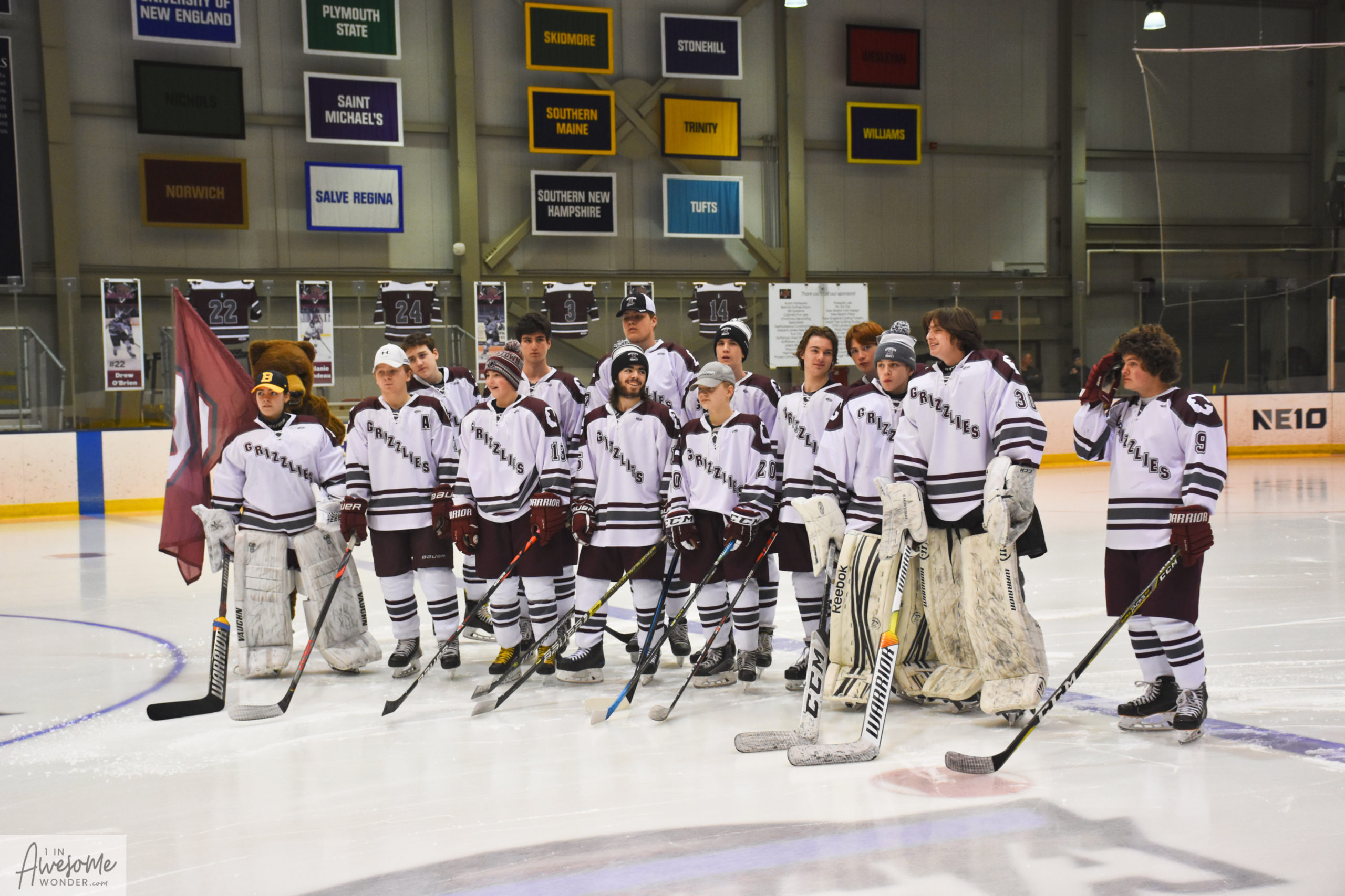 Oddly, I didn’t really make any notes during the game on Friday night because things were happening so fast. For starters, in a pre-game presentation, the Grizzlies recognized their four senior players and their families, they honored a senior’s dad who is battling poor health as we speak, we all paid respect to another senior’s dad who passed away nearly two years ago, we talked about the meaning of legacy, and told the story of volunteering efforts and fundraising for a cause, and remembered a military hero that was one of New Hampshire’s own. That was all before the National Anthem was sung by a man who holds each of the opponents on Friday night very dear to his heart.