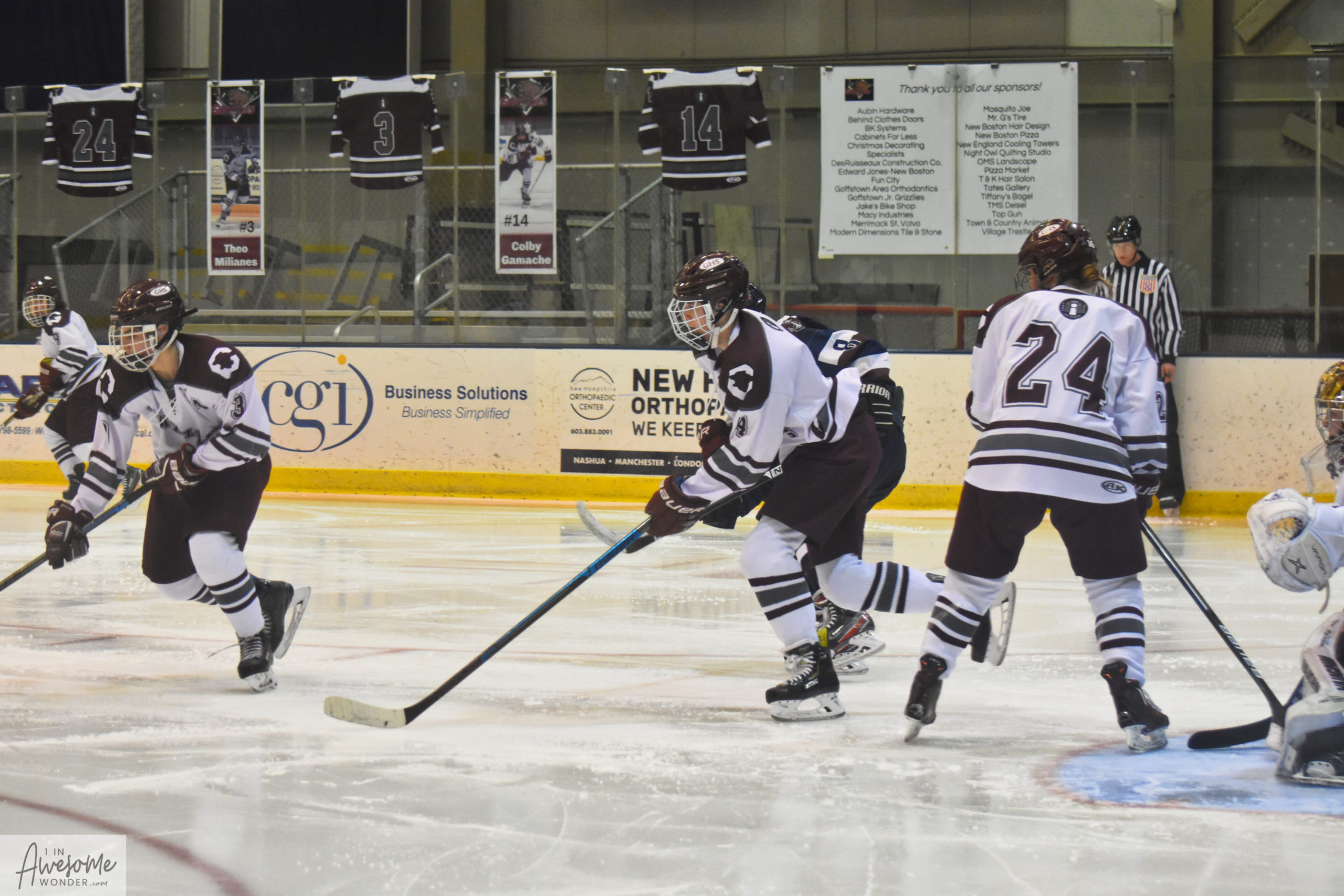 The third period was running time. There were 30 minutes in penalties called between the two teams, just 5 shots on goal, and somehow 3 more goals scored. It wasn’t the best looking period of hockey anyone has ever seen by a long shot. Zach Greer made the score 7-2 at 1:57 of the period with a goal set up by Sal Pace. Pace cleared the puck from his own end and hit Greer with the pass. Greer was stood up by Colby Wright but he continued to make a play on the puck from the right wing boards. The shot hit Wright in the skate, bounced, and hit off of the inside of Sage’s right pad for a goal from a near impossible angle. Goffstown answered at 4:39 when Sean Hunter scored his first career goal on a beautiful feed from Theo Milianes after Melanie Riendeau had cycled the puck down low to start the play. Somewhere between the 7:00 and 12:00 mark this game almost left the rails completely. At 14:37, on the power play, the Admirals scored when Dylan Jillson rambled in all alone and scored to make the final score, 8-3.