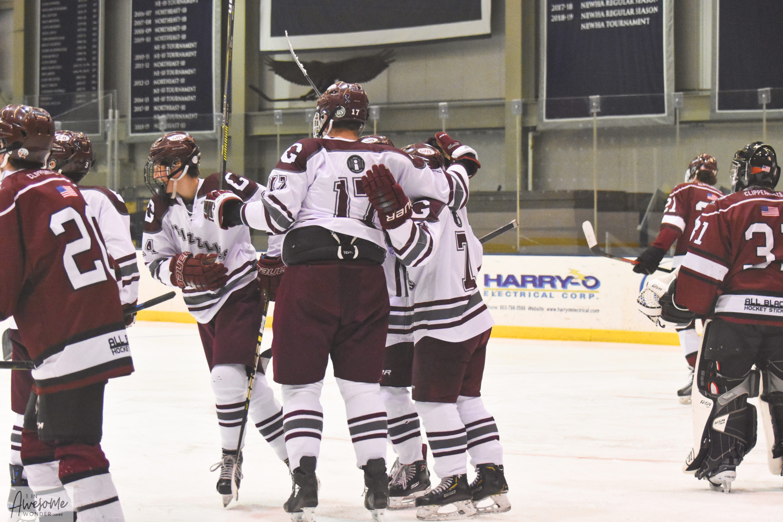 Portsmouth-Newmarket called their timeout and pulled Jack Bussiere from the net after the timeout. It took twenty seconds for Goffstown to slam the door when Grady Chretien nailed an empty net goal on a nice pass from Drew O’Brien after Xavier Bibaud broke up the play in the his own corner and pushed the puck toward the half wall. All in all, the Grizzlies had 40 shots on goal to just 19 for the group from the seacoast. On the other hand, Portsmouth-Newmarket didn’t need a lot of shots to cash in on 4 of 6 power plays.