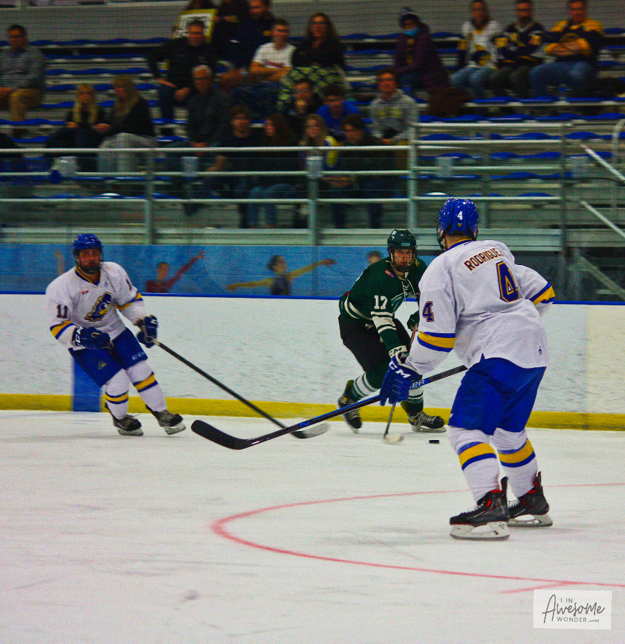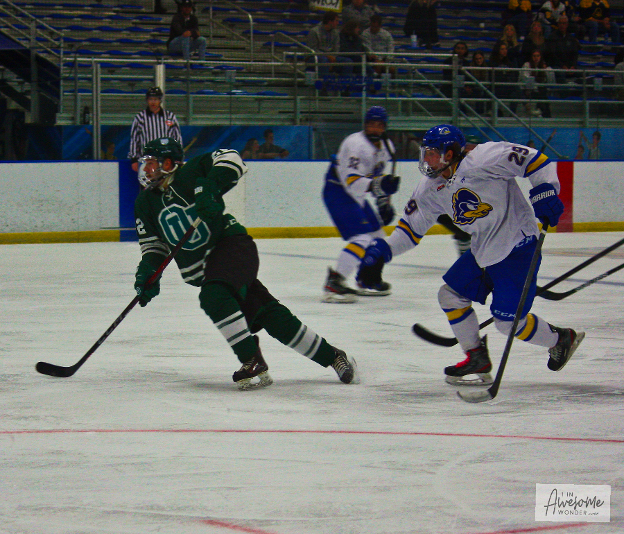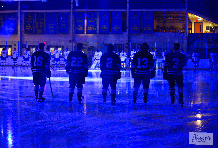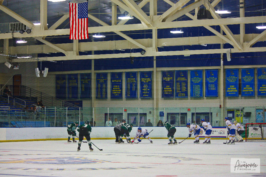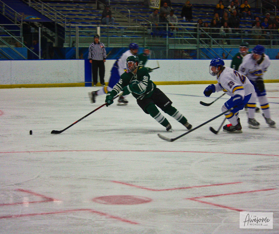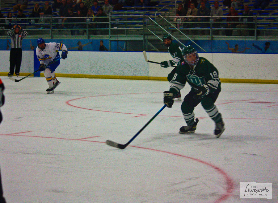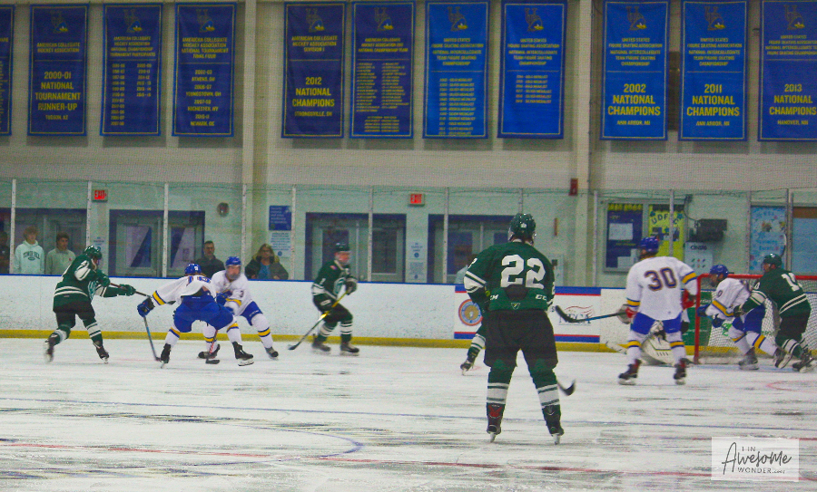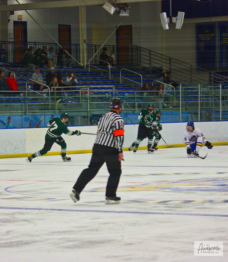Mainly, I was there to spend some time with our college senior, hockey player, winger, son. And to watch some good hockey. The ‘Fred Rust Ice Arena’ right on the university campus, is a great place to watch a game. They do a pretty good job in game presentation as well.