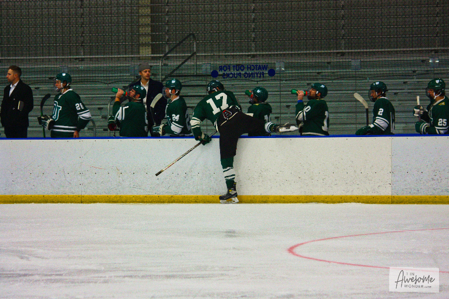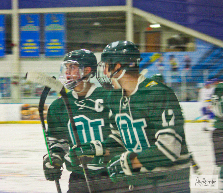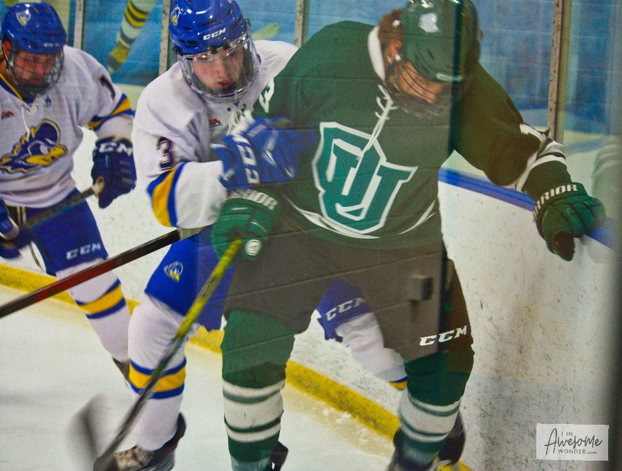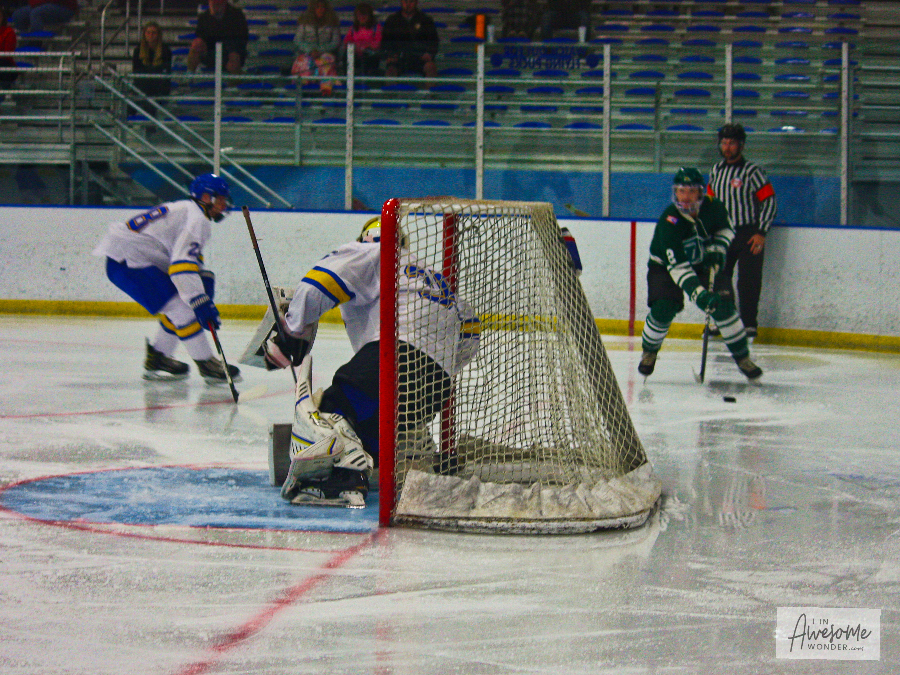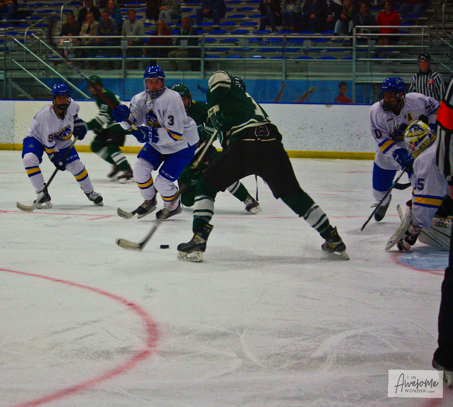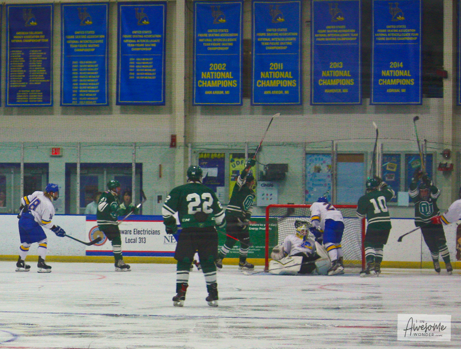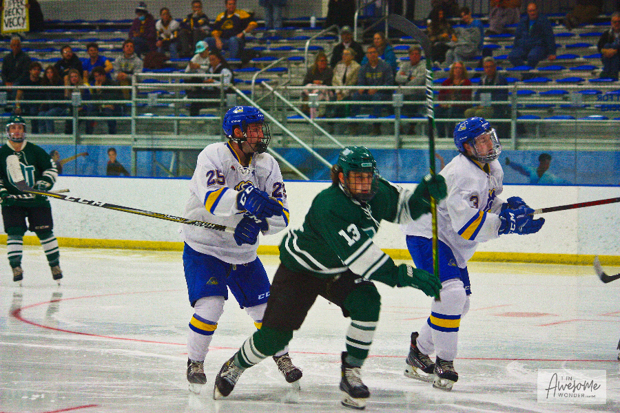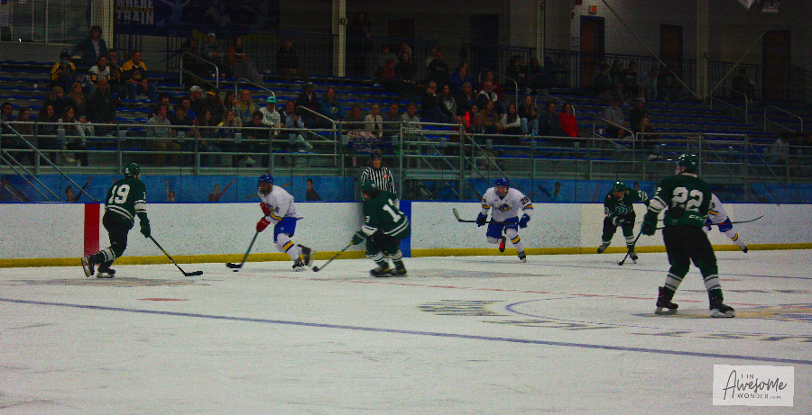 Mainly, I was there to spend some time with our college senior, hockey player, winger, son. And to watch some good hockey. The ‘Fred Rust Ice Arena’ right on the university campus, is a great place to watch a game. They do a pretty good job in game presentation as well.