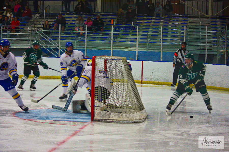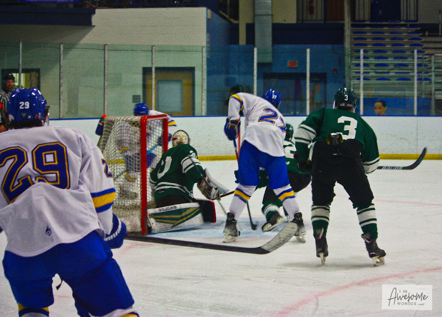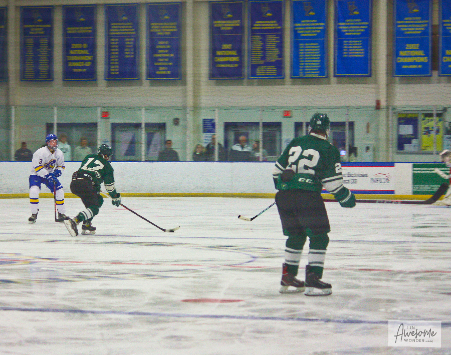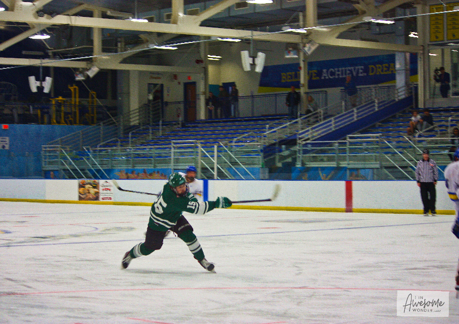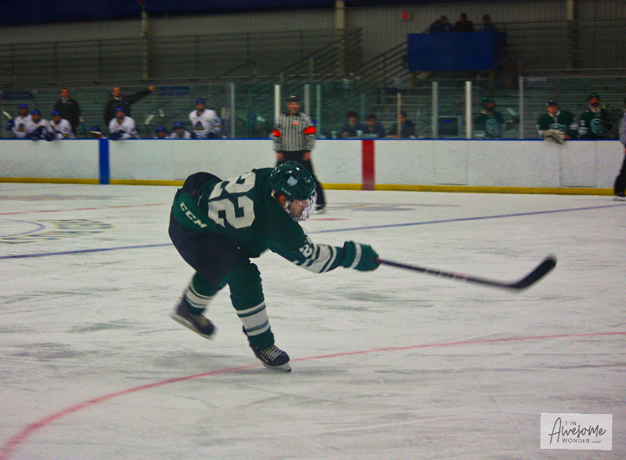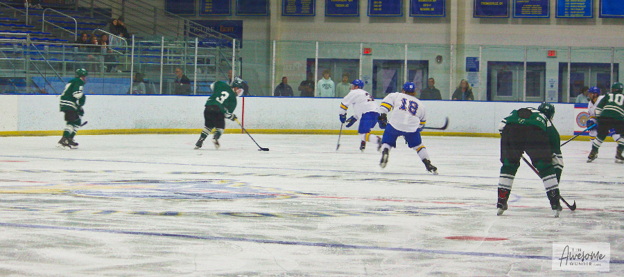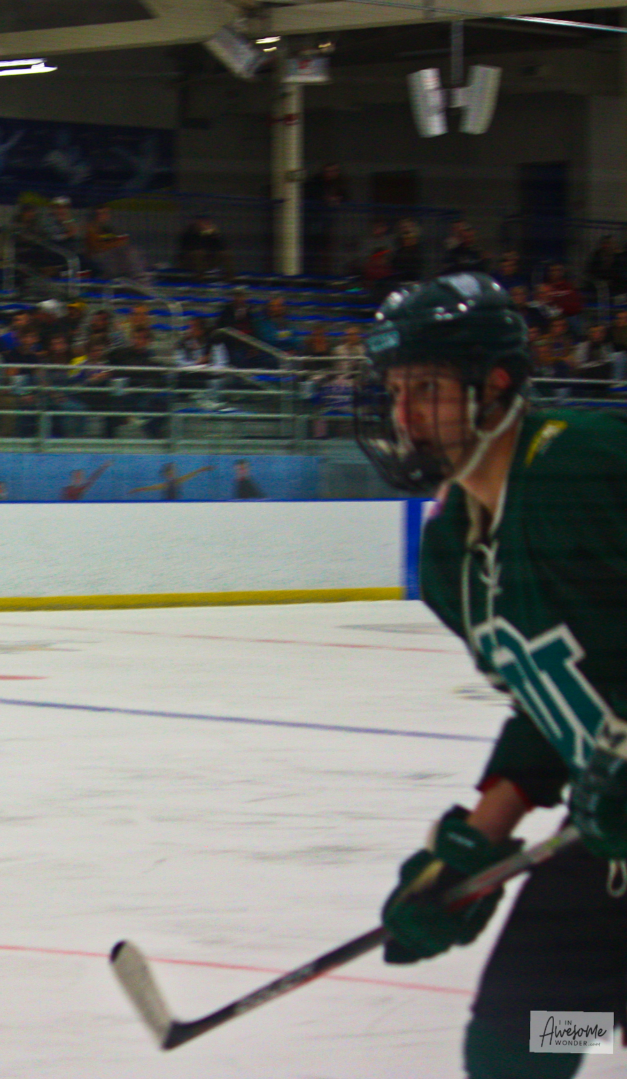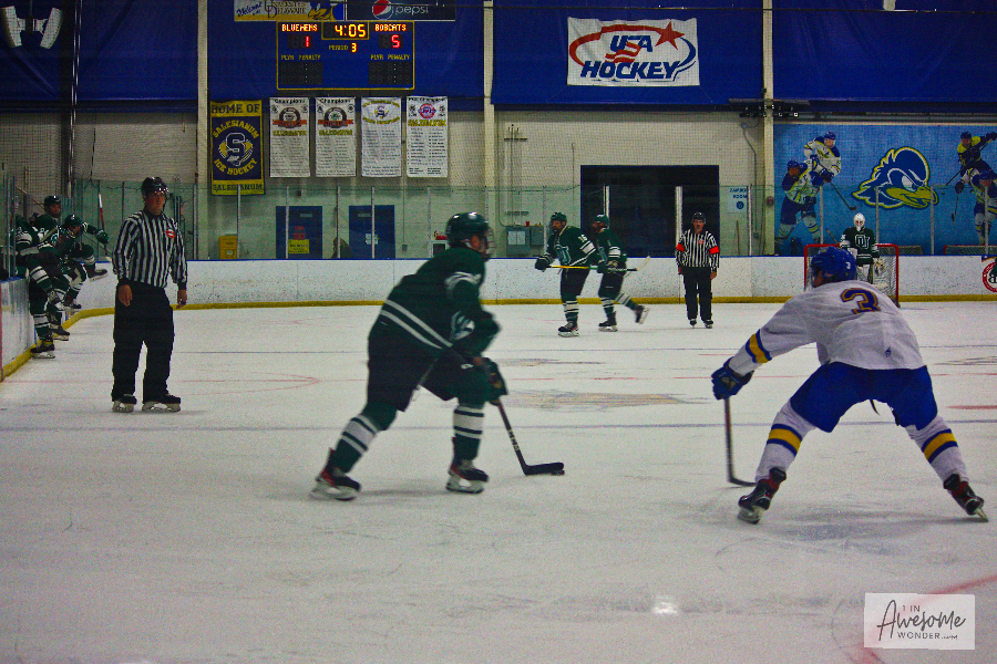 Mainly, I was there to spend some time with our college senior, hockey player, winger, son. And to watch some good hockey. The ‘Fred Rust Ice Arena’ right on the university campus, is a great place to watch a game. They do a pretty good job in game presentation as well.