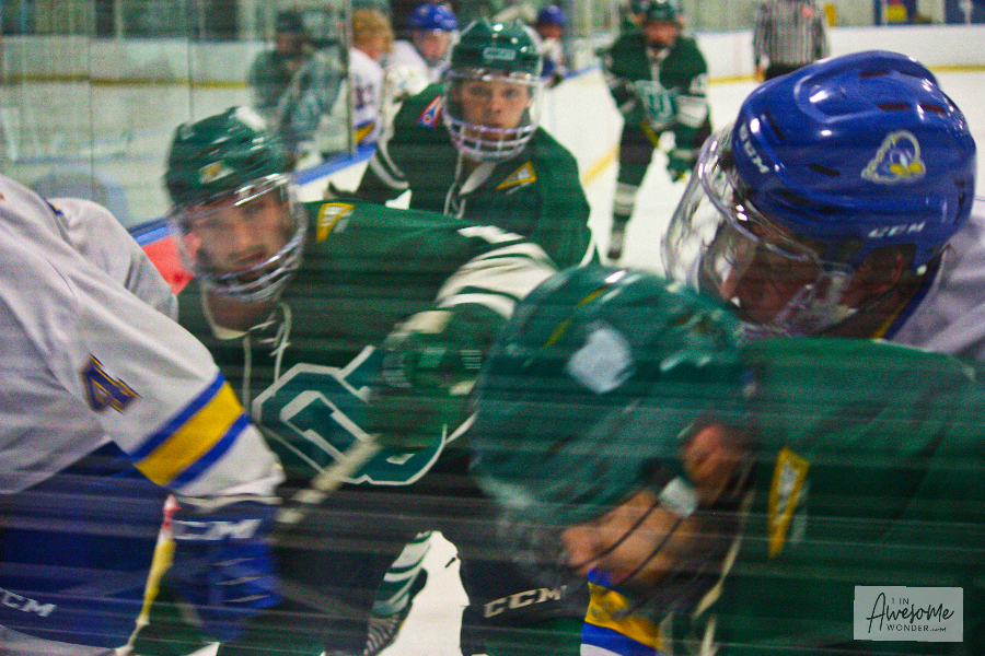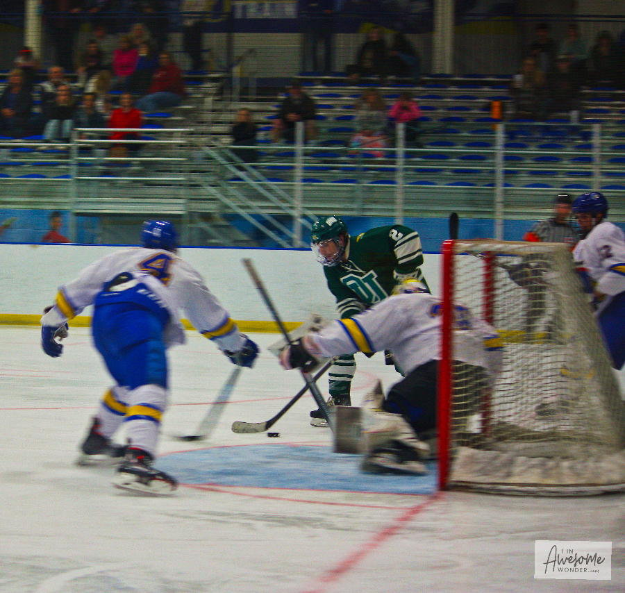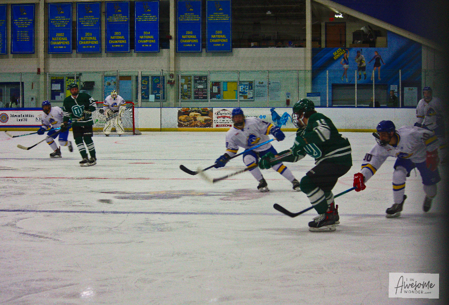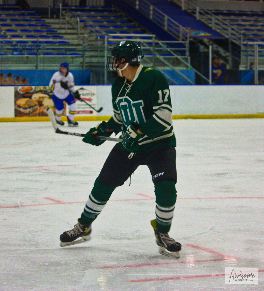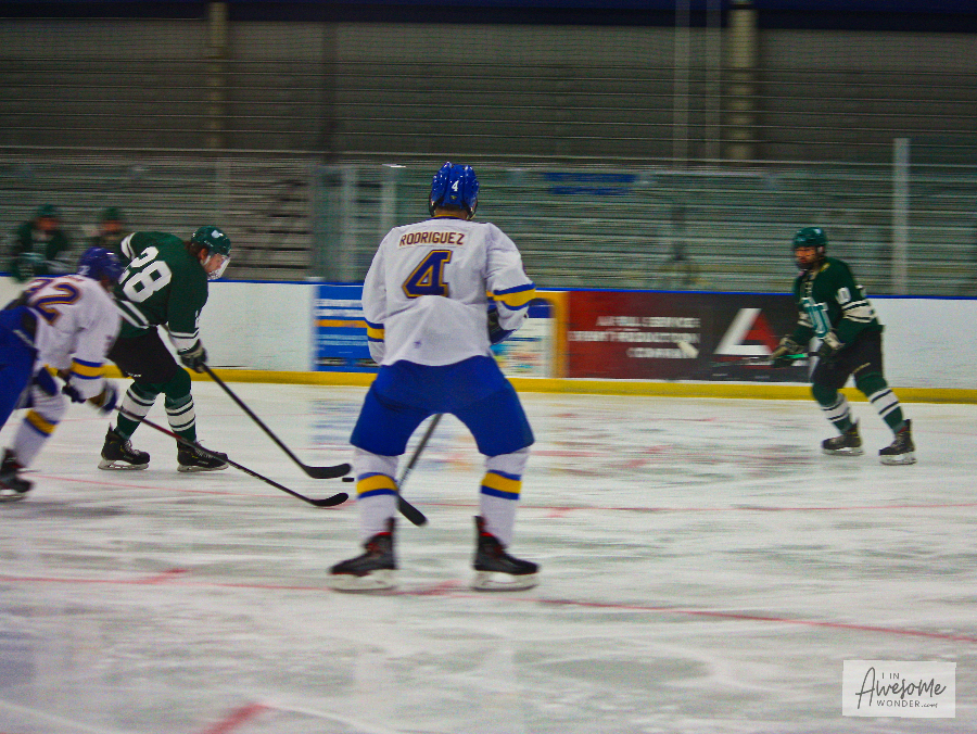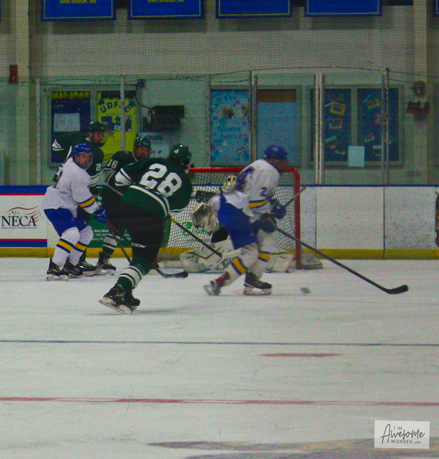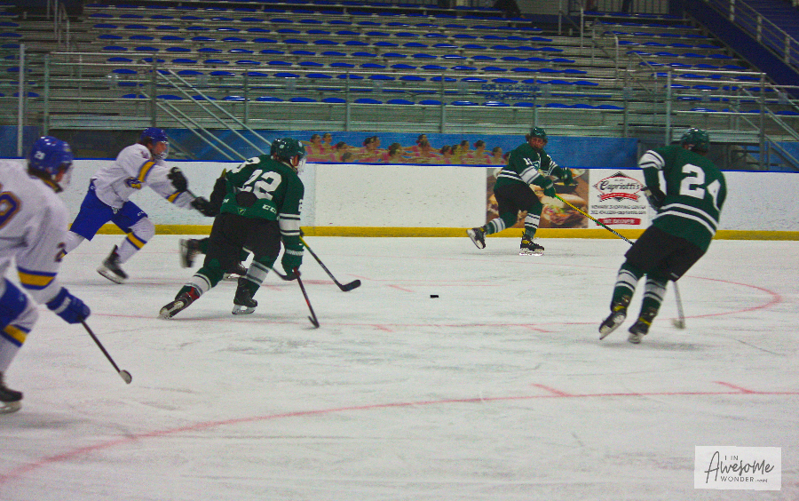 Mainly, I was there to spend some time with our college senior, hockey player, winger, son. And to watch some good hockey. The ‘Fred Rust Ice Arena’ right on the university campus, is a great place to watch a game. They do a pretty good job in game presentation as well.