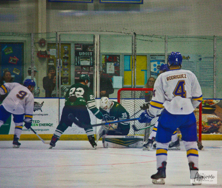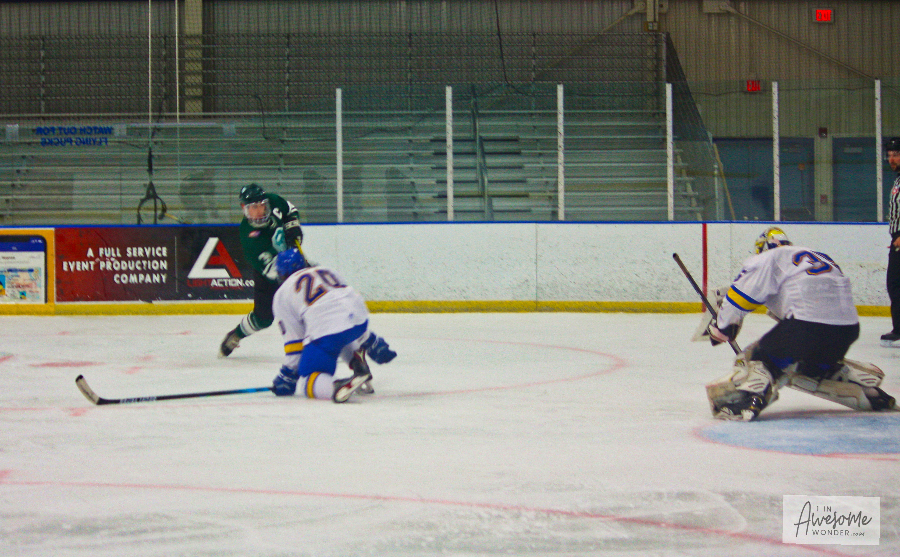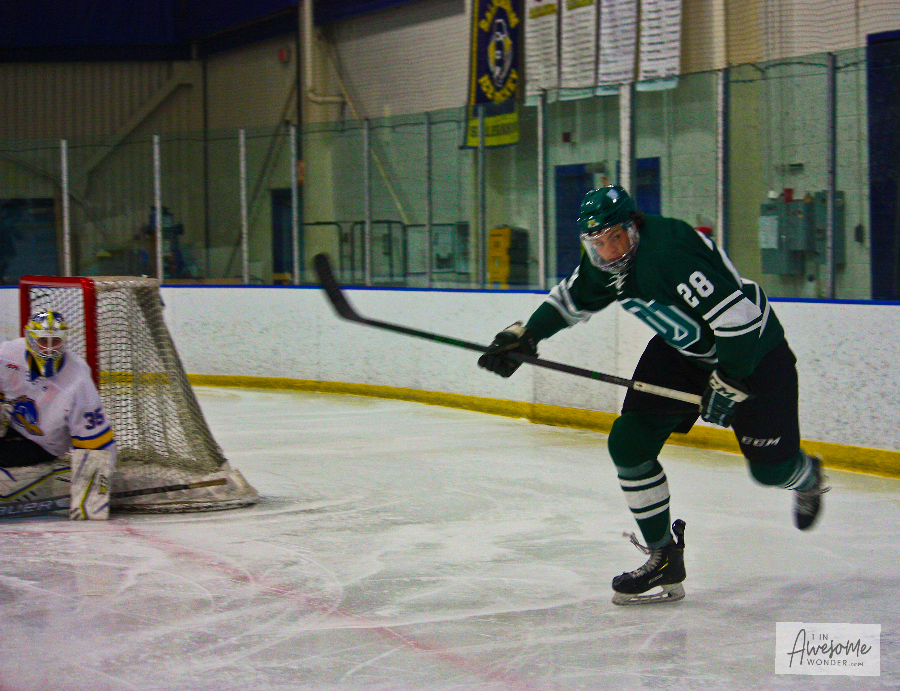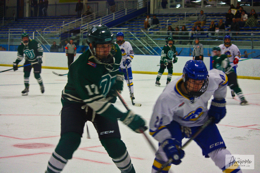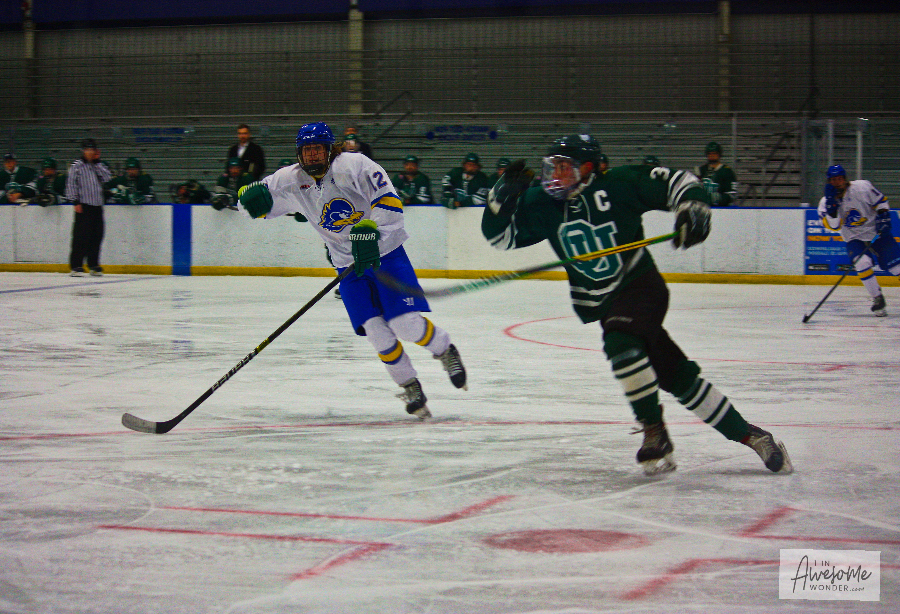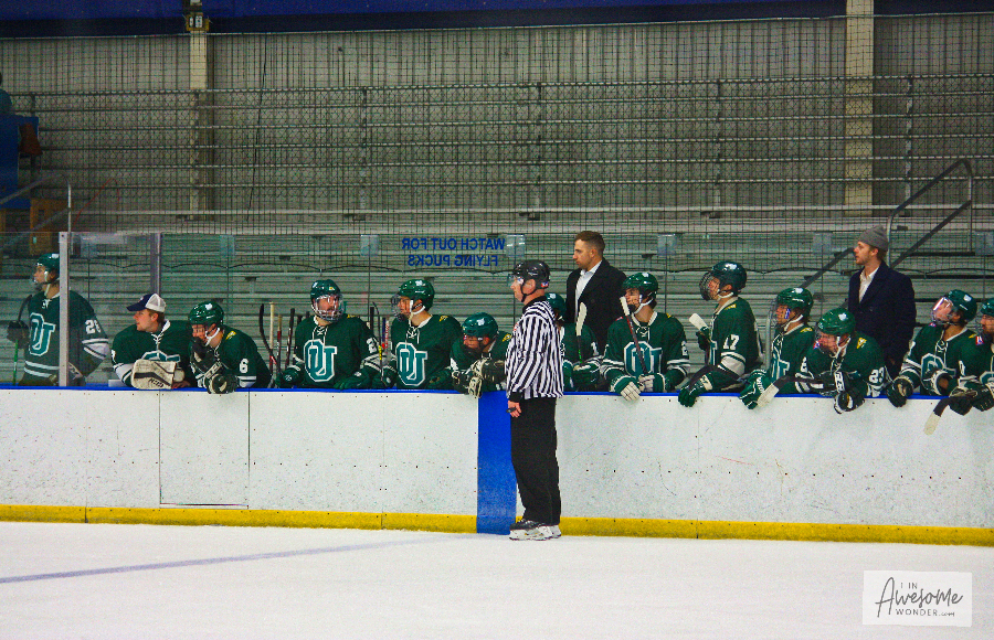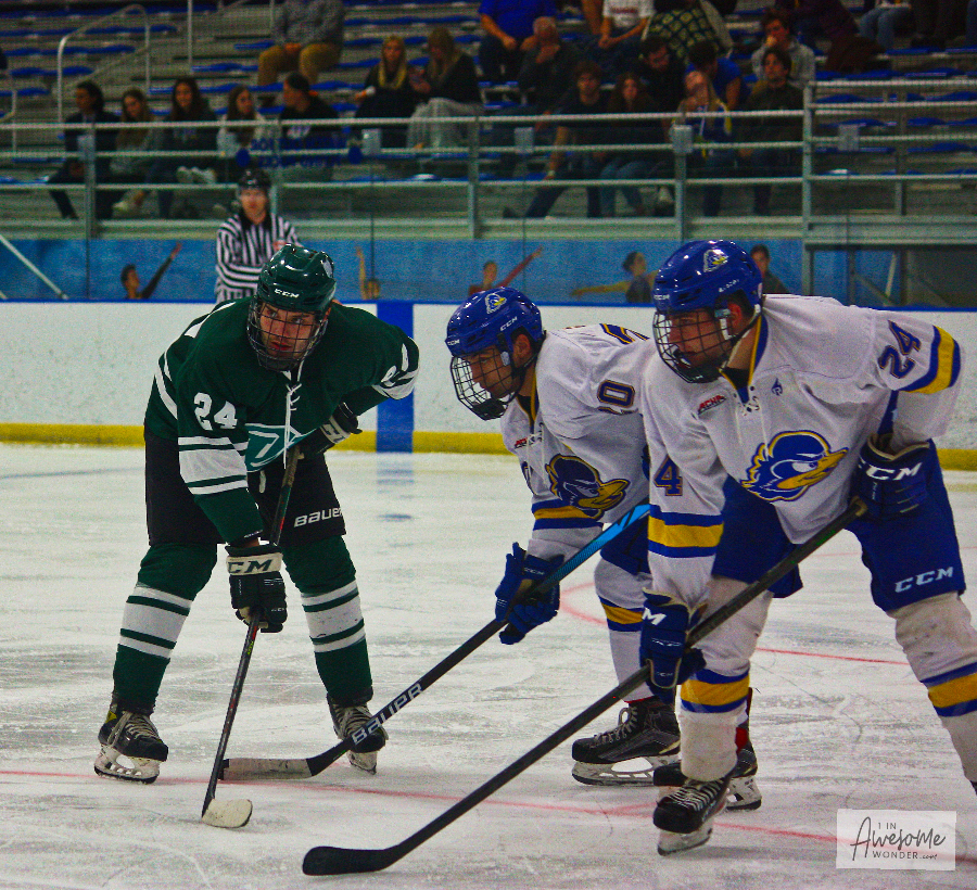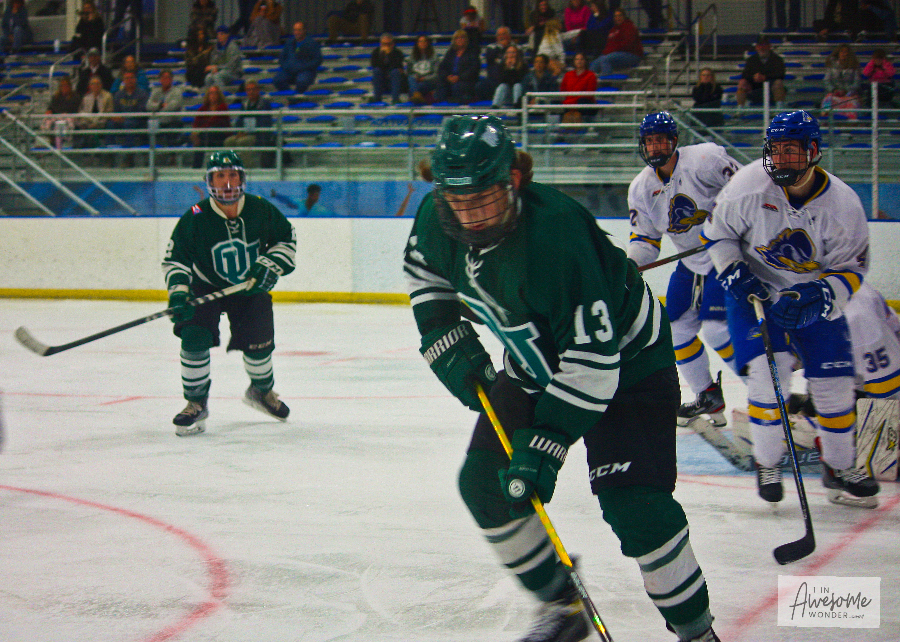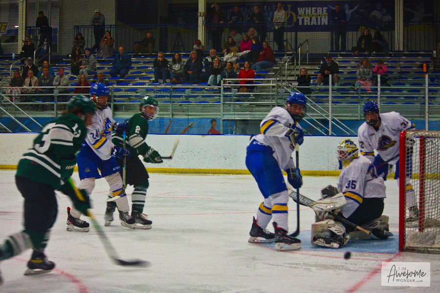 Mainly, I was there to spend some time with our college senior, hockey player, winger, son. And to watch some good hockey. The ‘Fred Rust Ice Arena’ right on the university campus, is a great place to watch a game. They do a pretty good job in game presentation as well.