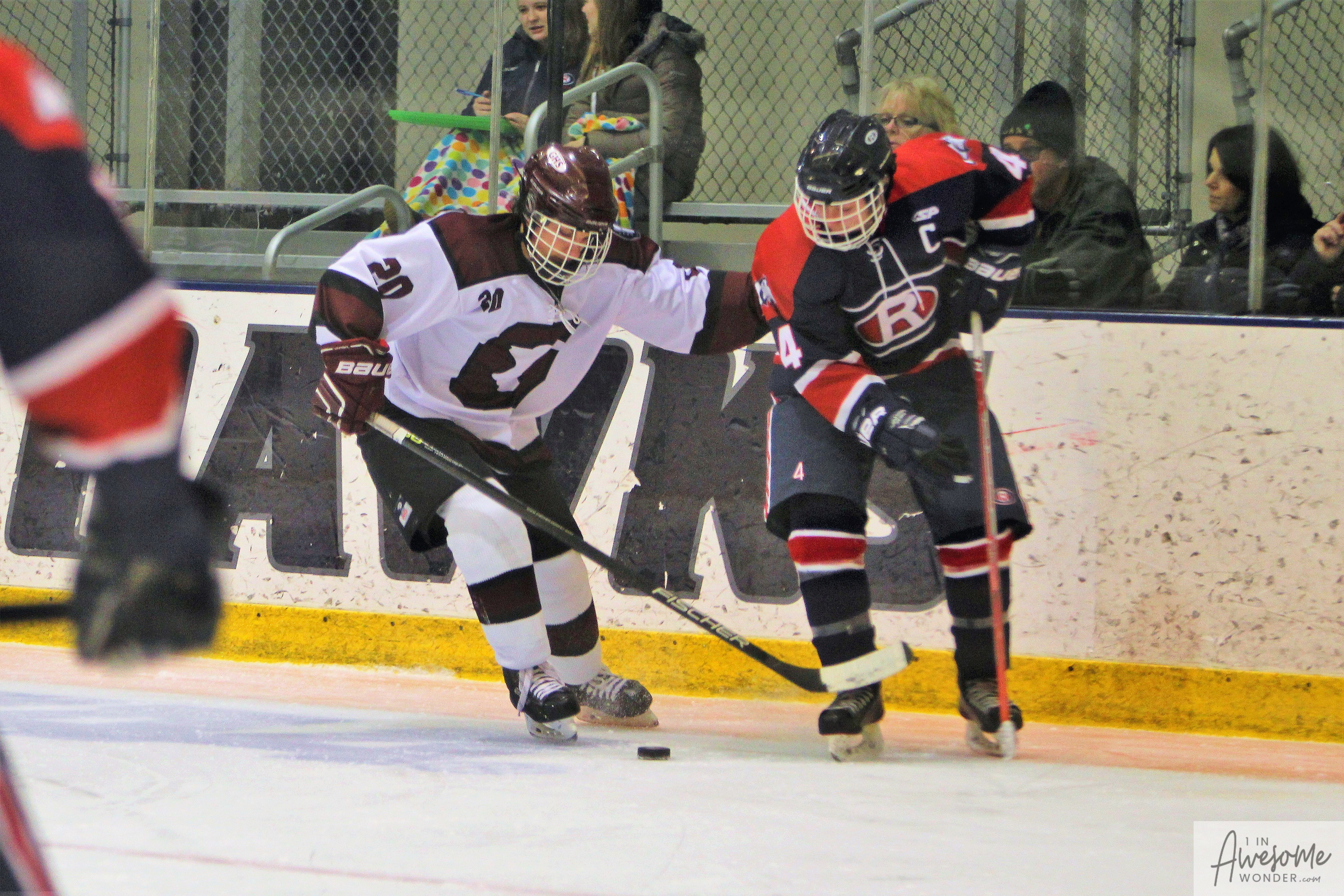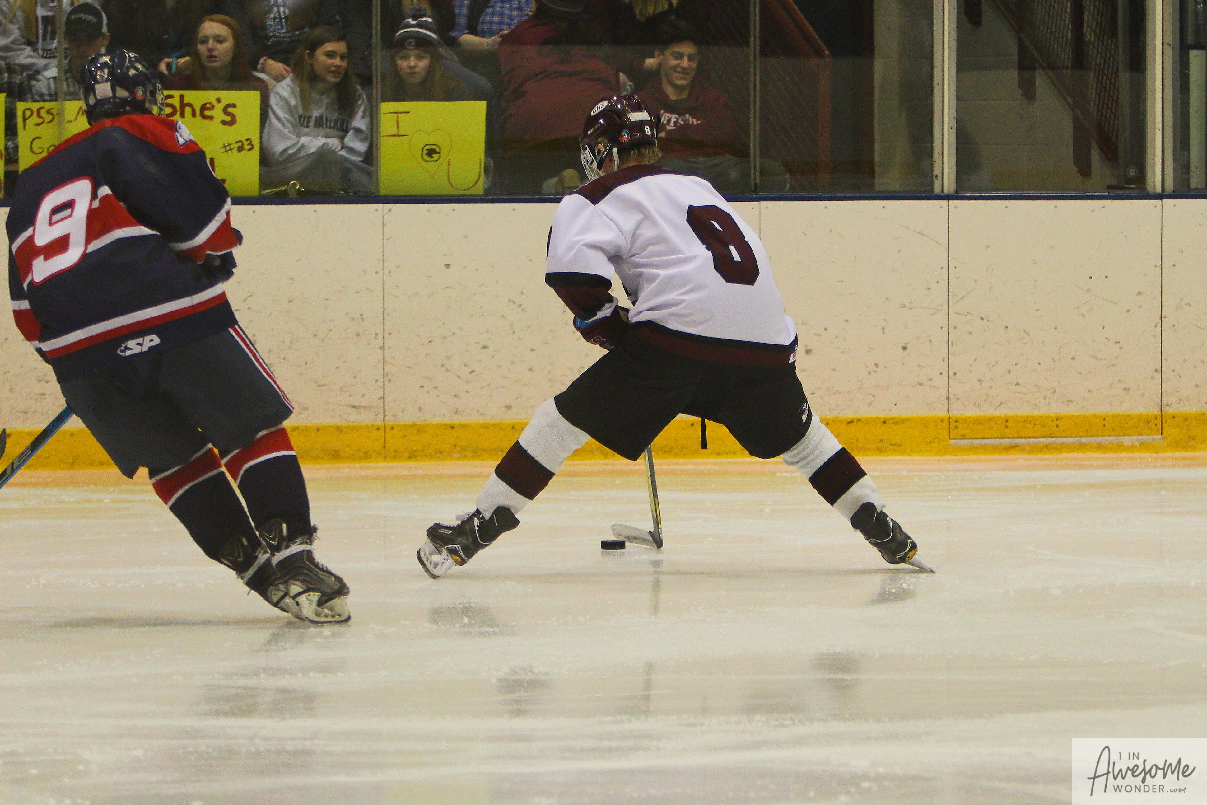 The 10-2 Grizzlies started the game against the 5-4 Bobcats and I know that some of us were wondering, would we see the Goffstown team that has really kicked things in to gear since Christmas, or would we see the Grizzlies that have scored just 6 goals in their last five meetings against Oyster River. Well, it didn’t look good for Goffstown early on. First, Lucas Hamilton scored on a rebound from a Ben Caron shot on Madeline Sage that, honestly could have been scored by two different Bobcat skaters as there was not much resistance from Goffstown.Β Then less than a minute later, Oyster River skated into the offensive zone, with speed, on a 2-on-1 break. Eric Donovan ripped a shot past Sage in net, but the puck hit the far post and bounced wide of the net. The Grizzlies dodged that bullet.