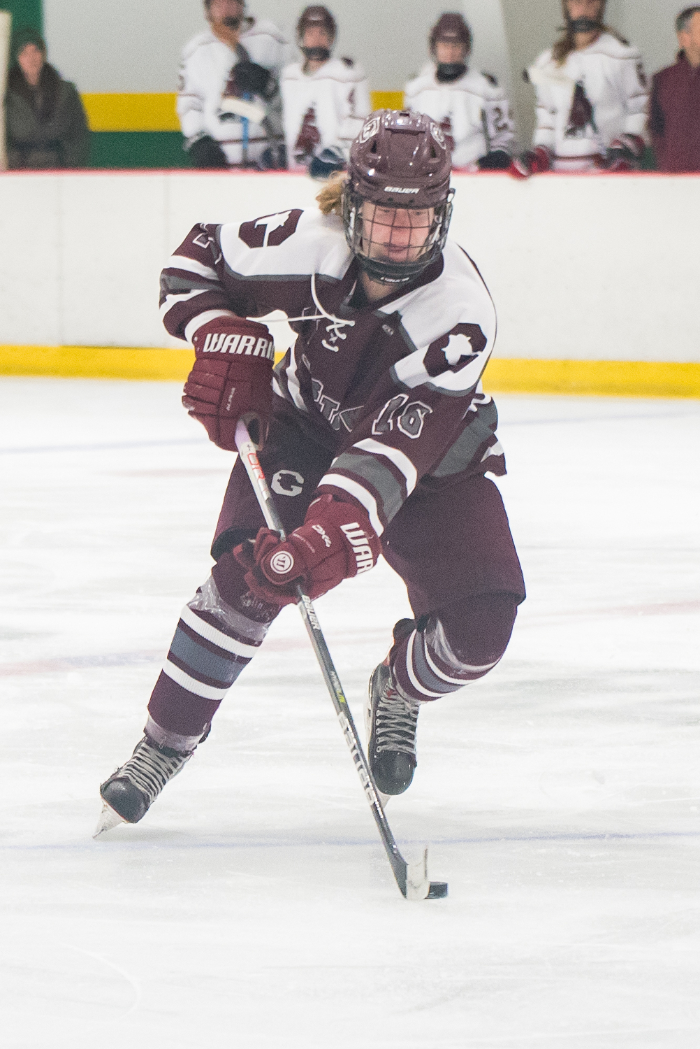Zack Tarrier took the puck on a turnover and bolted to the net for the lone Goffstown goal on the day. (Photo by Jen Webber Photography)