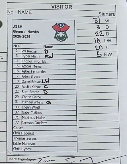 Goffstown was 1-for-2 on the power play, while the JSHHD General Hawks were 0-for-1.
