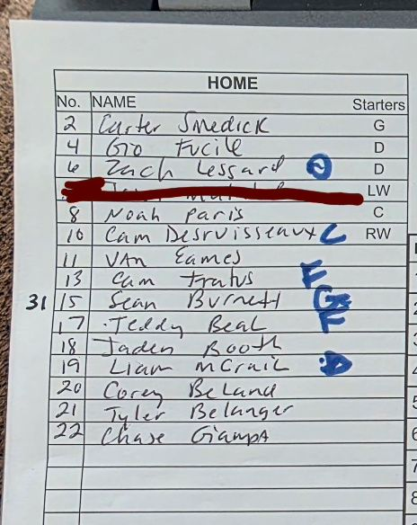 Here are the team rosters for the game that was played on Sunday afternoon: The first thing to remember about these lists of names is that they absolutely brought their love of the game to the rink on Sunday afternoon.