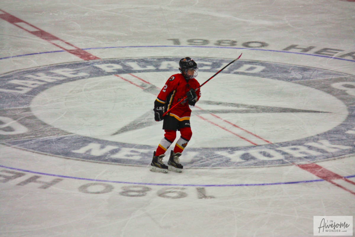 What was awesome about the game, was the fact that the Flames were playing in the 1980 Rink. It was Herb Brooks Arena, where so many unforgettable moments played out back in 1980 for the USA Olympic Hockey Team. I found myself looking around the arena throughout the game. I checked out the rafters, the lights, the banners hanging above the ice, and the names and uniform numbers of the 1980 US Hockey team roster that are displayed in a ring that encircles the entire seating area.