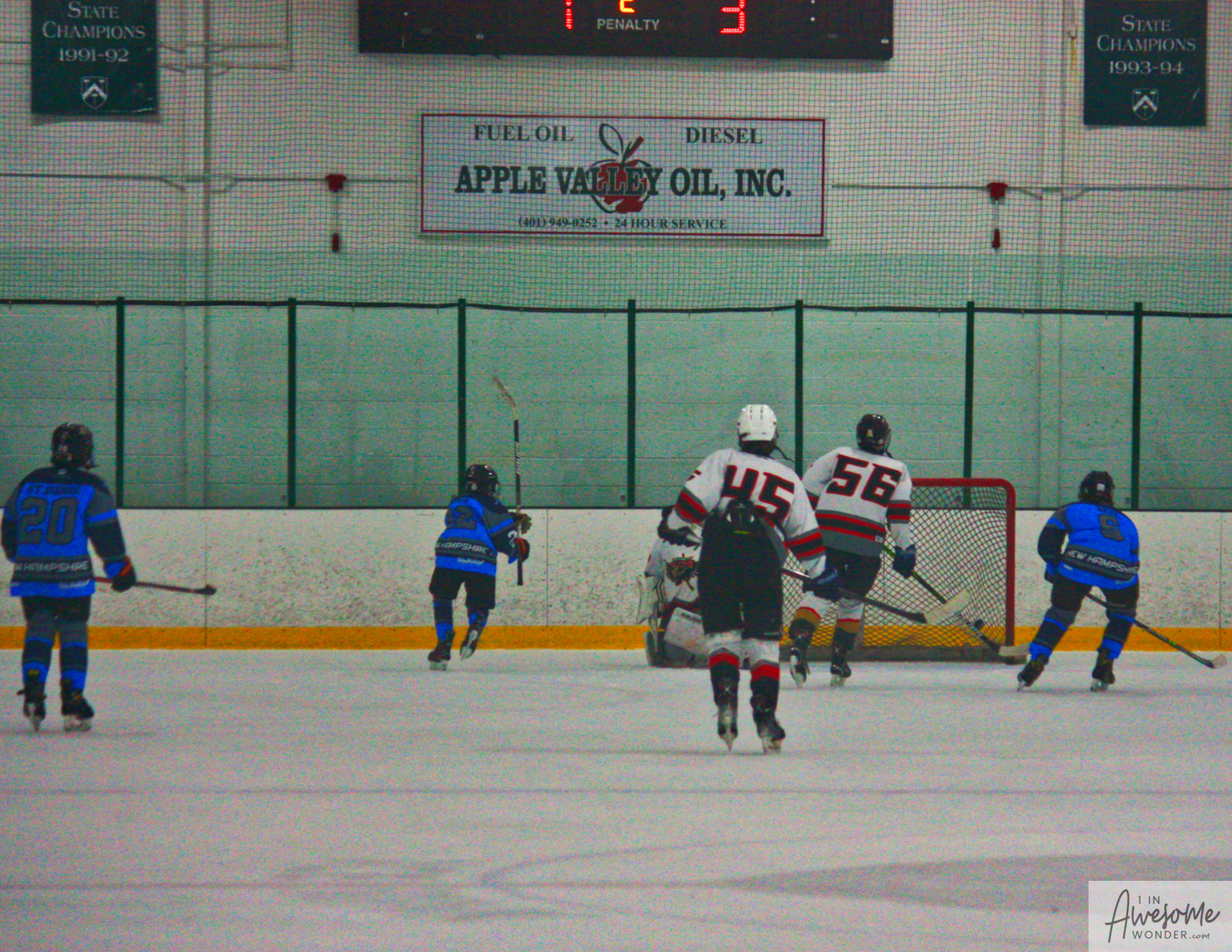 Travis keeps track of the puck’s path. See, Liam I didn’t know that they played hockey in Rhode Island where teams don’t switch ends at any point during the game.